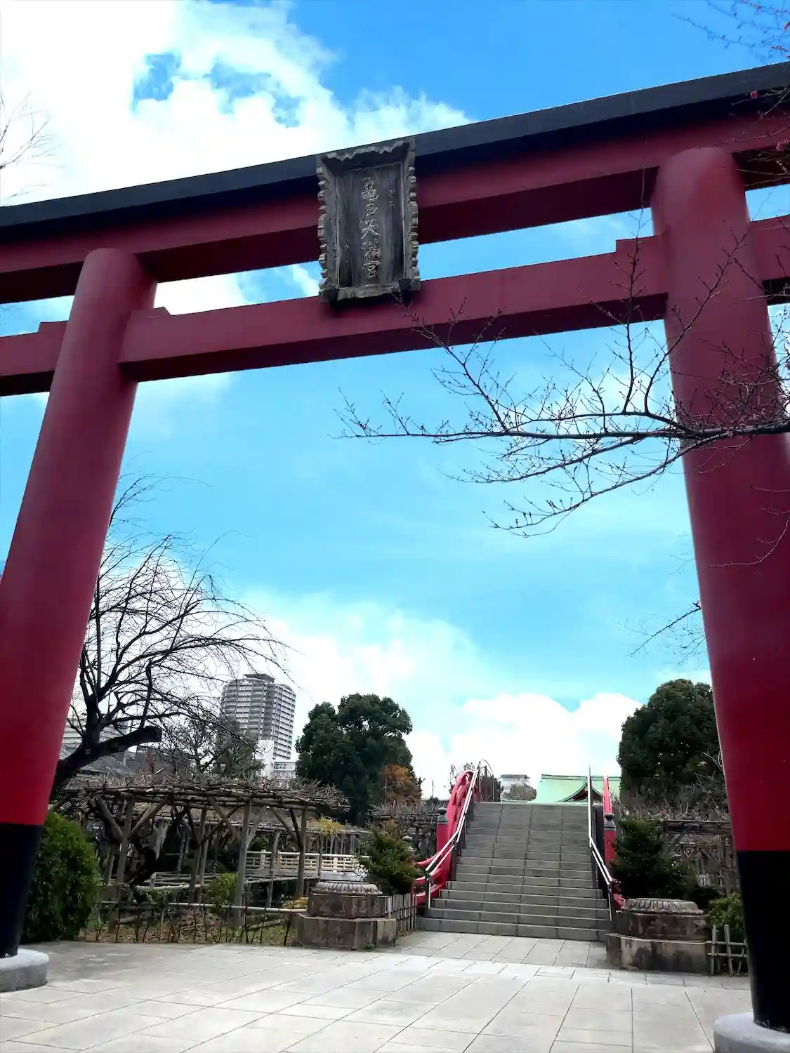 鳥居をくぐり1つ目の赤い橋。太鼓橋 男橋から東京ス…