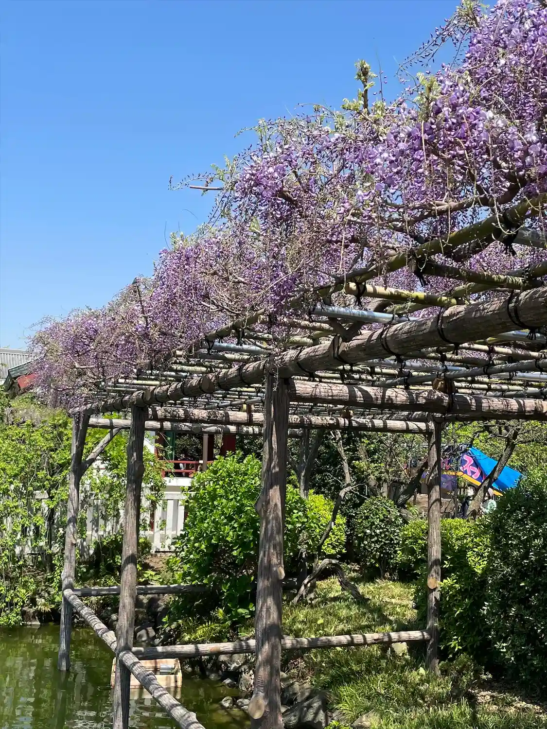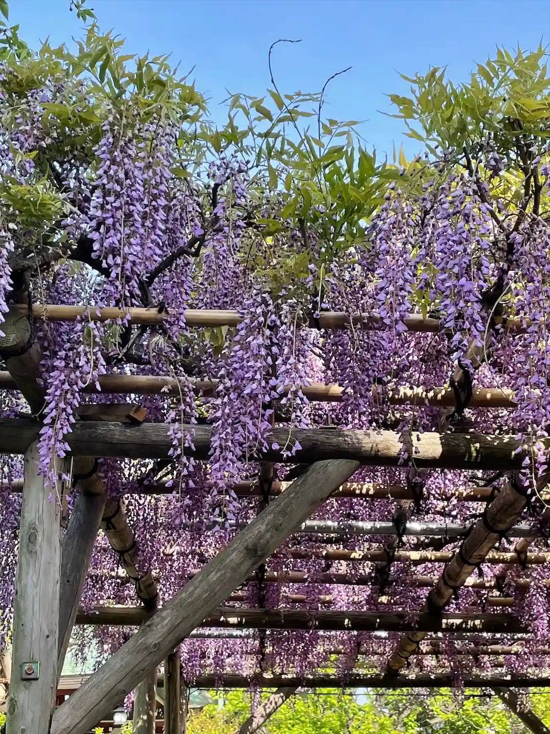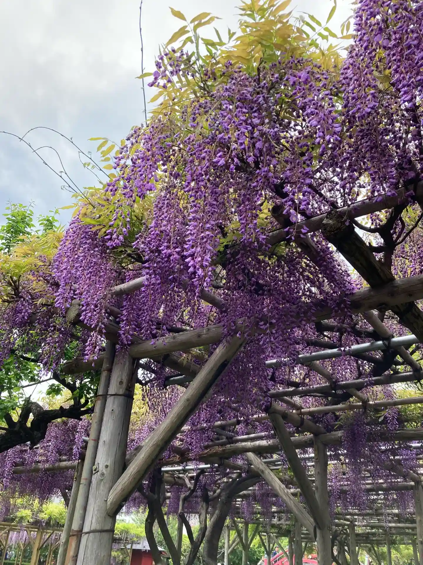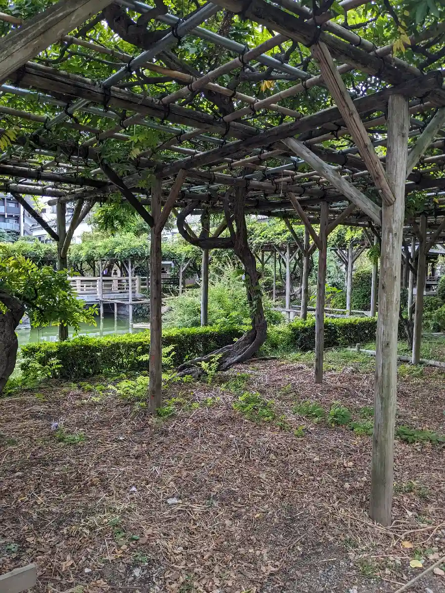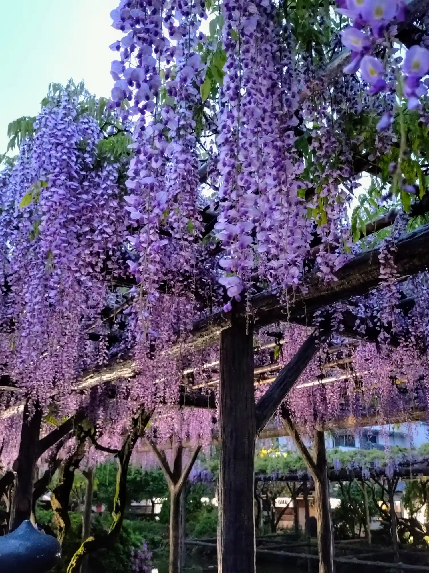 有名な藤棚を見に行きましたが、見ごろは終わってしまっていたようでした。