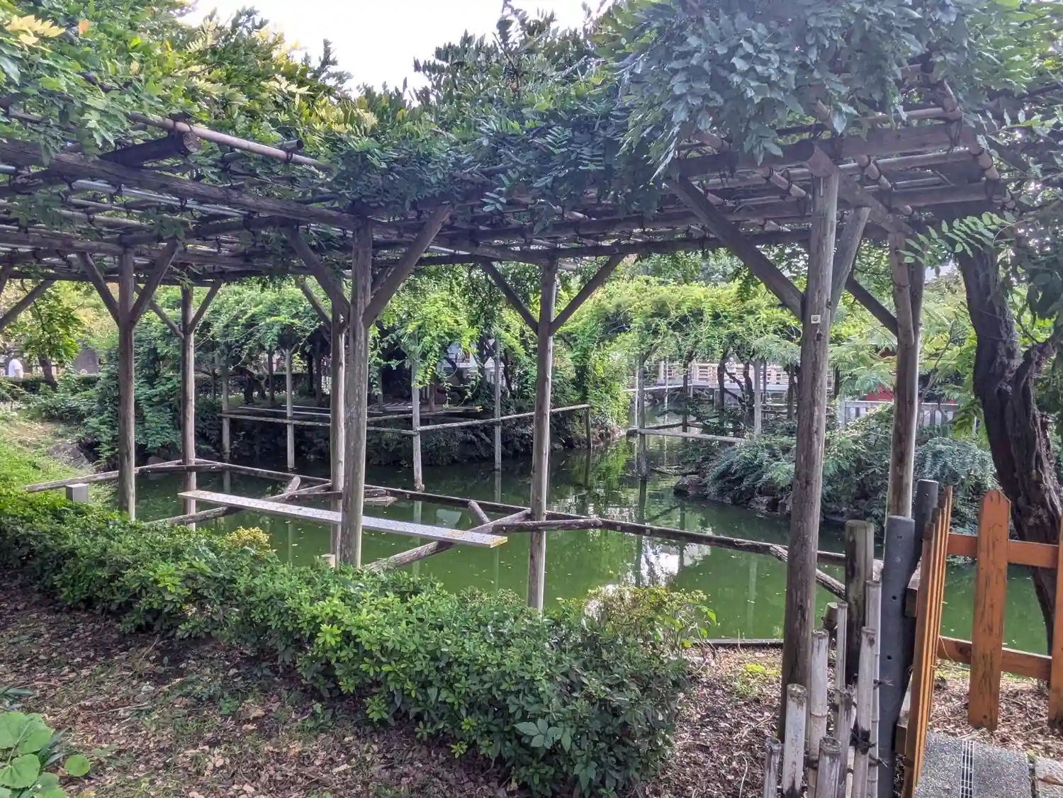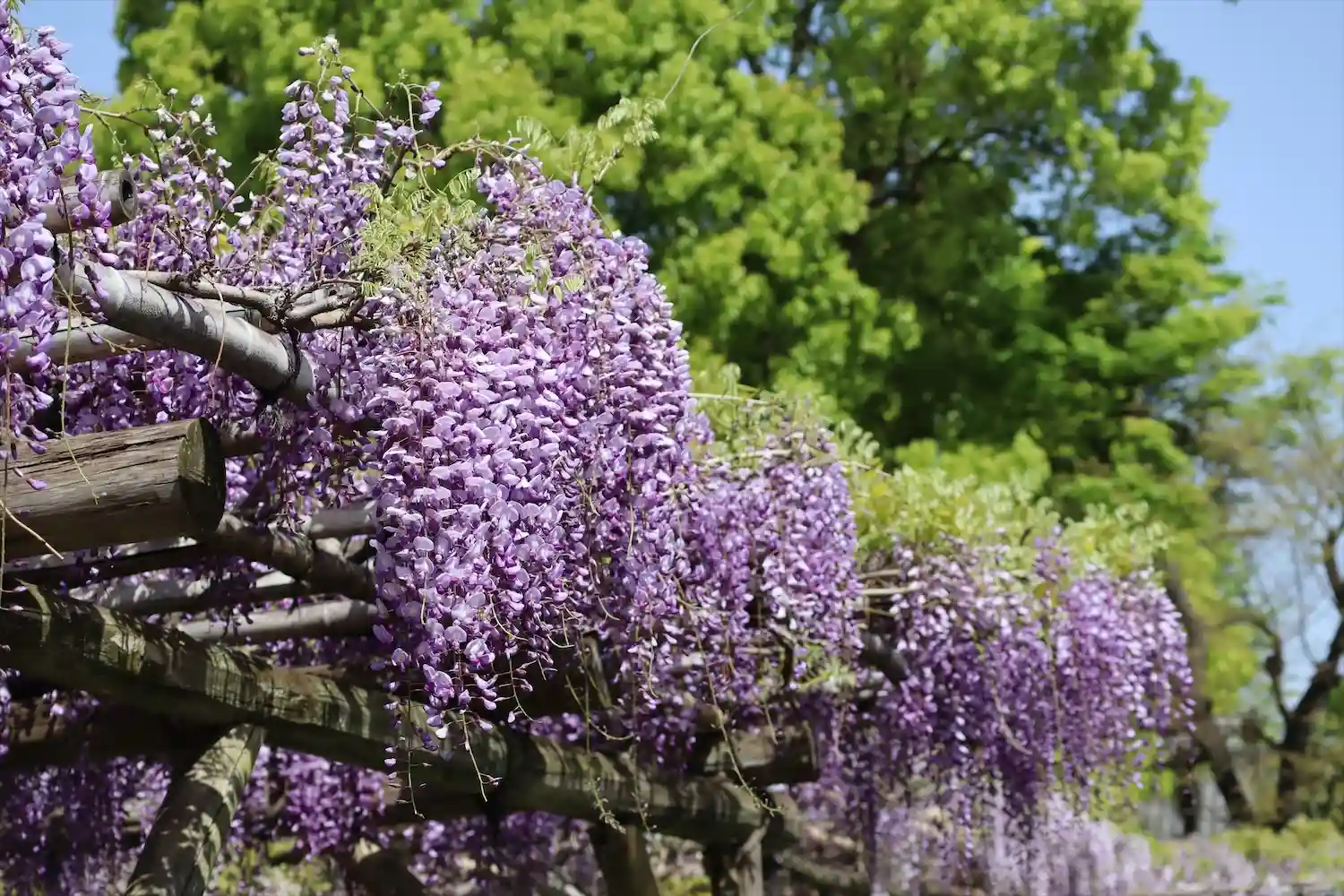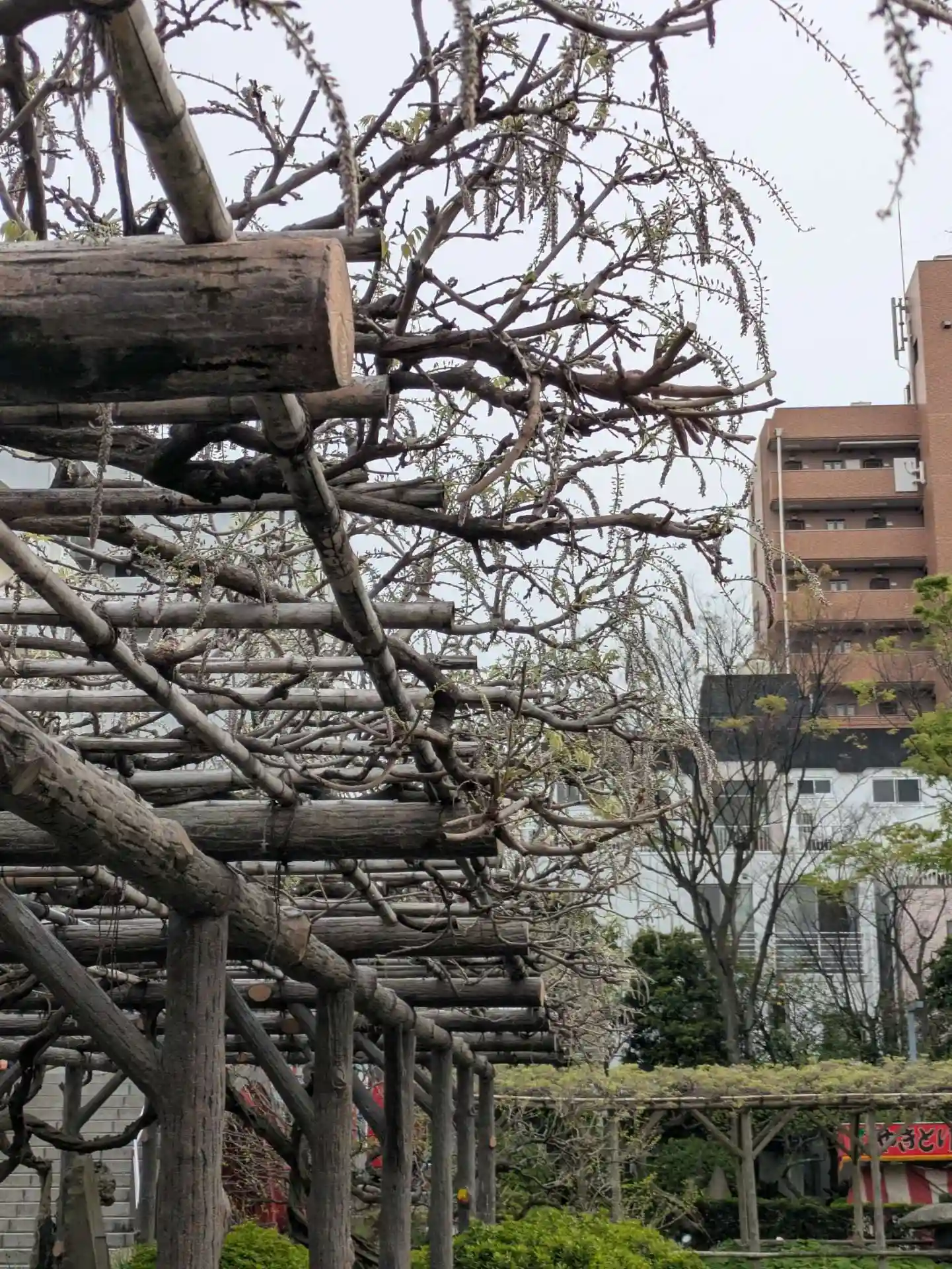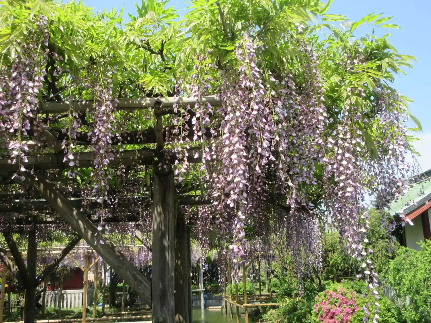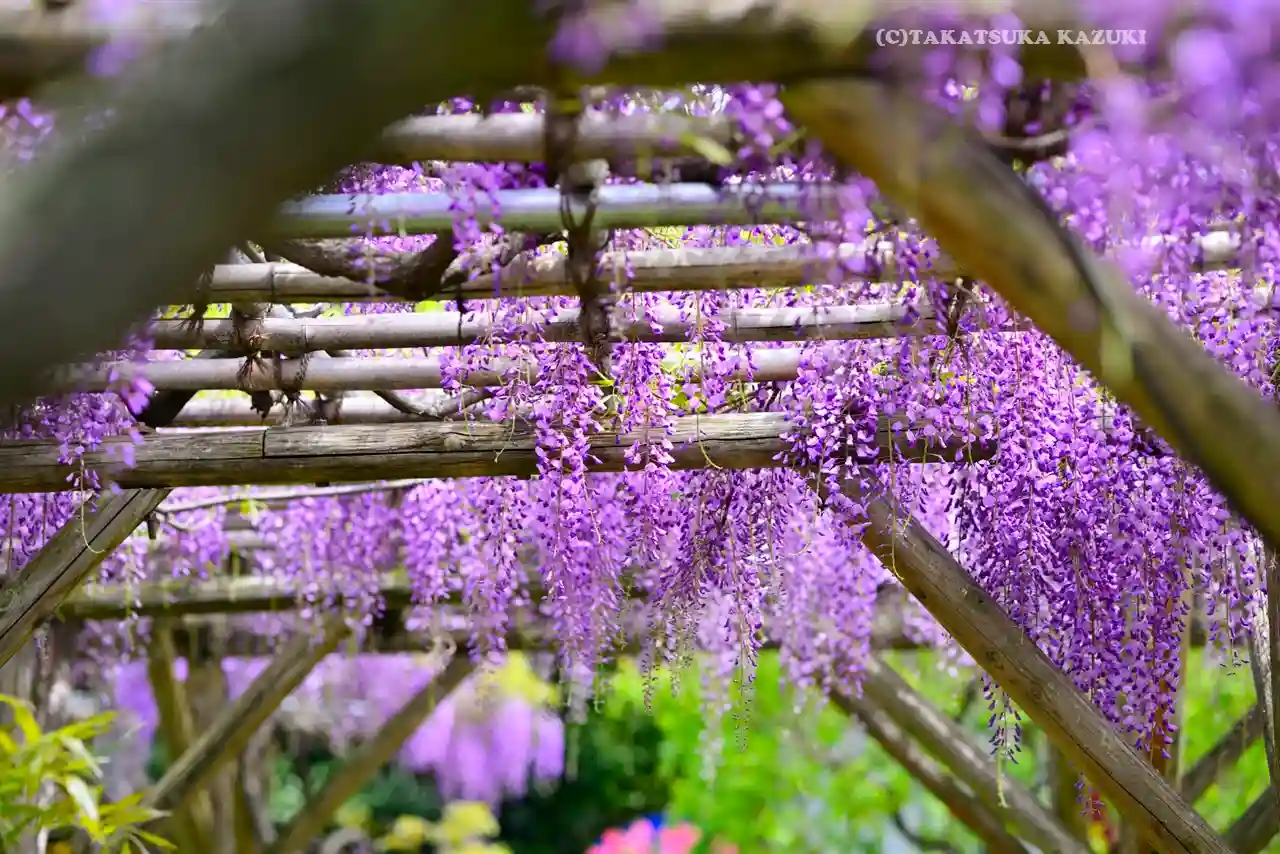 有名な藤棚を見に行きましたが、見ごろは終わってしまっていたようでした。