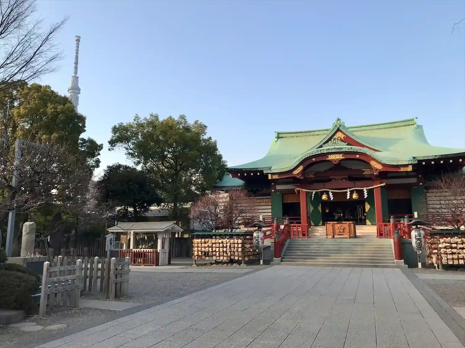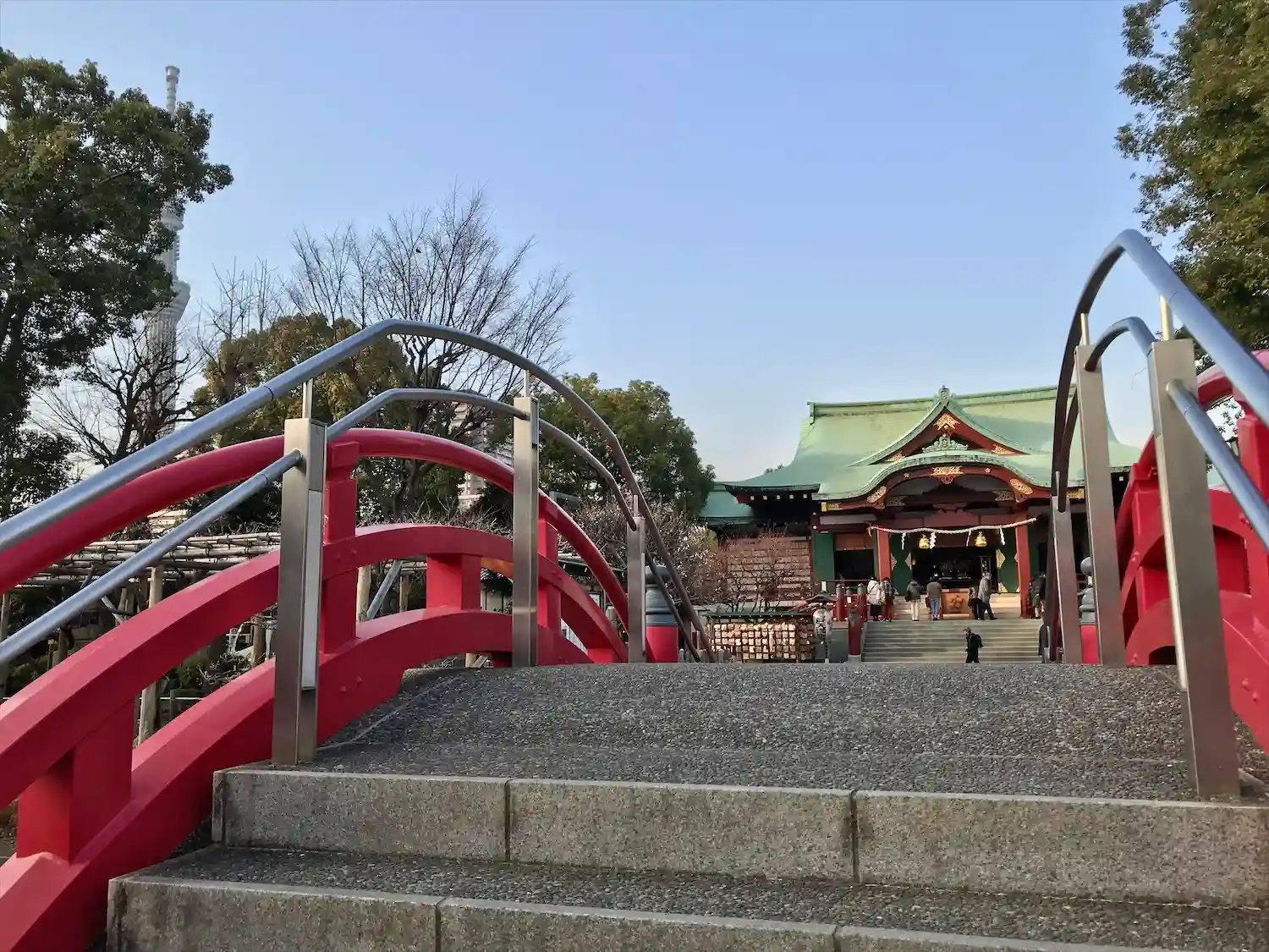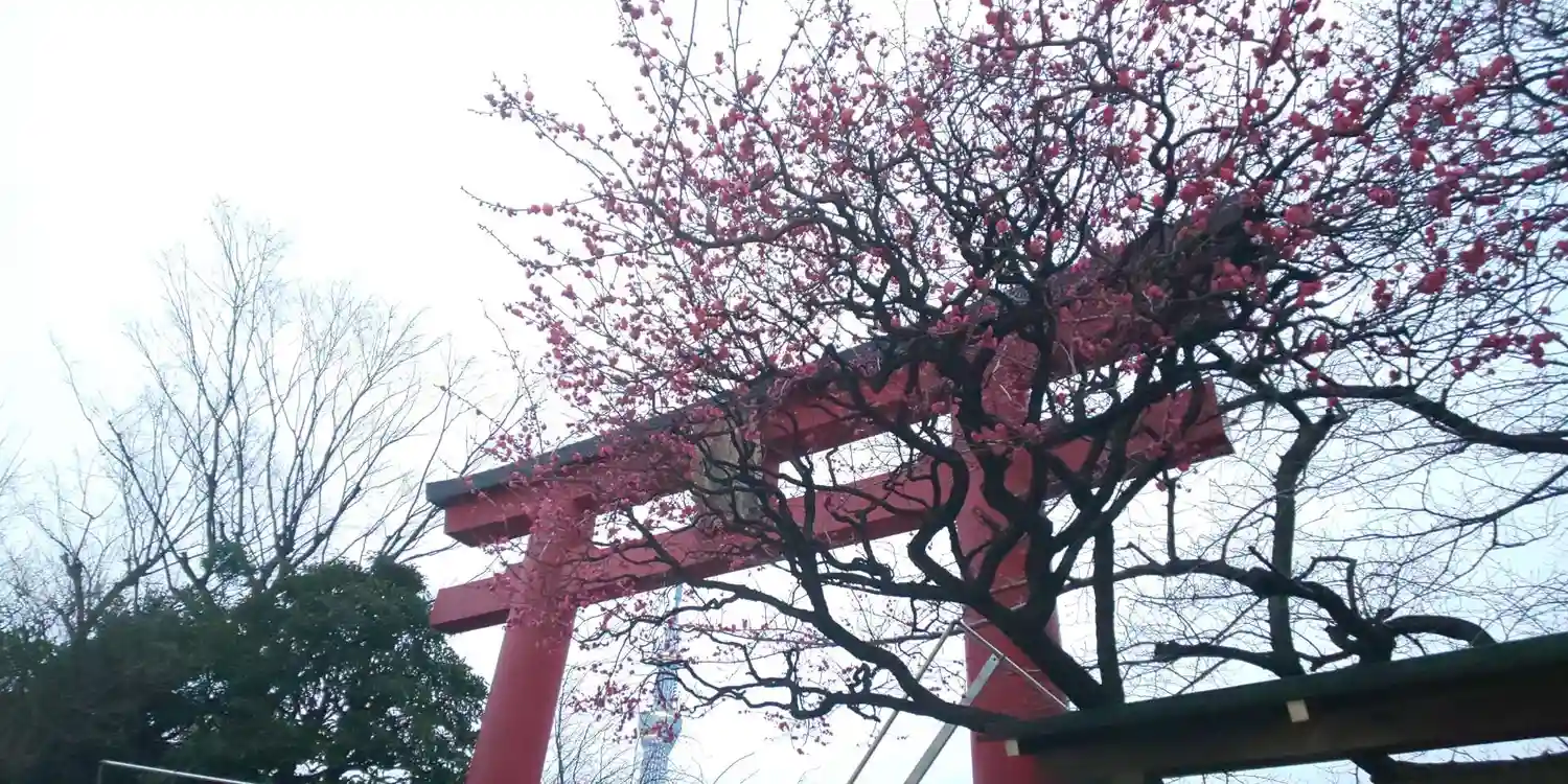 鳥居をくぐるとスカイツリーがお出迎え🗼