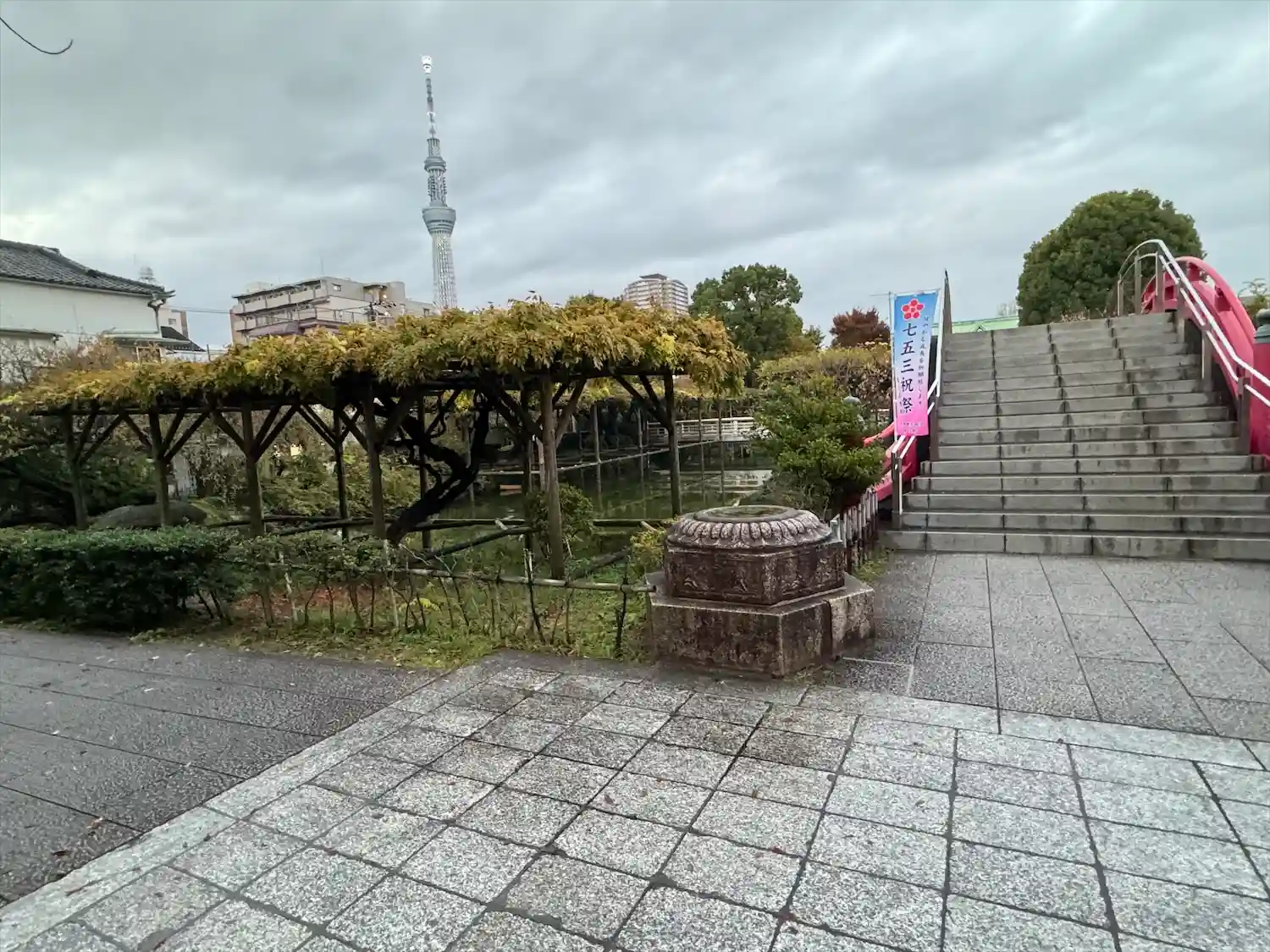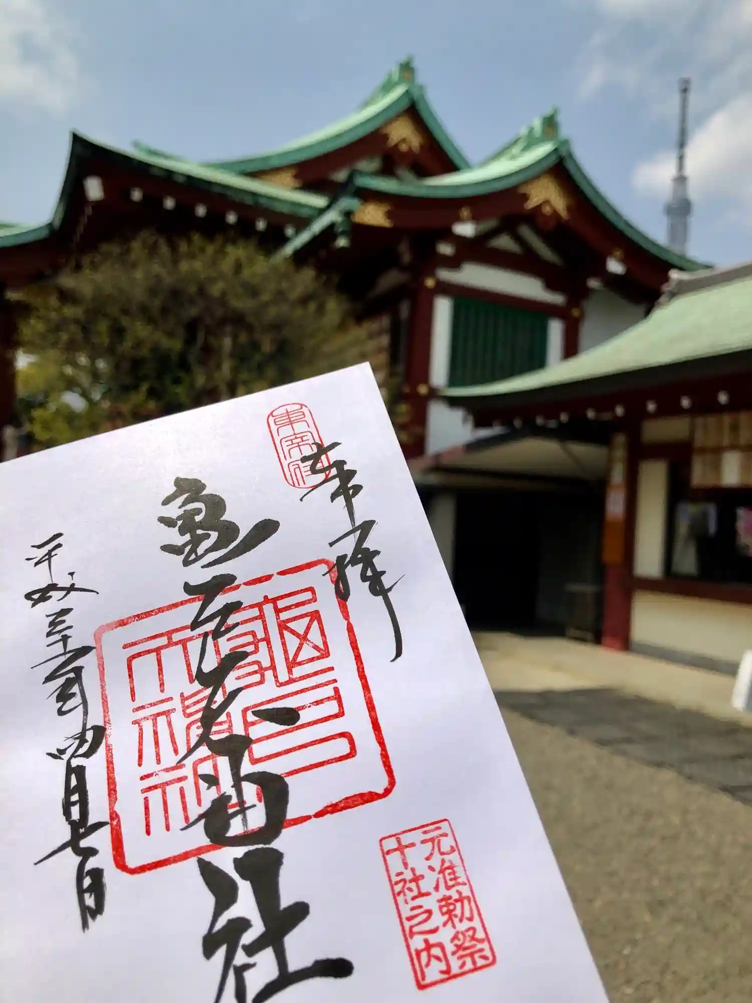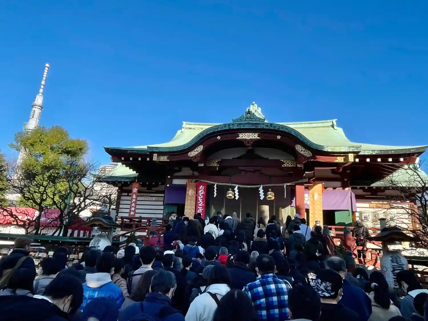 鳥居をくぐるとスカイツリーがお出迎え🗼