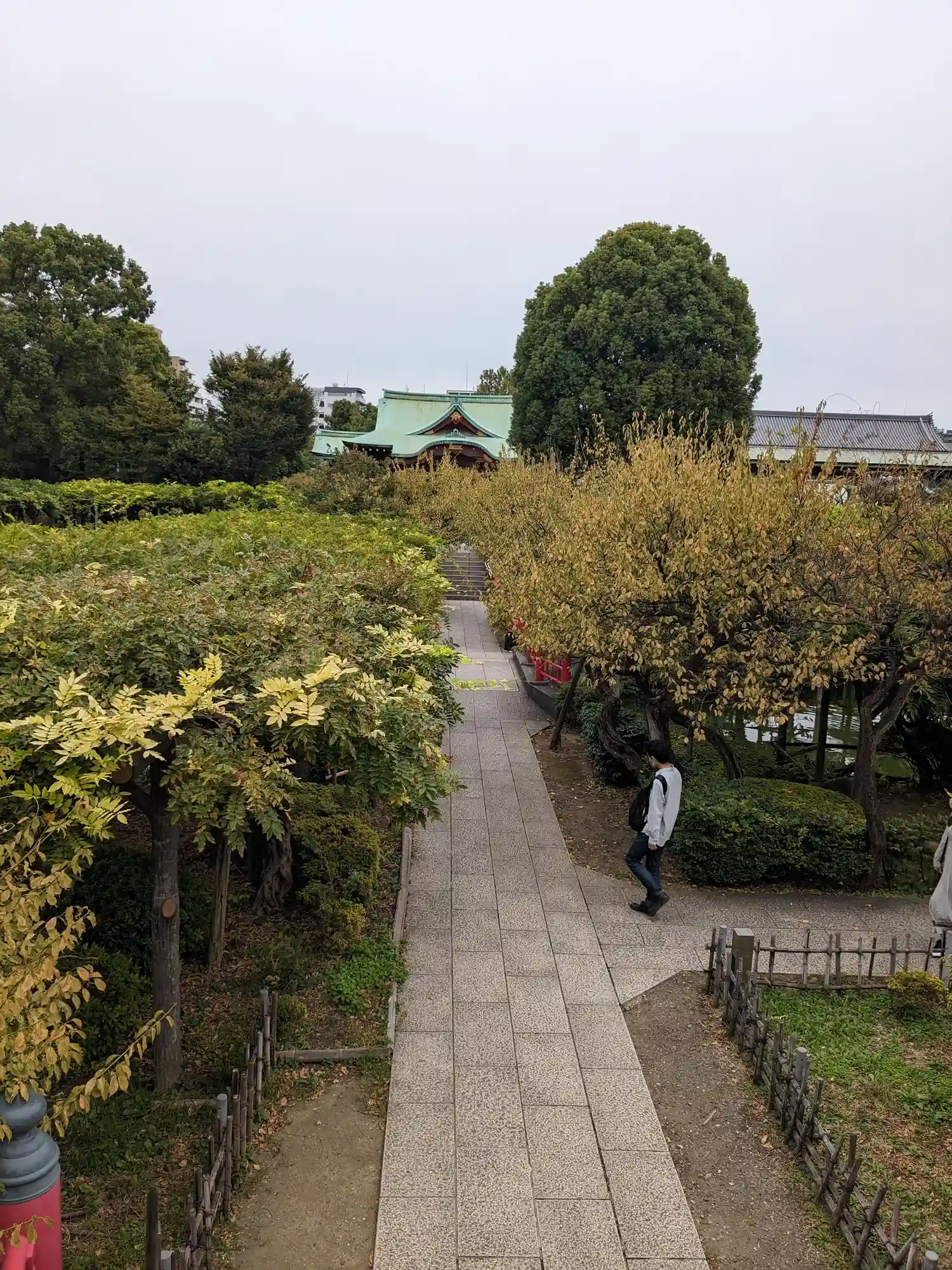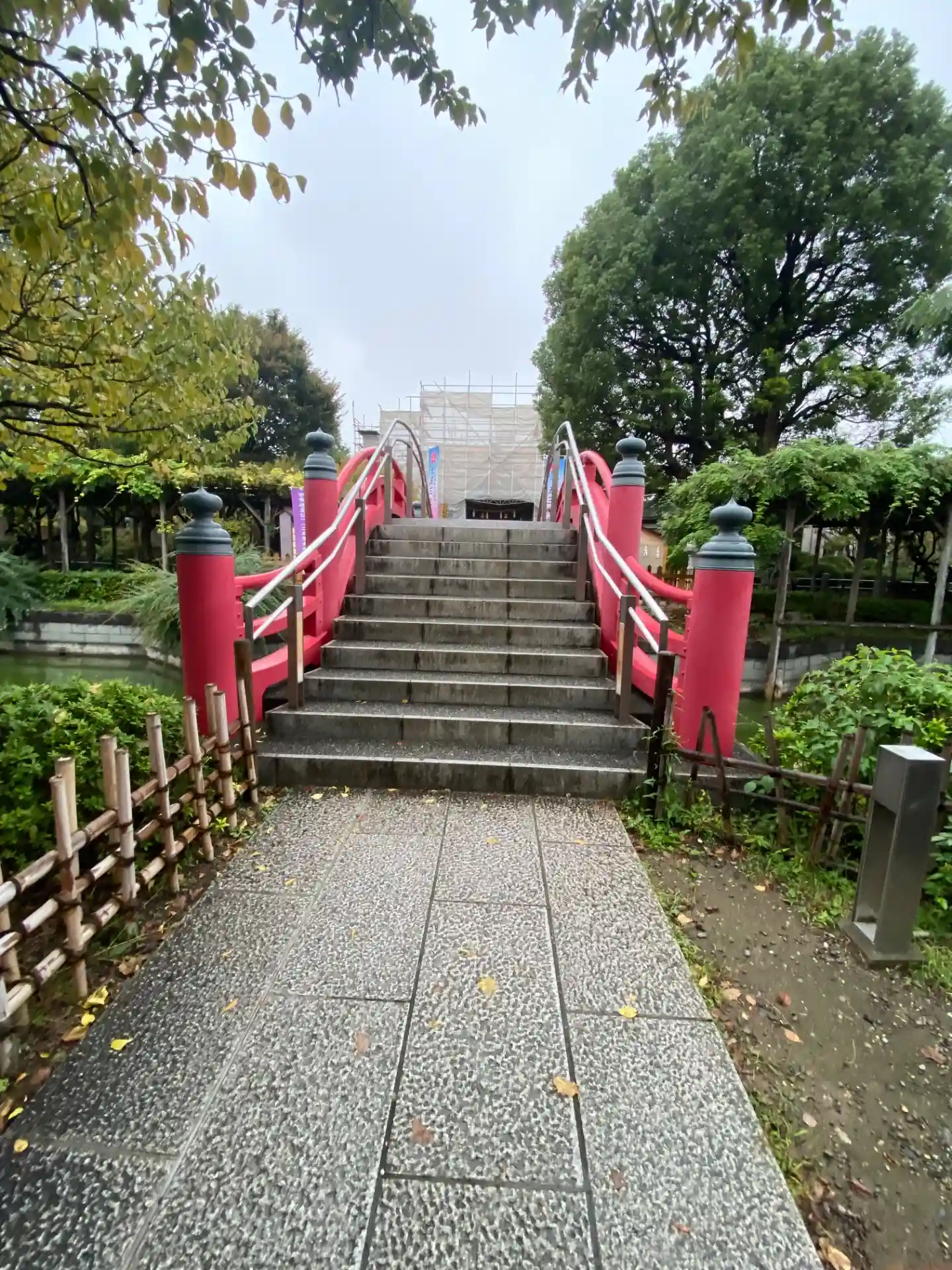 太鼓橋から本殿を望む眺めです。