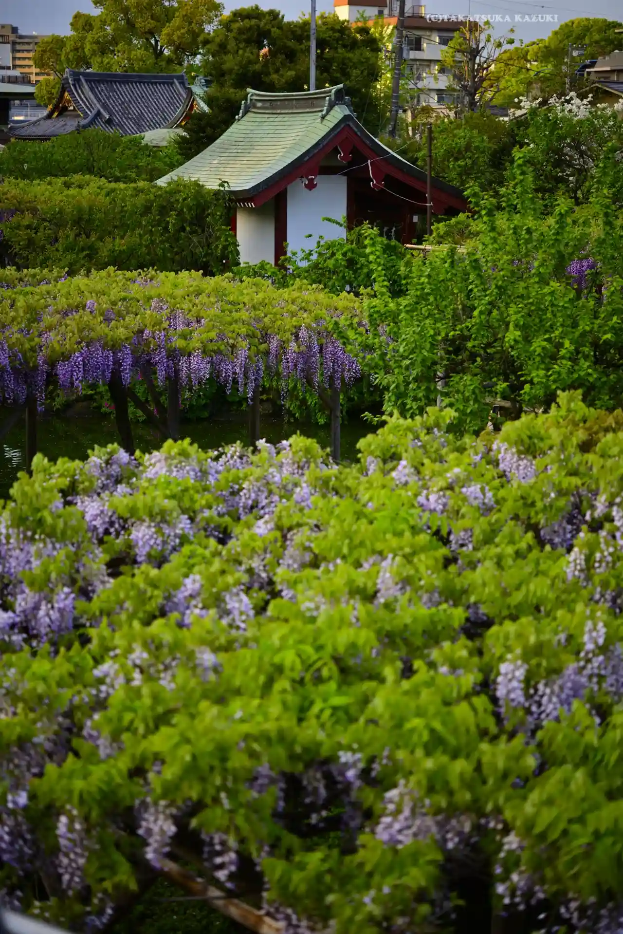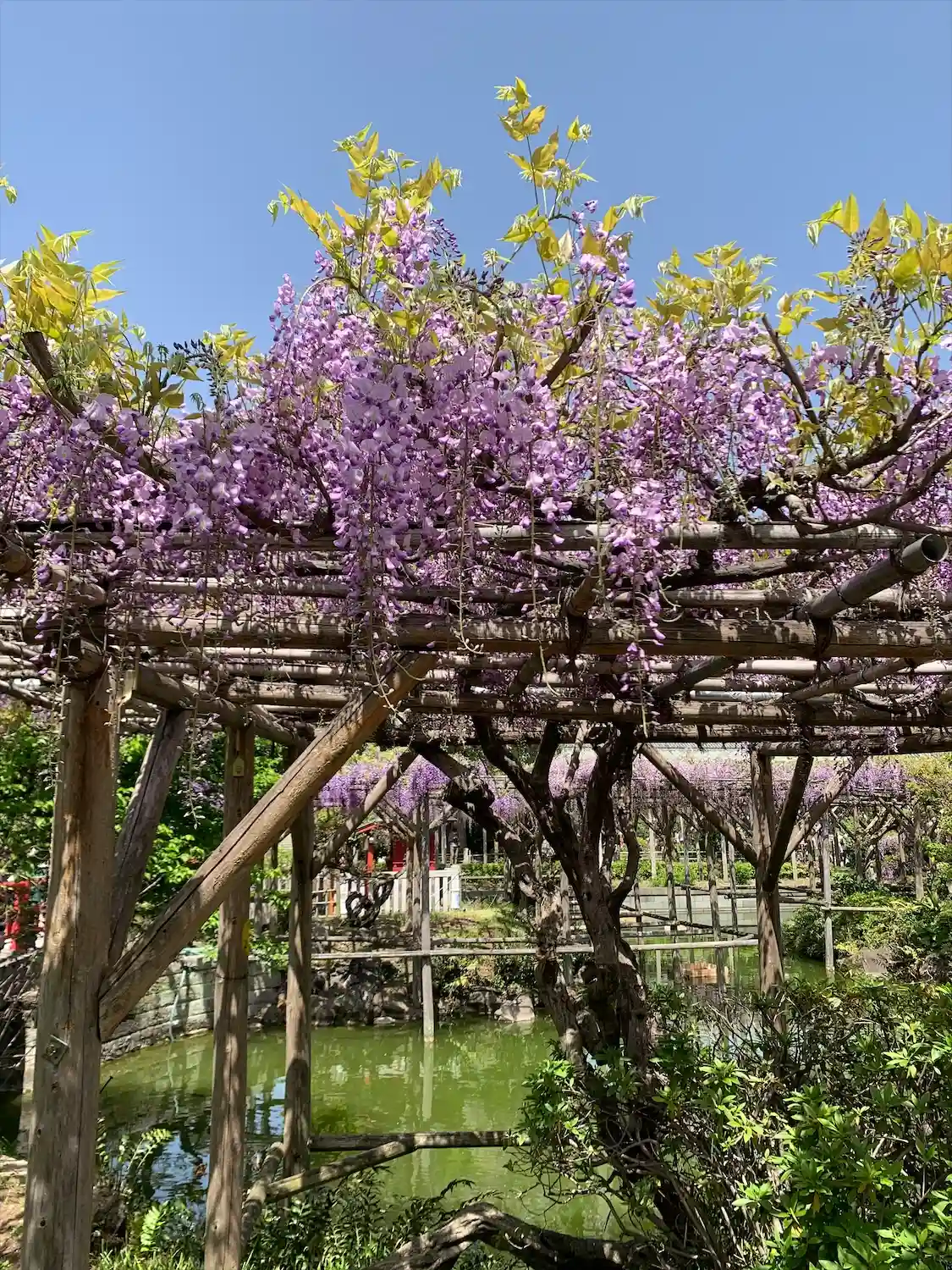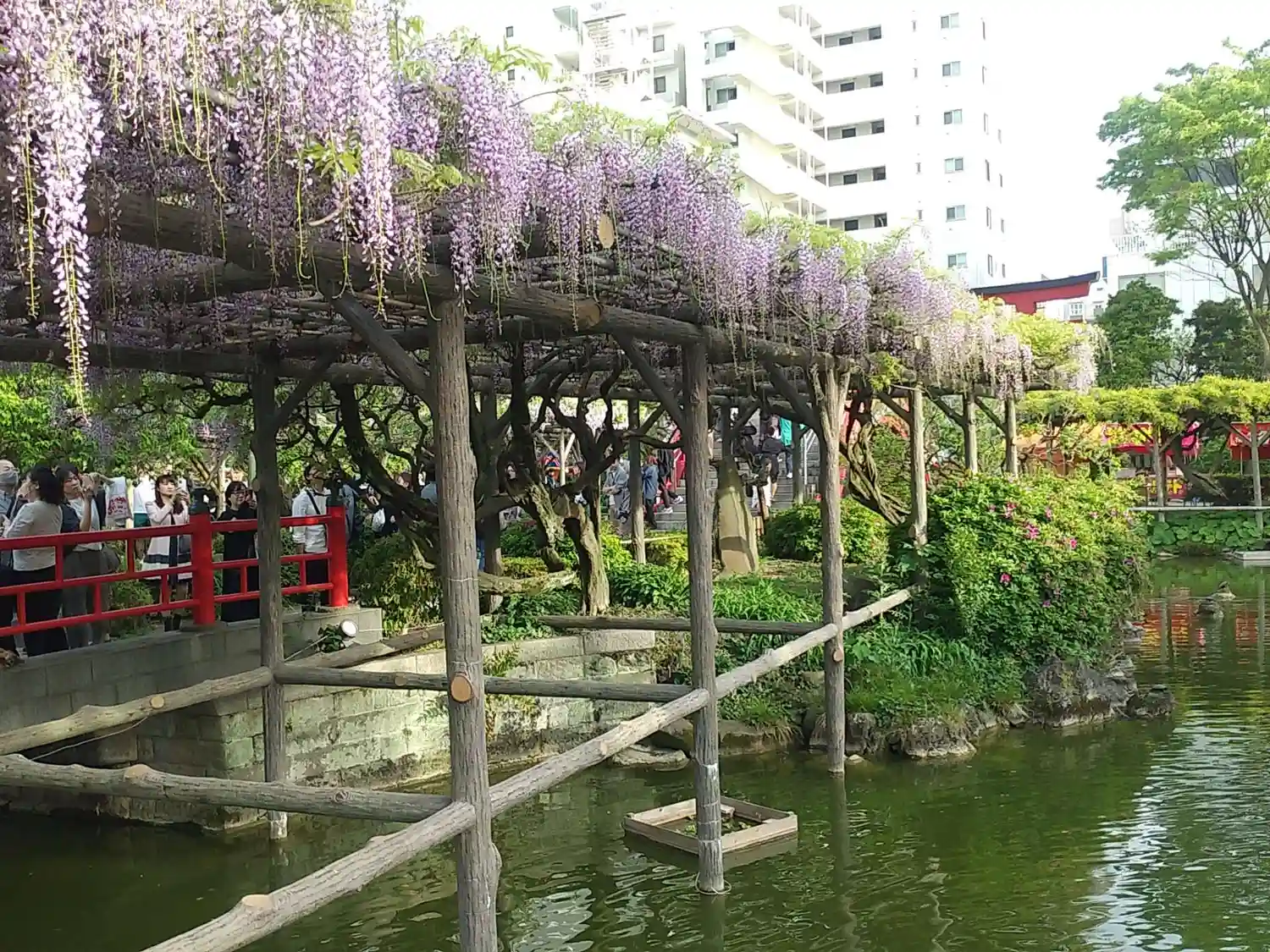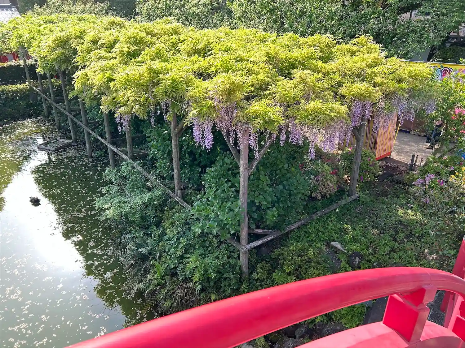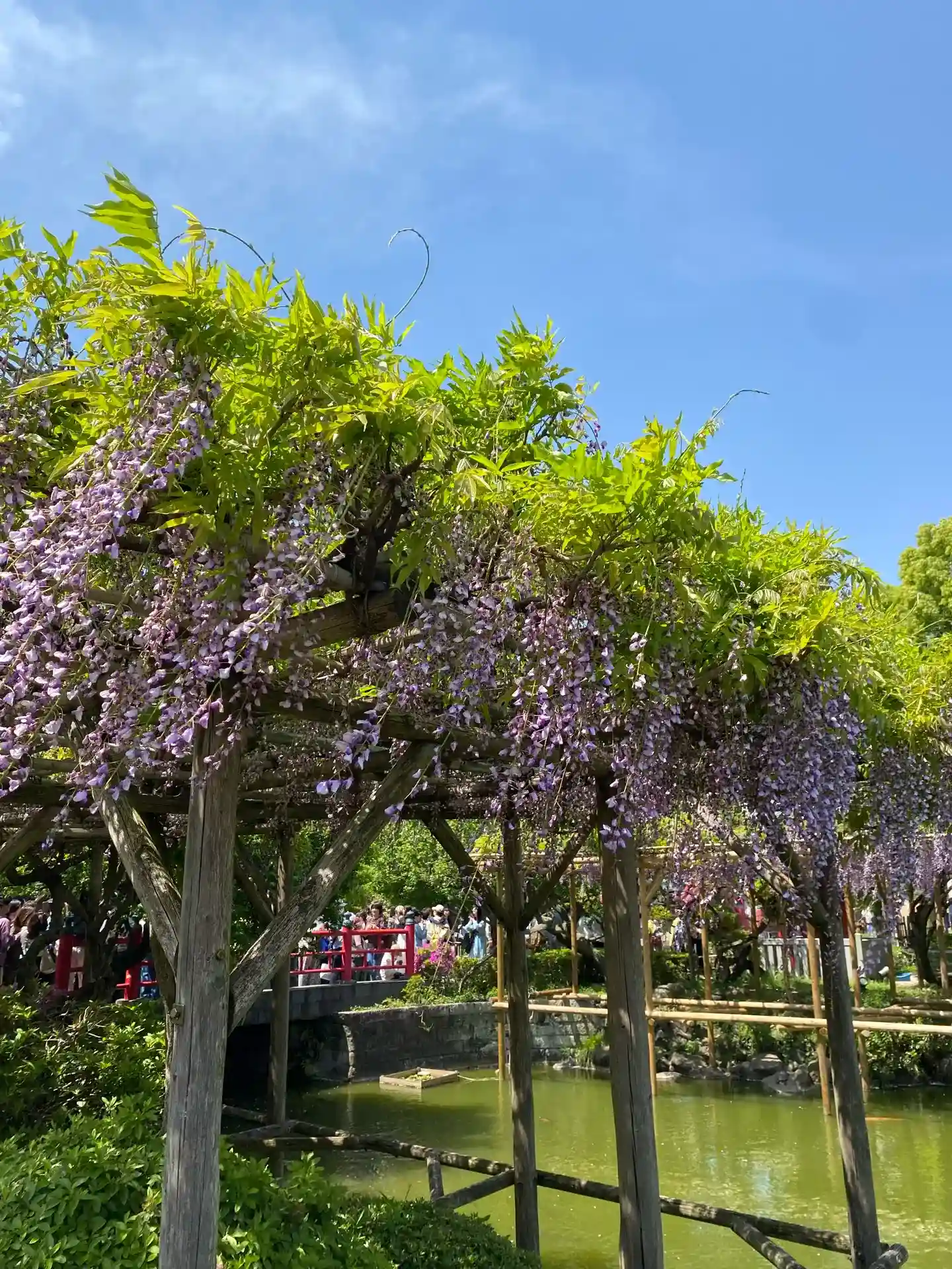 太鼓橋に藤が、かかっている時が見頃と言って良いと私は思います。