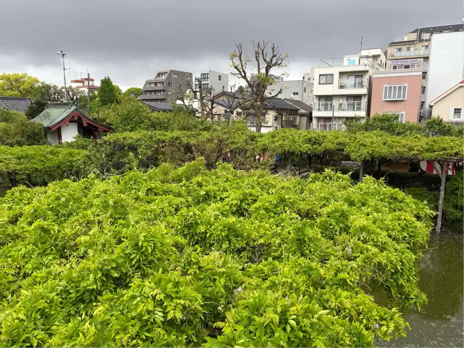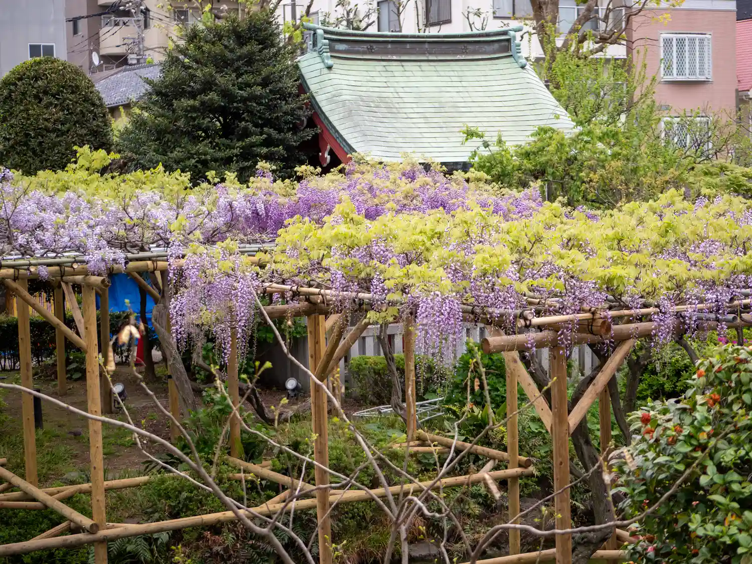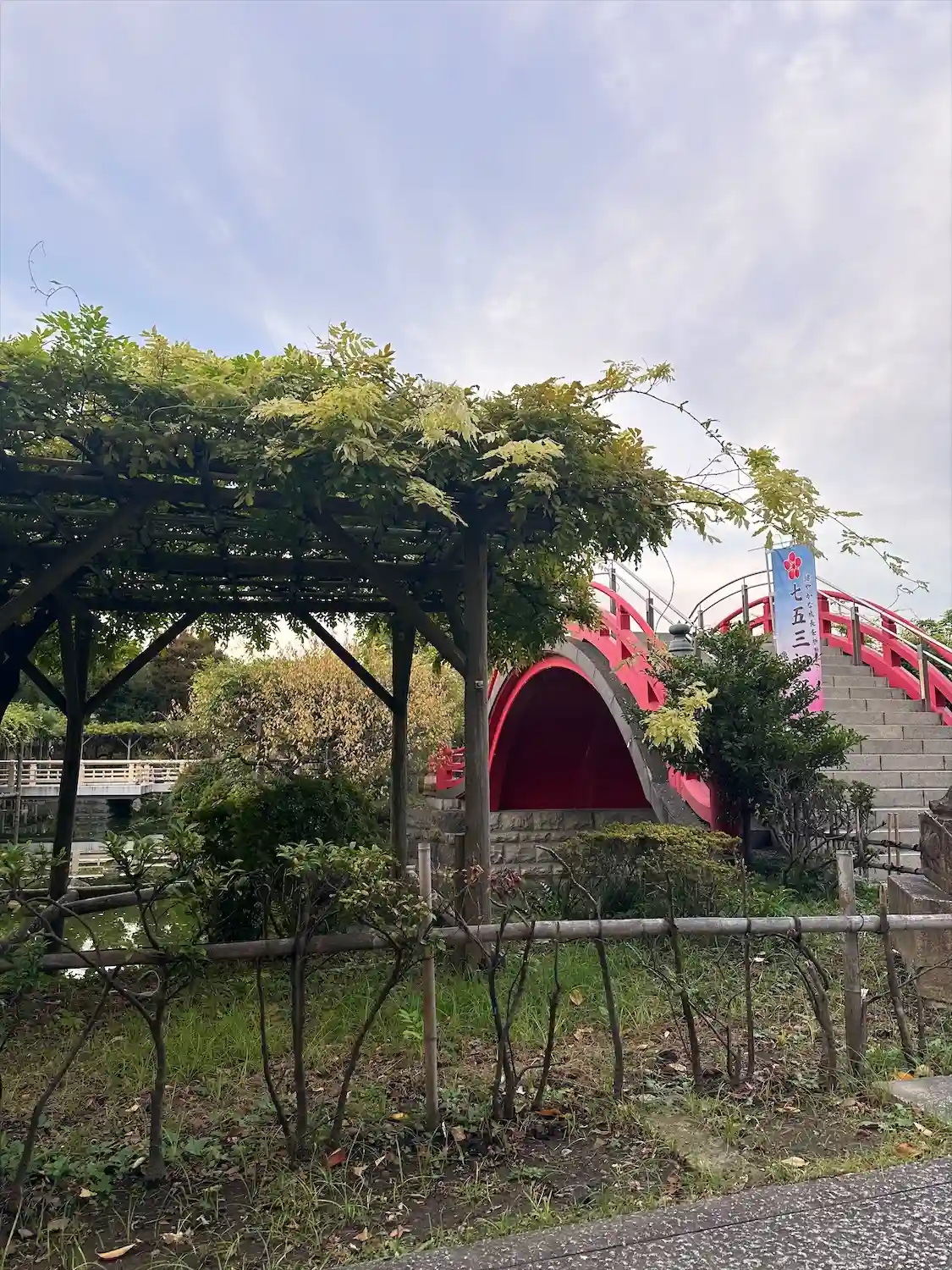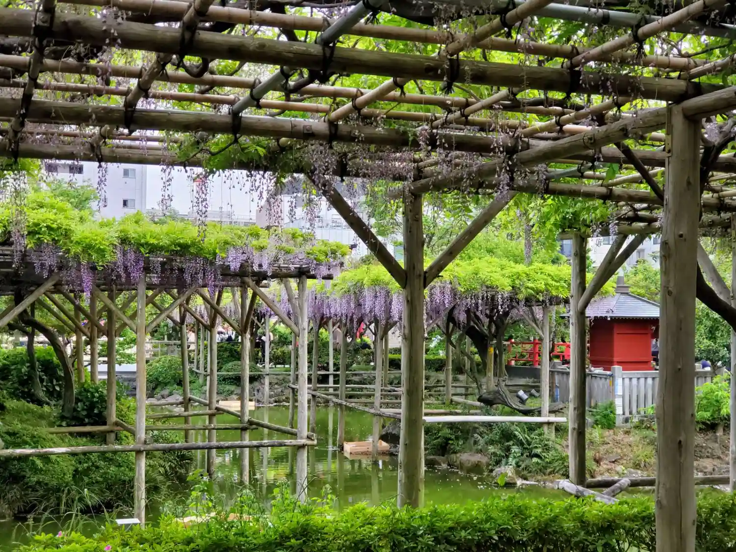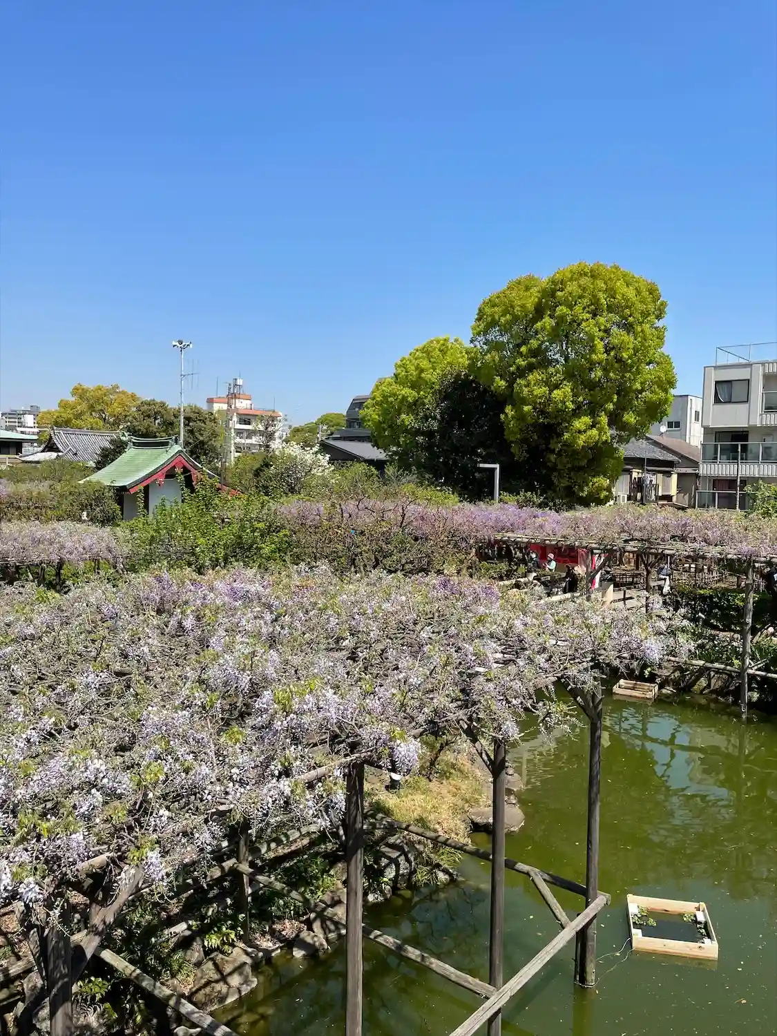 太鼓橋に藤が、かかっている時が見頃と言って良いと私は思います。
