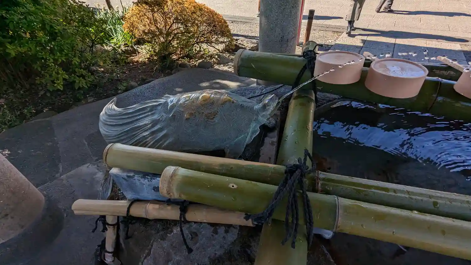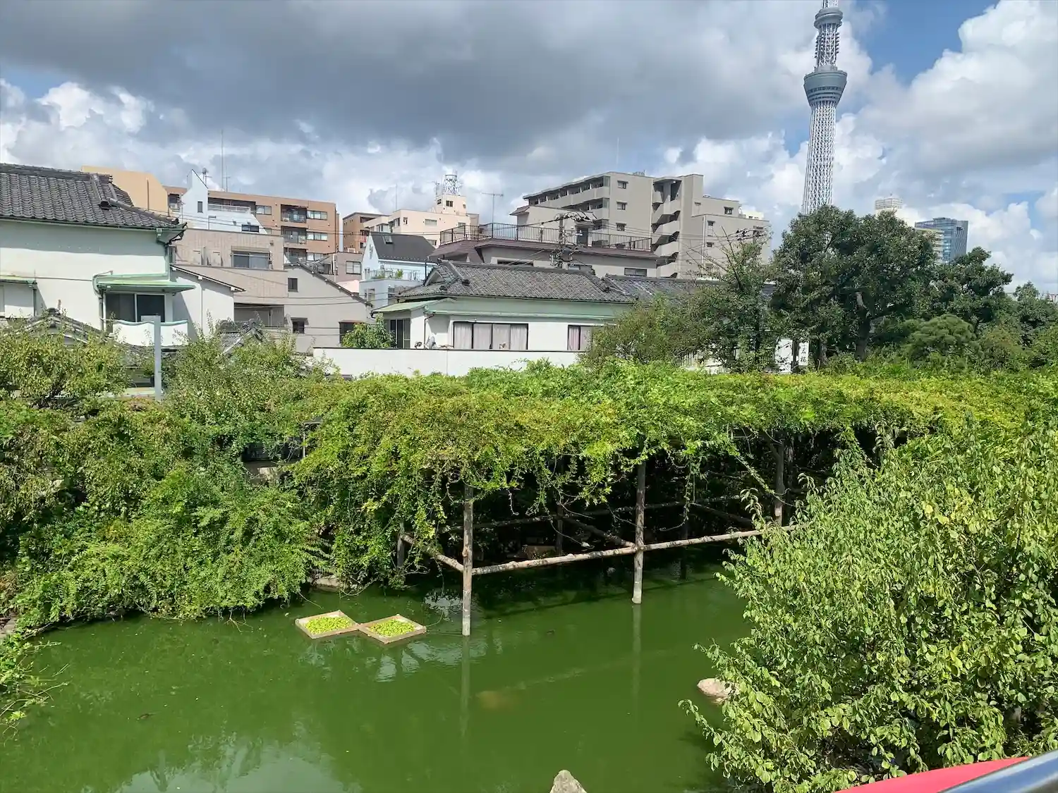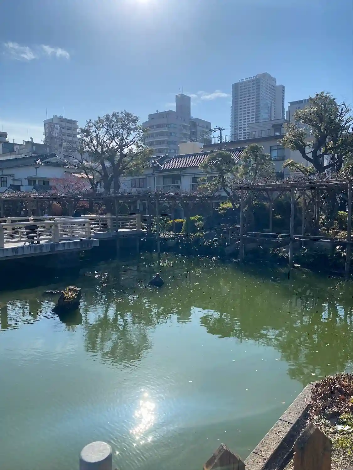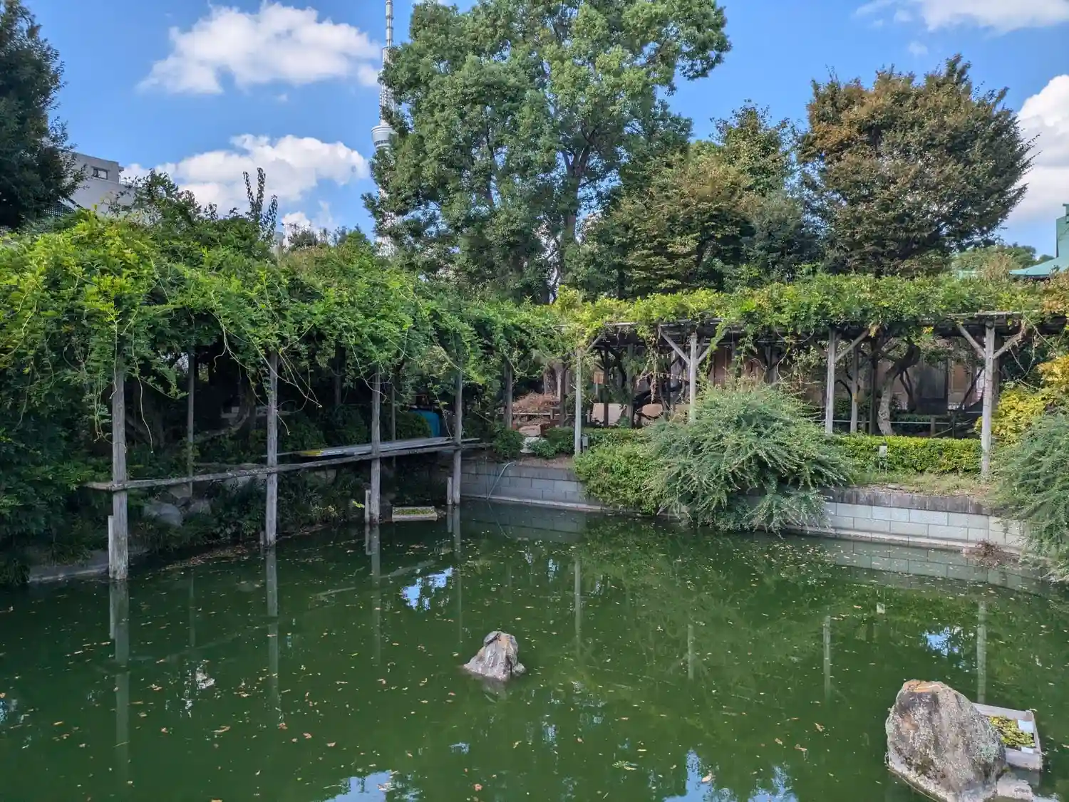 池で亀がのんびりしています。スカイツリーとのコラボで東京らしいです。