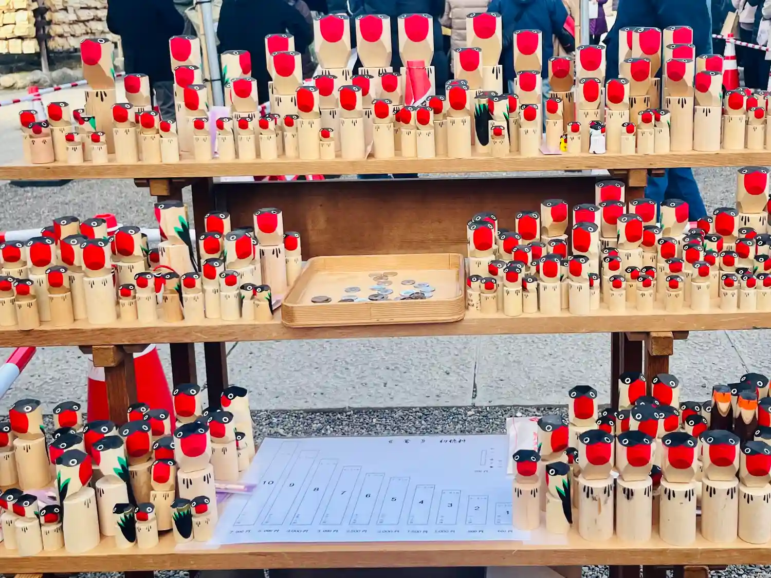 サイズ表で持参した鷽の寸法を調べ授与するサイズを決める表ですけど①サイズアップも良し。②毎年同じサイズでも良し。③オブジェに買い足すも良し。マイルールで良いと思います。