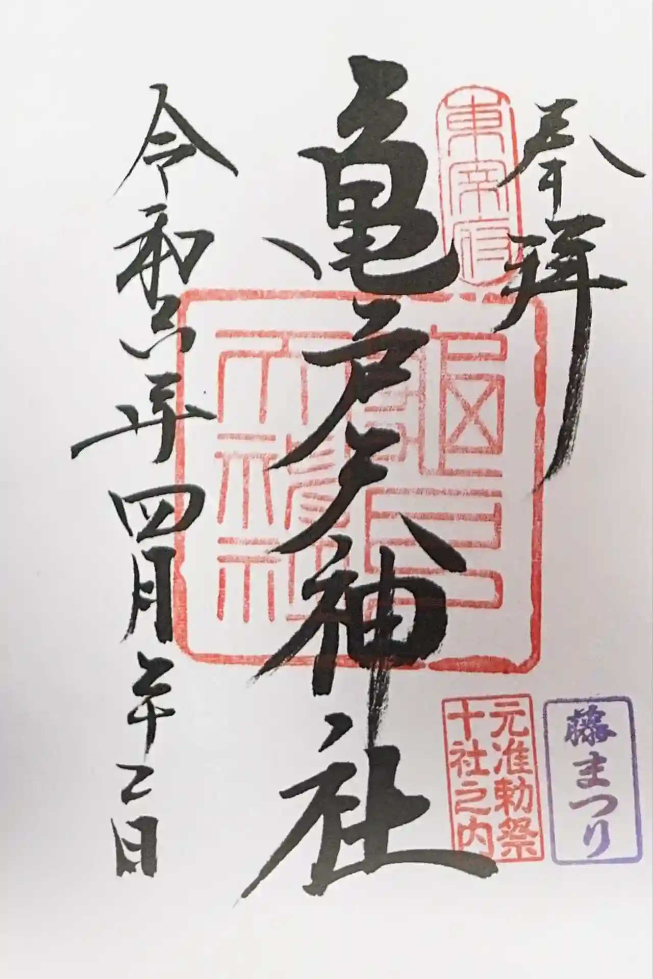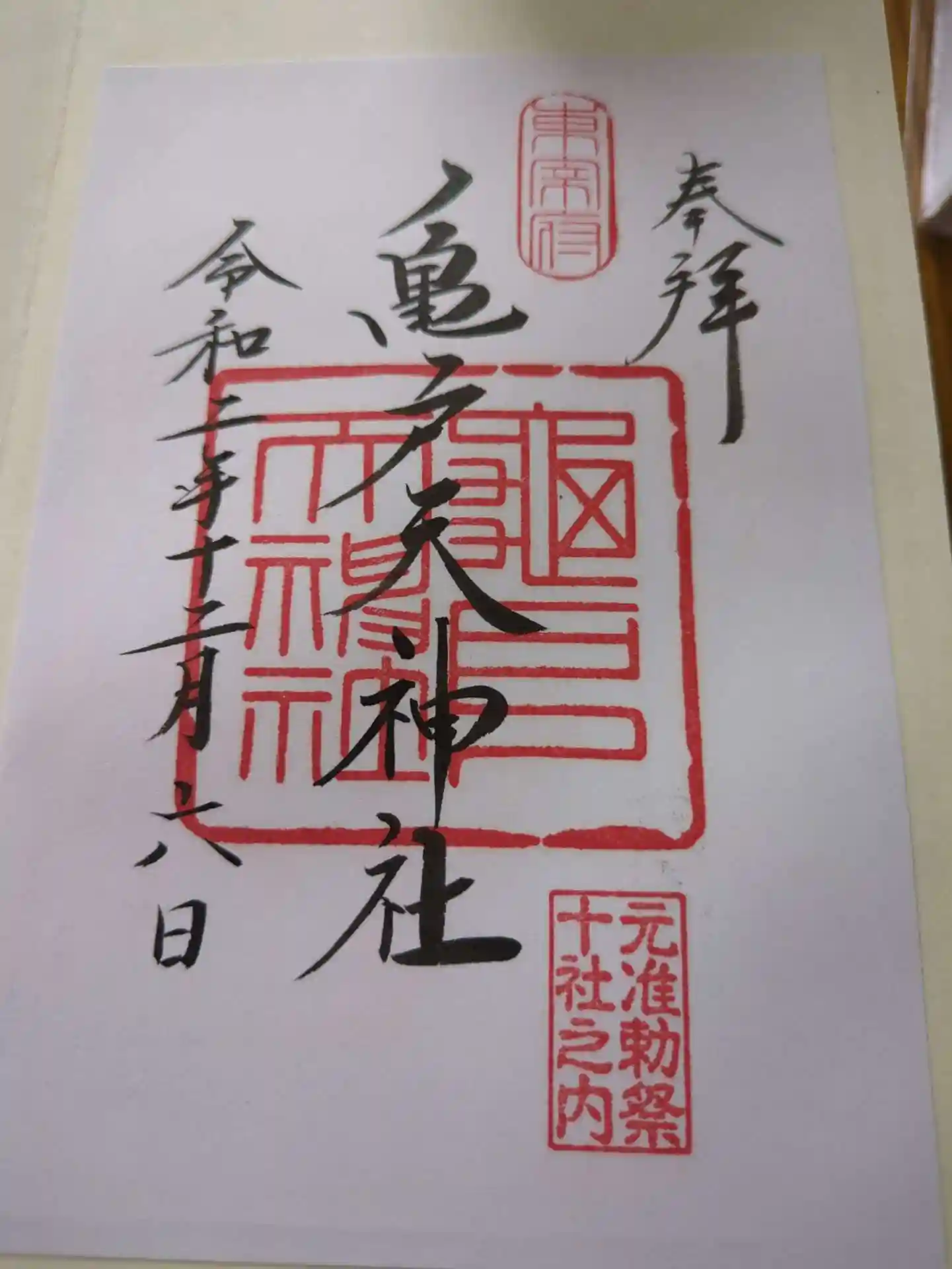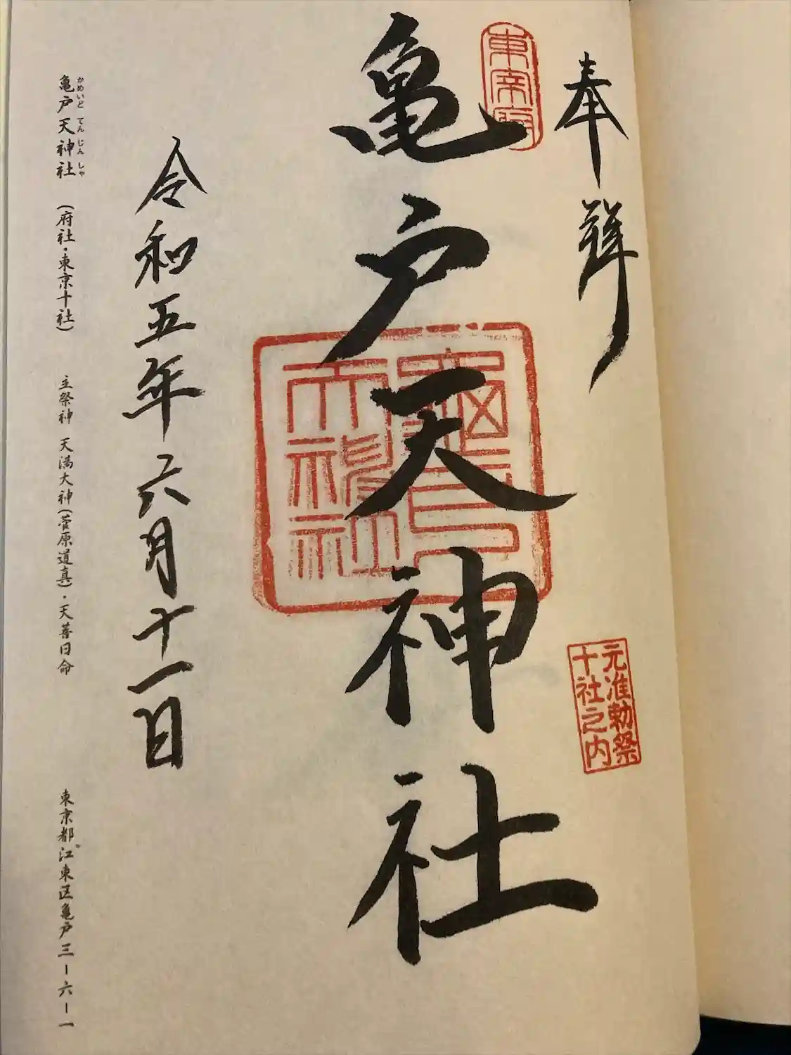 亀戸天神社の御朱印を直書きでいただきました