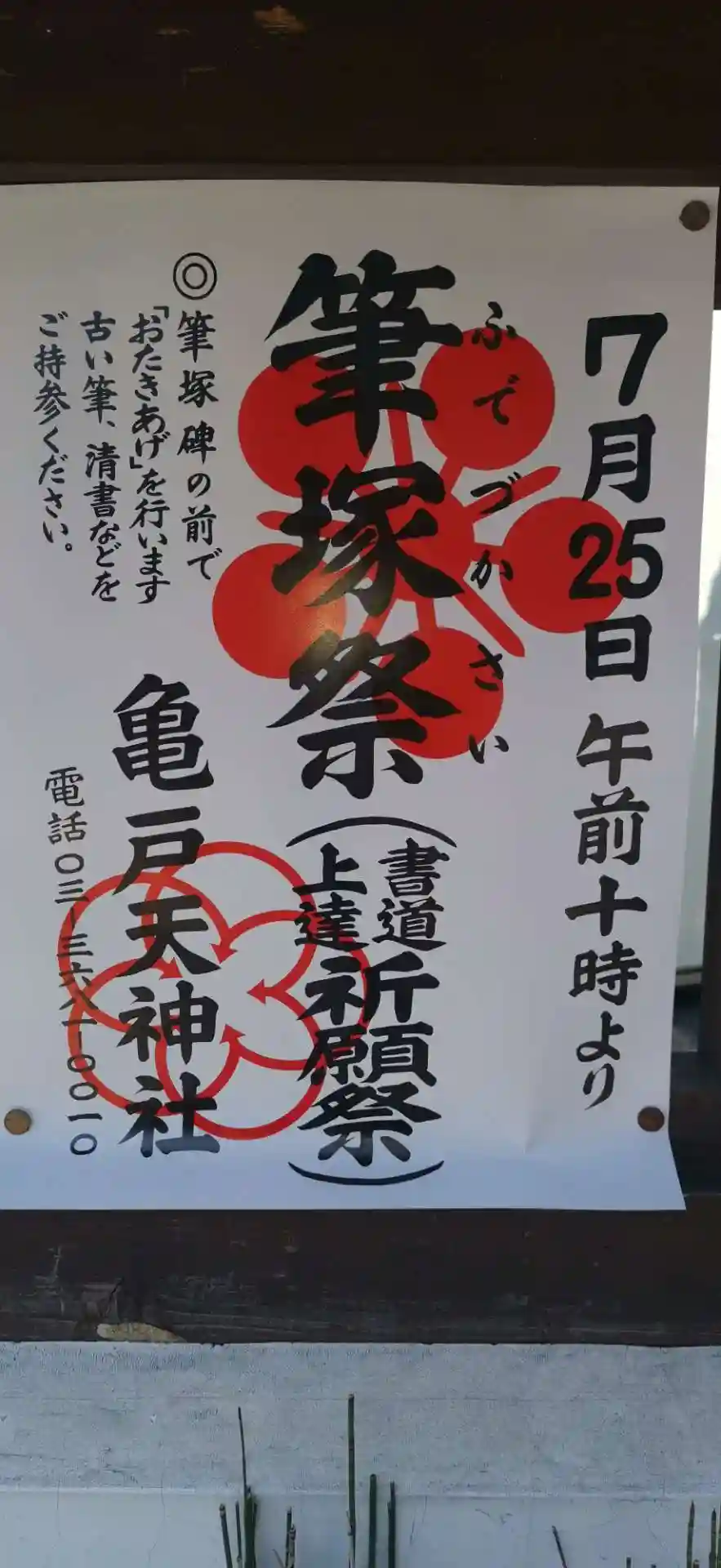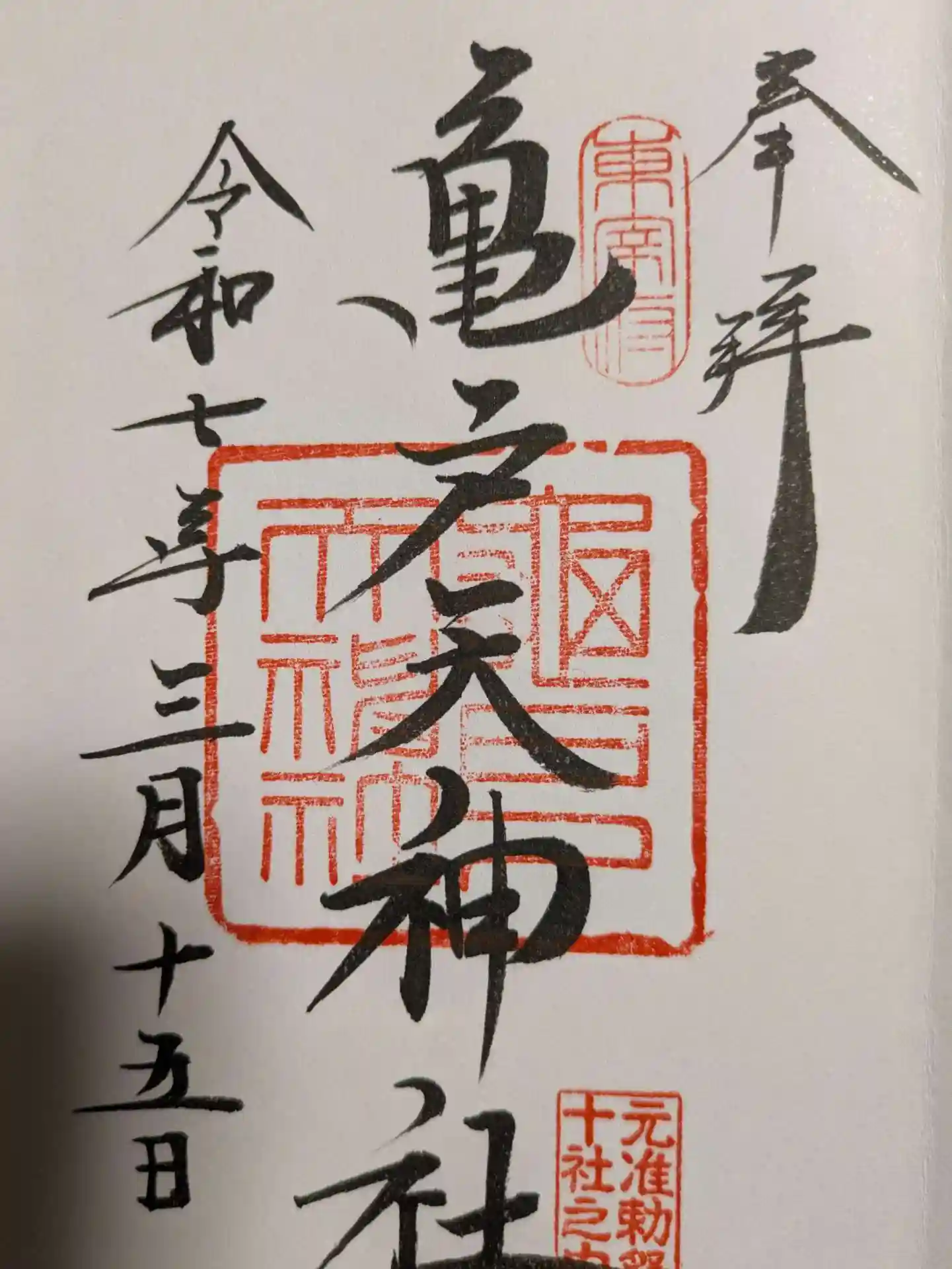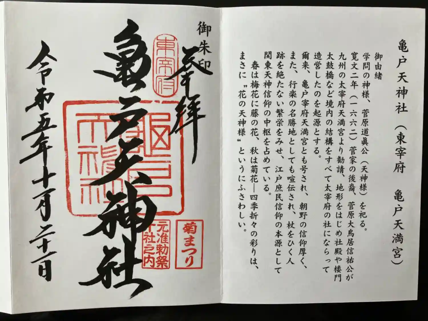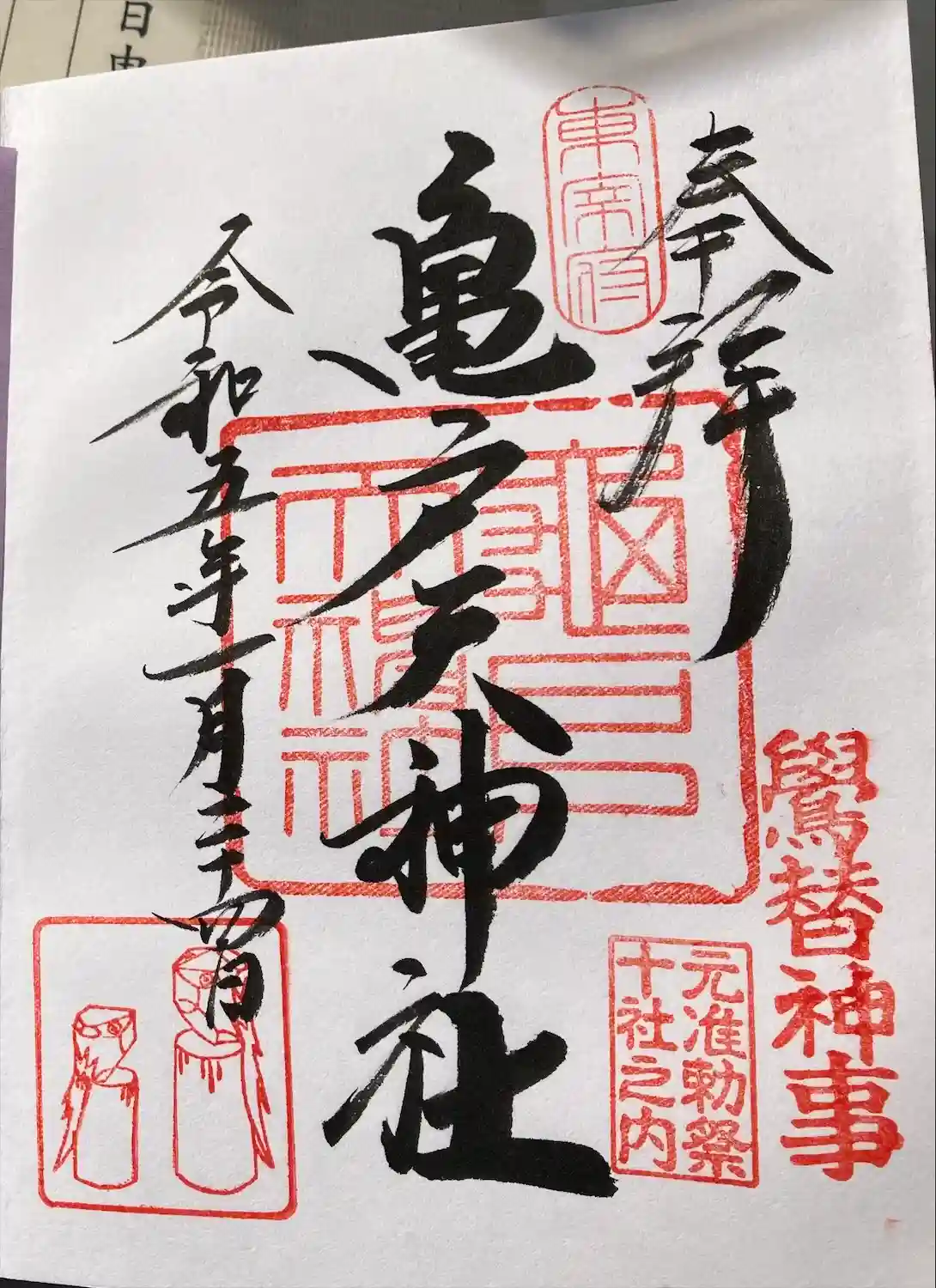 亀戸天神社の御朱印を直書きでいただきました