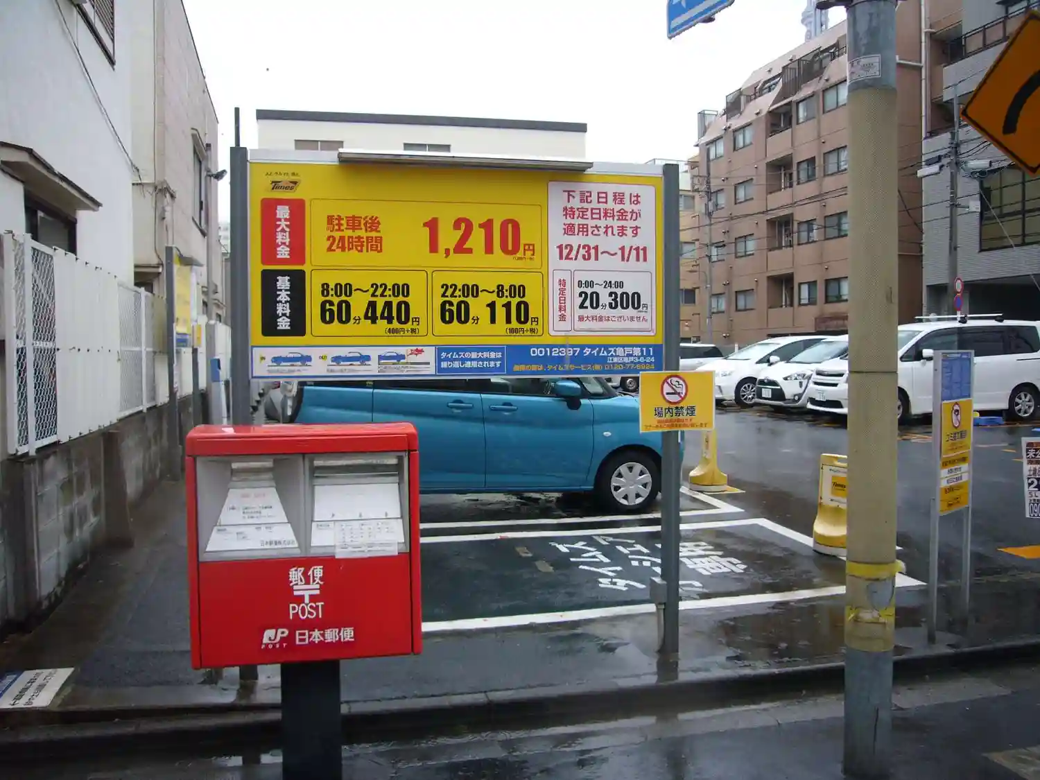 24時間1320円(クレジットカードOK)この駐車場は有難い。対面のセブンイレブン心強い。ゴールデンウィークここに車中泊して電車で都内を満喫する人もいるかな?亀戸天神無料駐車場(時間制限有り)まで徒歩1分以内。喫煙所、トイレはセブンイレブンでok。