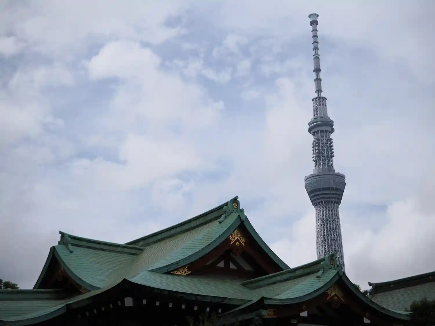社殿とスカイツリー