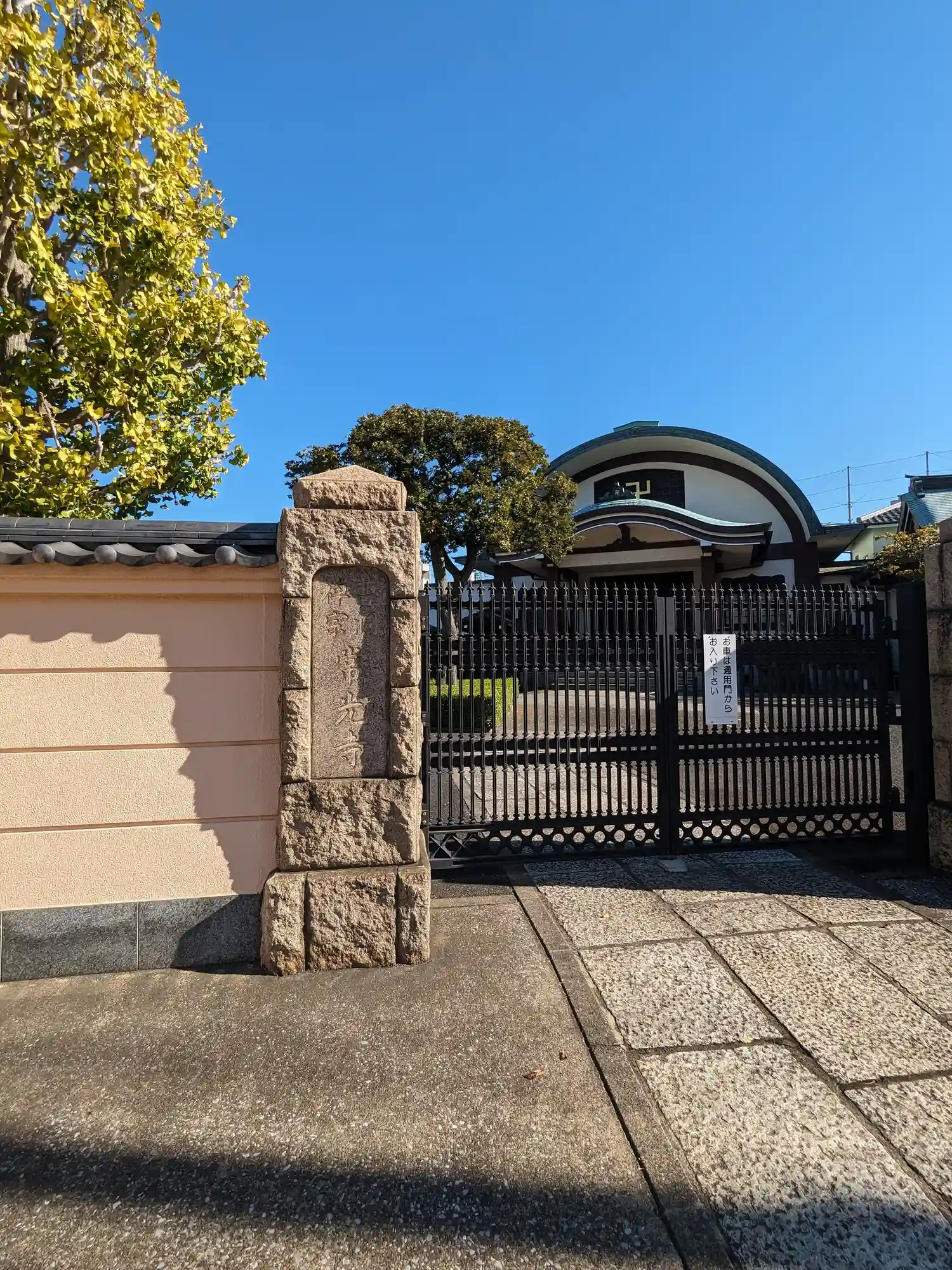 正面の門は閉鎖されていて駐車場側のみ開門していました。