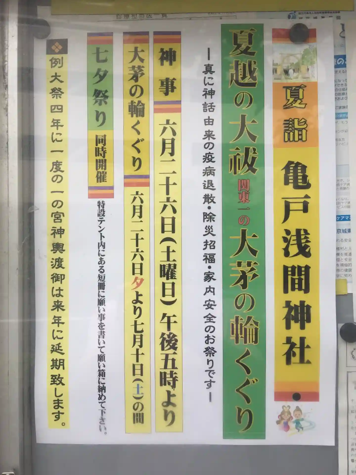 関東一大きい大茅の輪くぐりは夕方5時からでちょっと早すぎてしまいましたが、7月10日までにまたくぐりに行きます。境内は七夕祭の飾り付けで賑やかです。