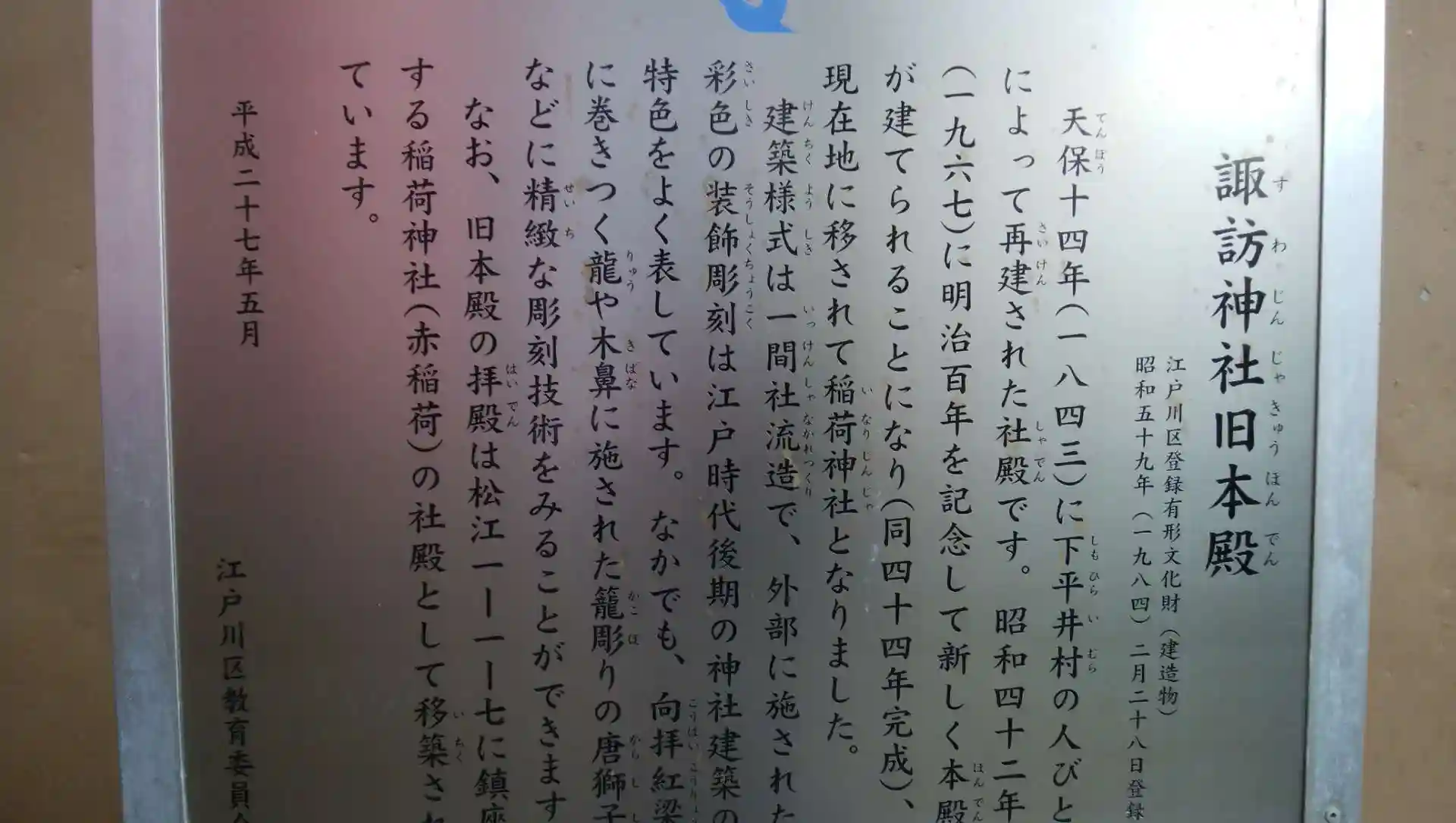 何度目かのお詣りです。こちらの社は平井の鎮守さまです。社殿の屋根の型がかっこいいです。