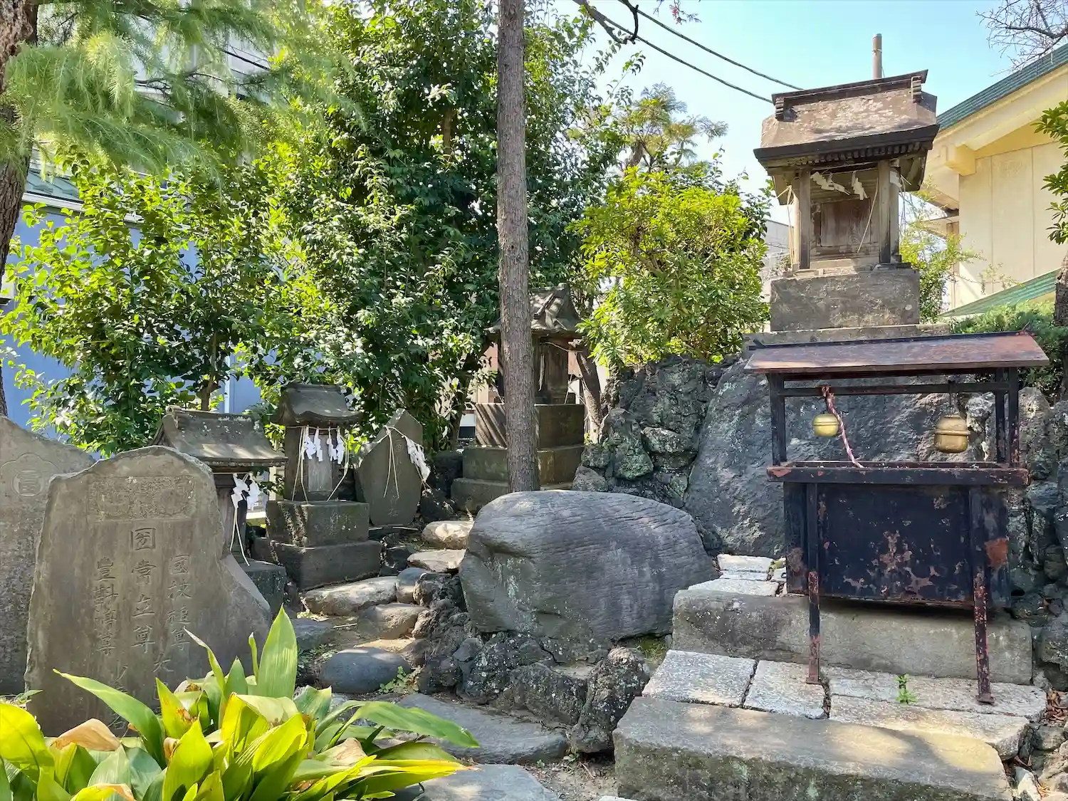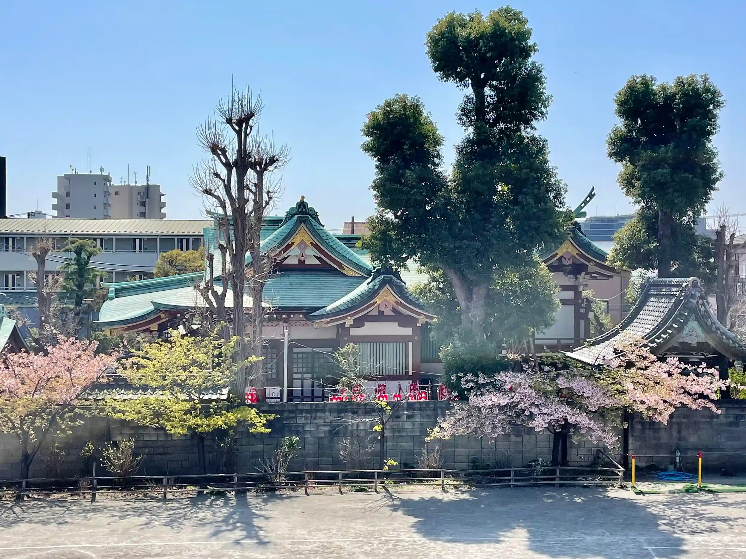 旧社殿の本殿は摂末社「稲荷神社」の社殿となり、拝殿は赤稲荷神社(松江1丁目1番7号)の社殿となっている。