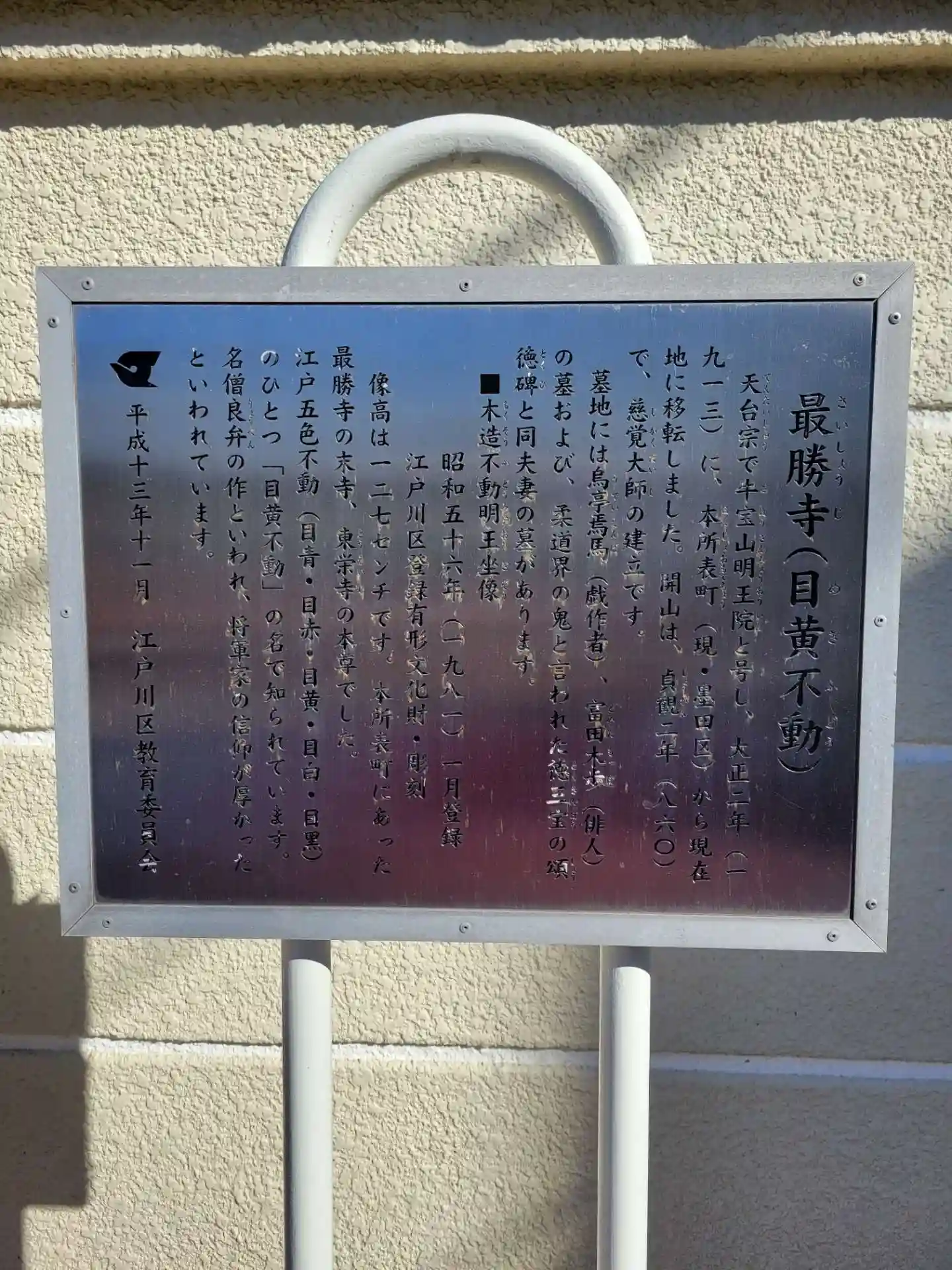 東京五色不動巡り、目黄不動、東京都江戸川区最勝寺を参拝。江戸を守護するべく、江戸城を取り囲むように設置された五色不動。天海僧正の提言で徳川家光公が指定したと伝わります。ここでも天海僧正、すごい方です。宗派:天台宗、御本尊:釈迦如来・不動明王