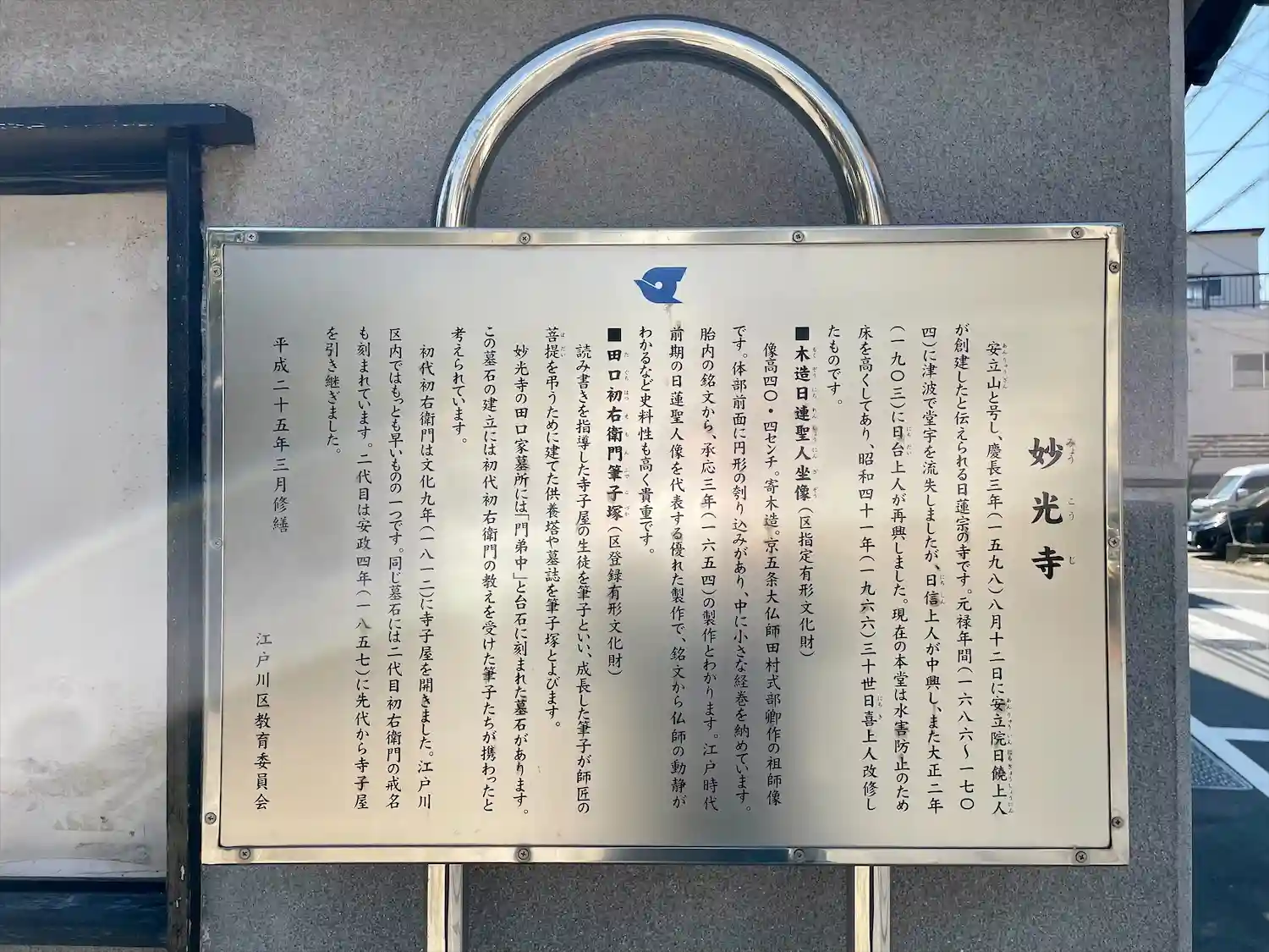 正式名:安立山妙光寺 東京都江戸川区にある日蓮宗の寺院。 慶長3年(1598)8月12日に安立院日…