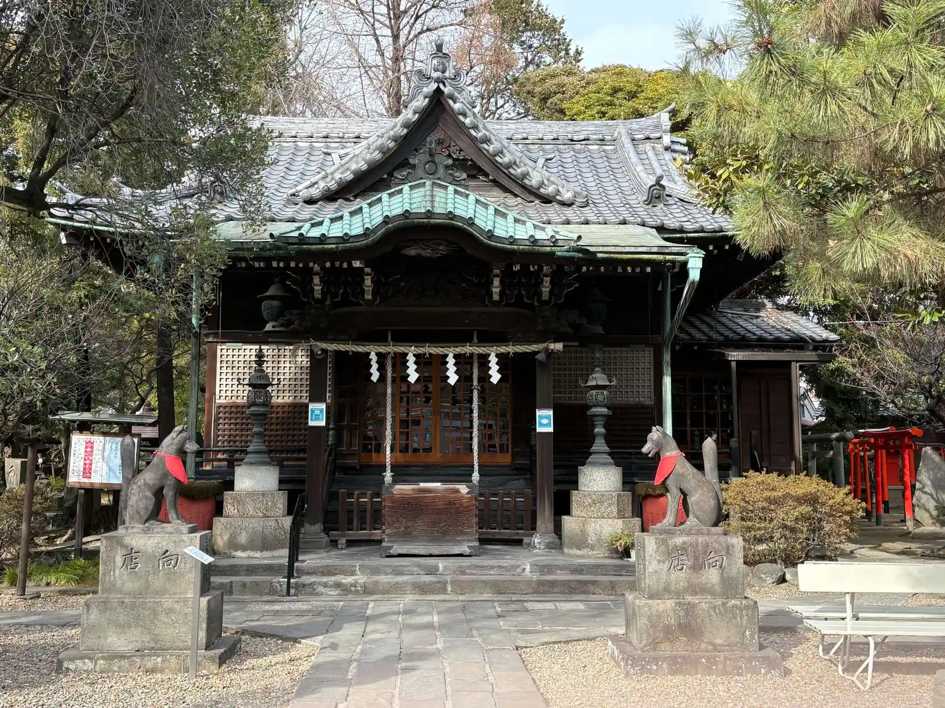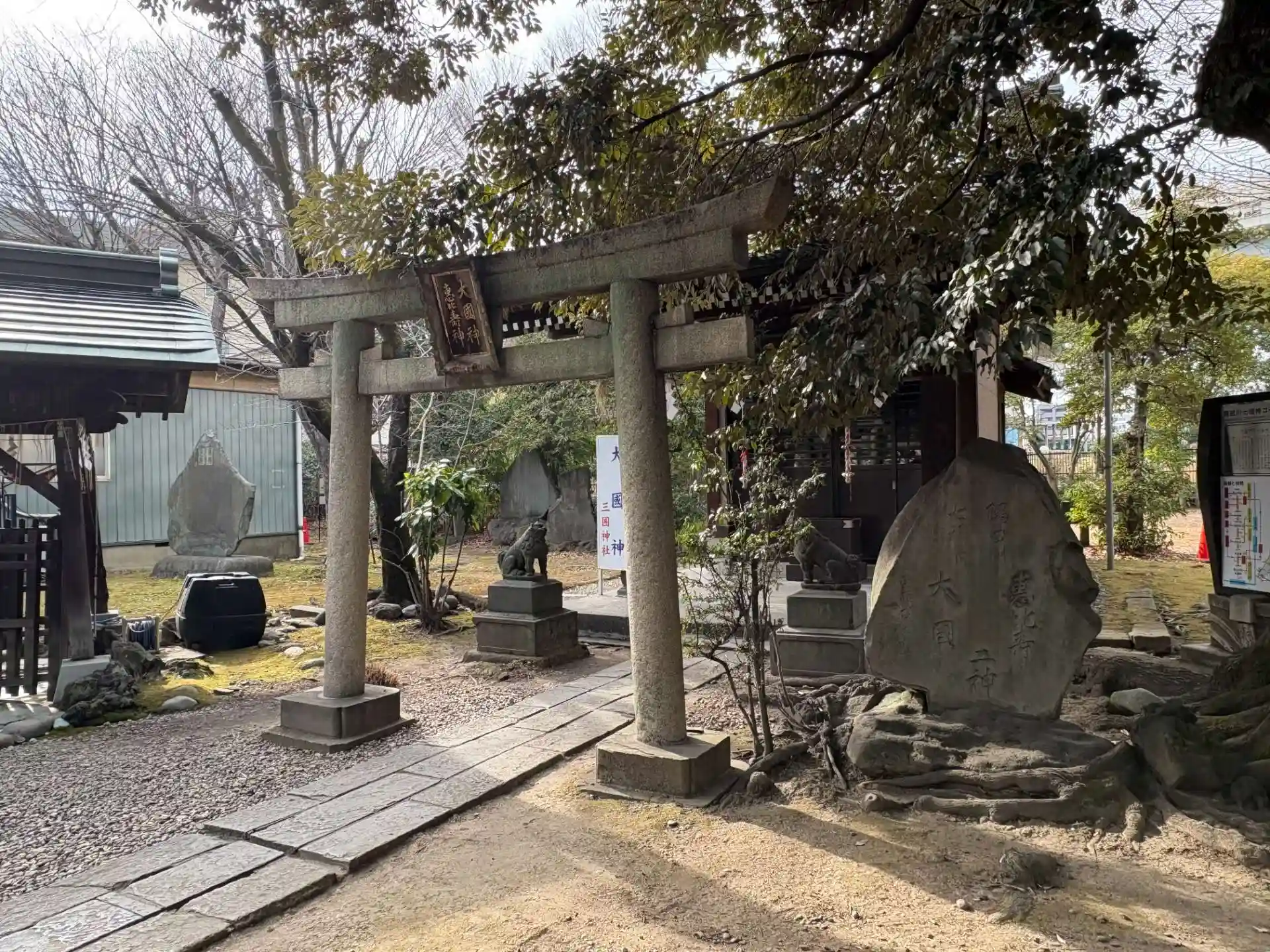 三井家の守護神であり「三井を囲む(守る)」が名前の由来のこと。旧三越本店にあったライオン像が有名。御朱印については社務所のインタフォンを押しても反応なく留守だったのかなということで頂いてない。ここは三角形の鳥居も有名とのことだったがこの日は気づかなかった。