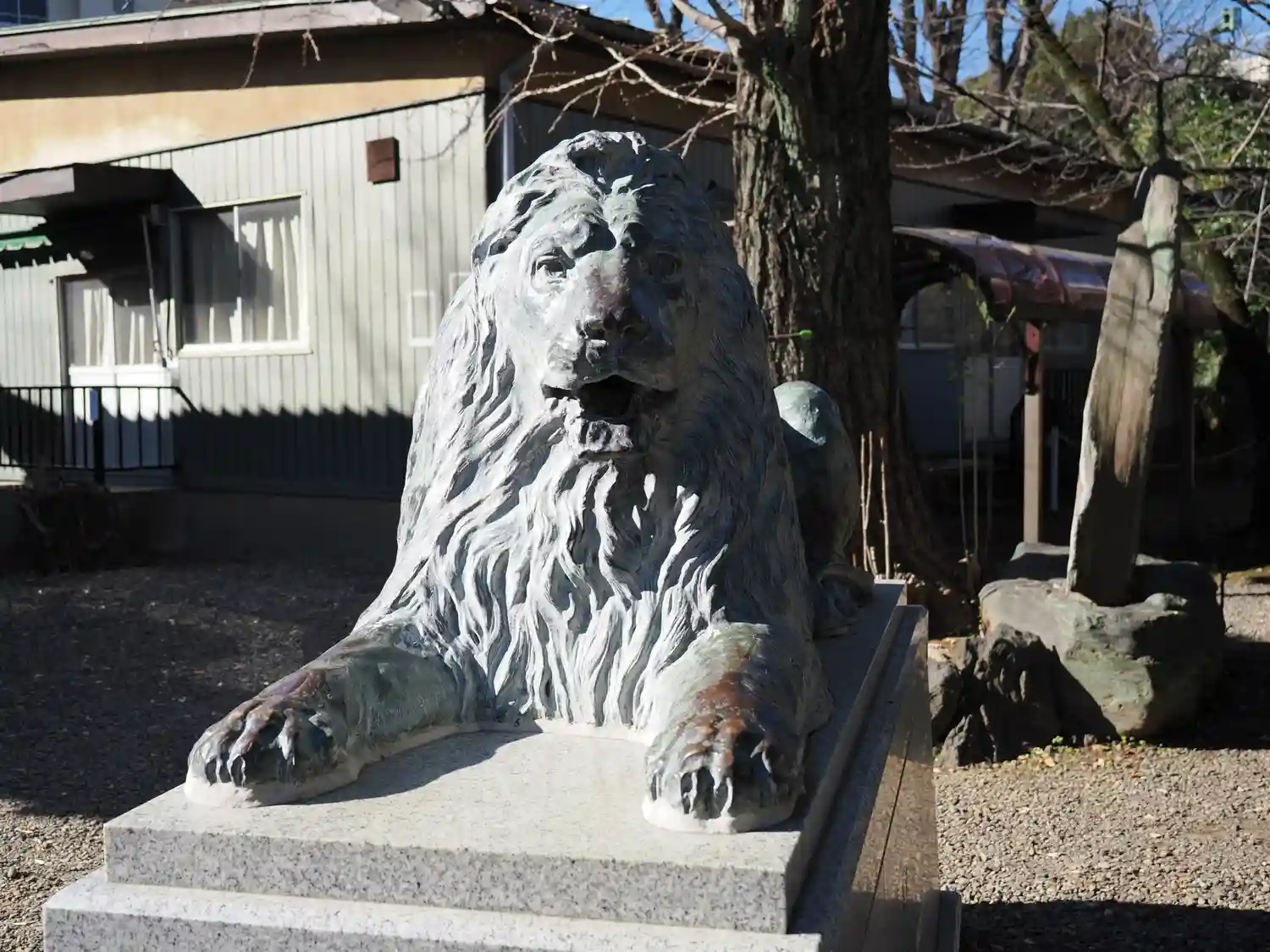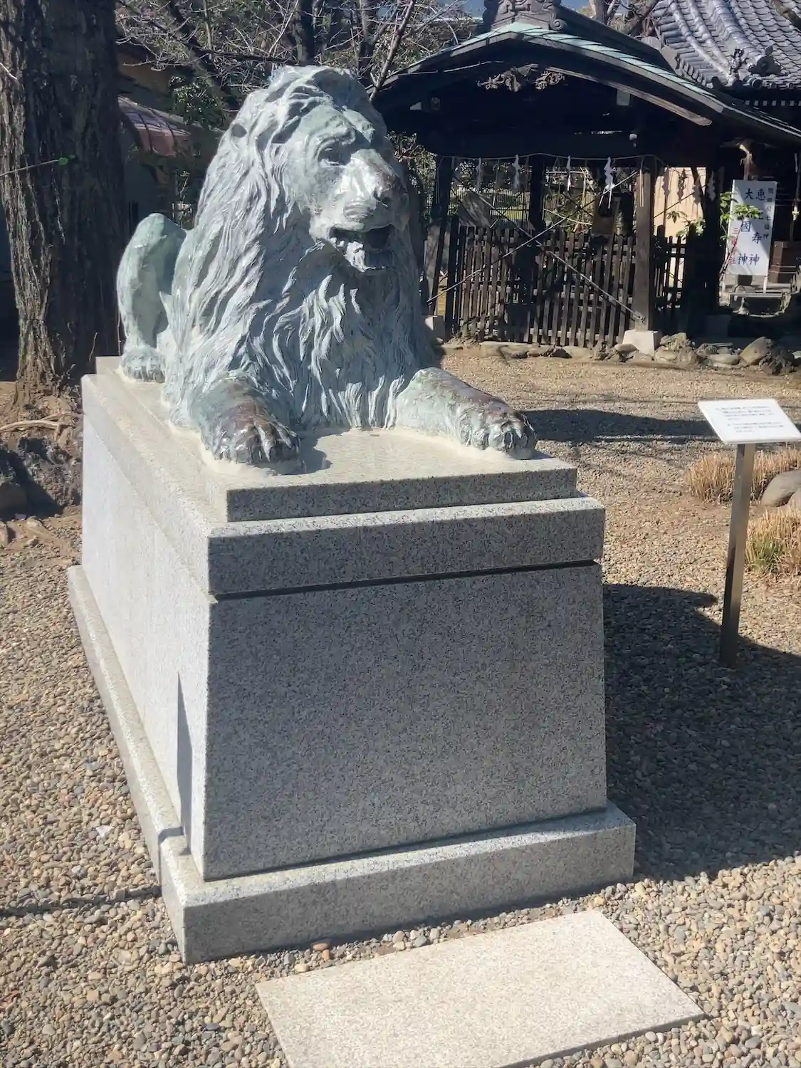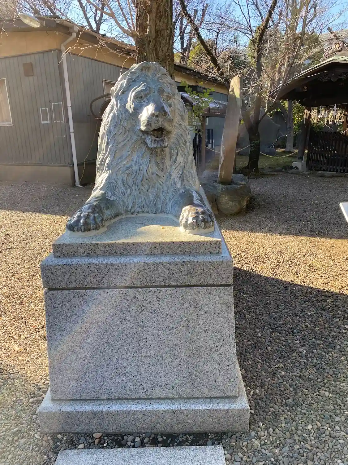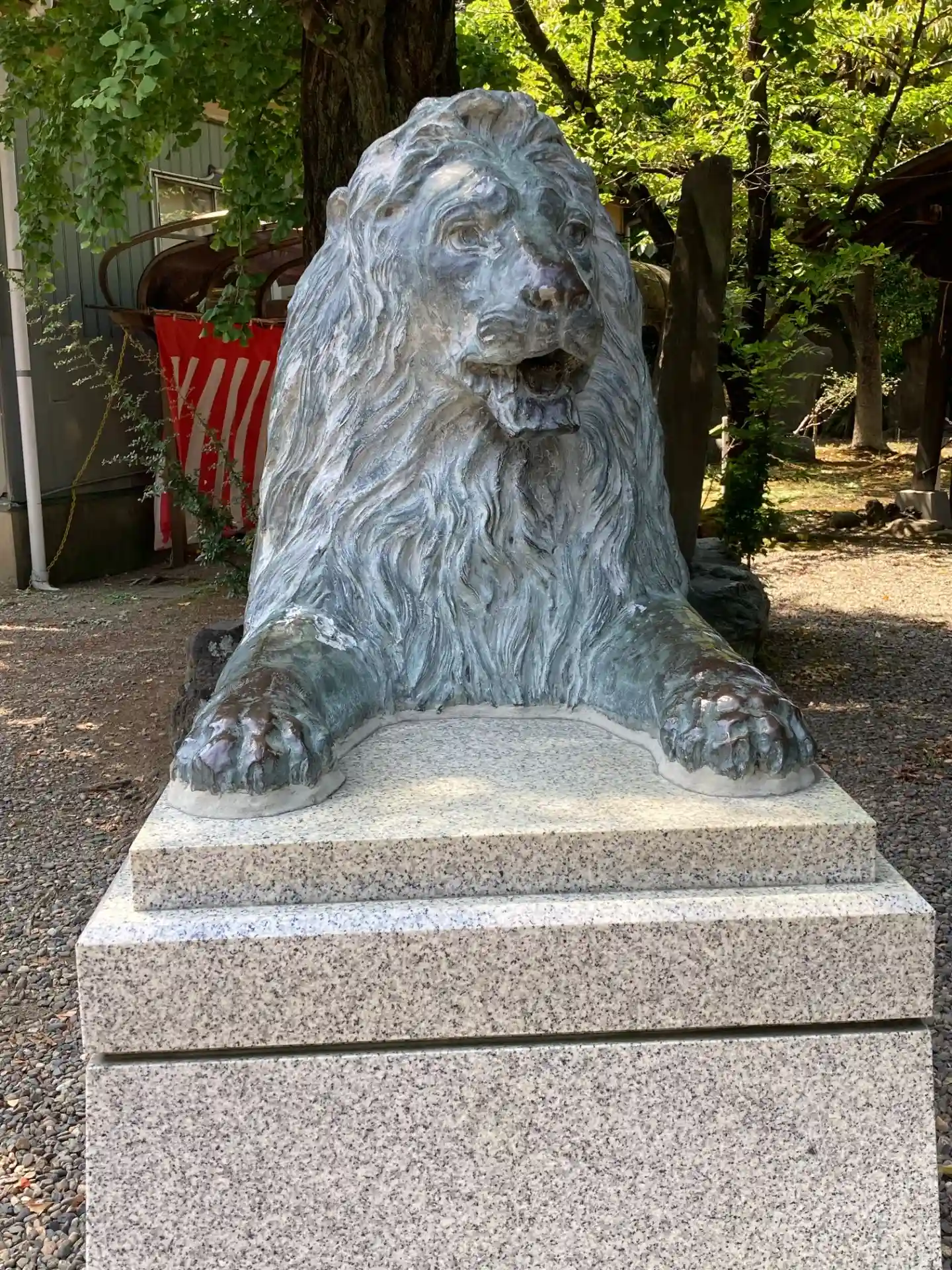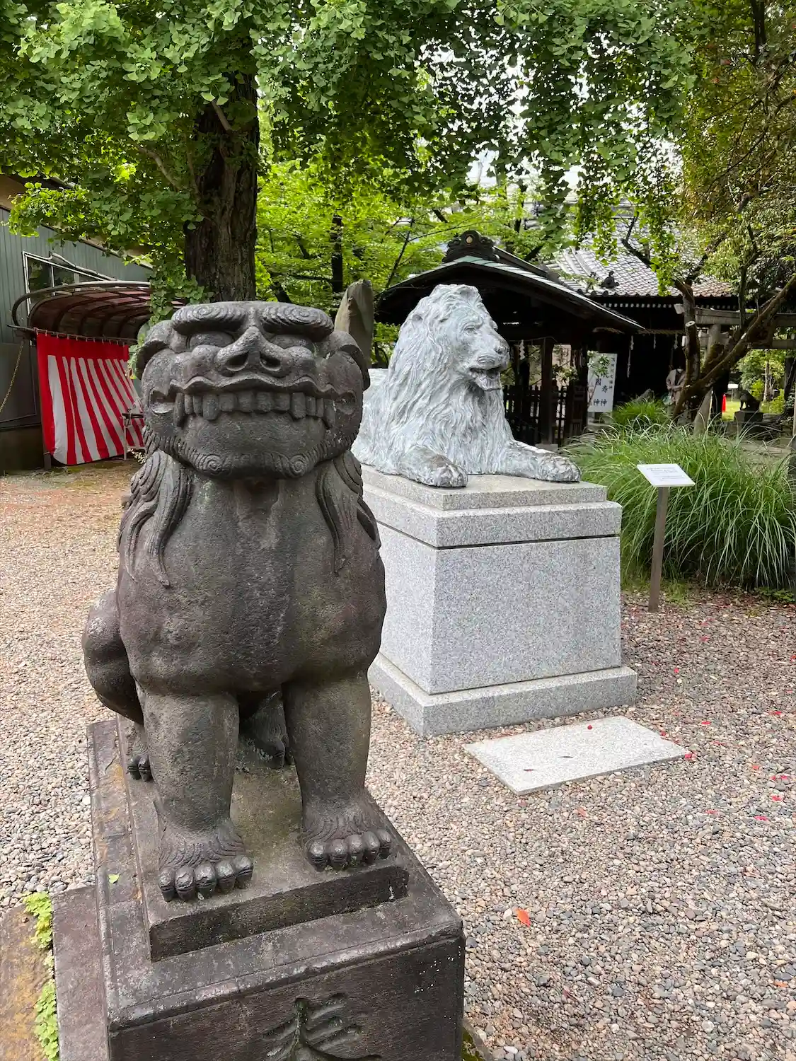 なぜか三越池袋店にあったライオン像が狛犬と一緒に鎮座しています