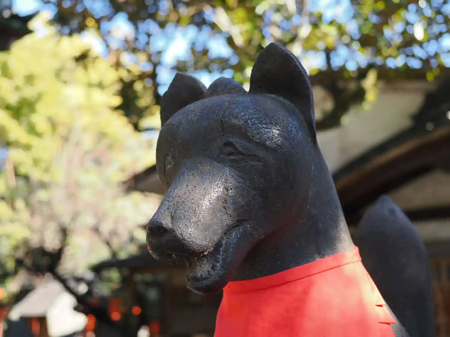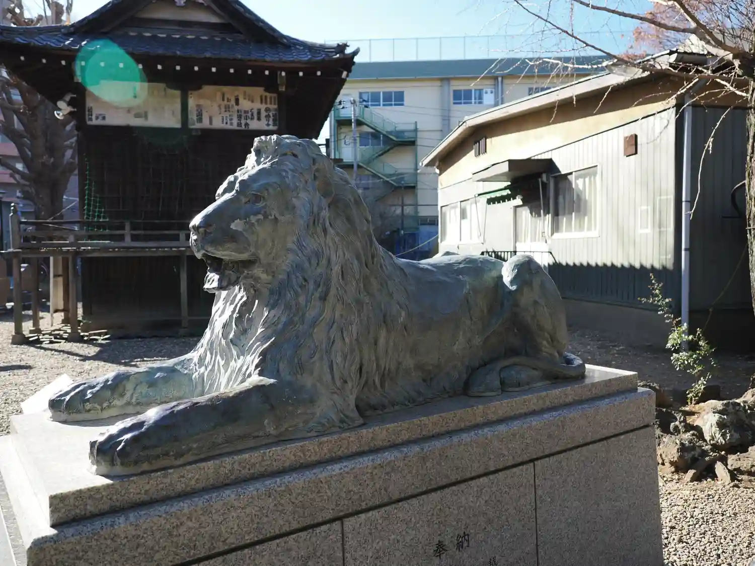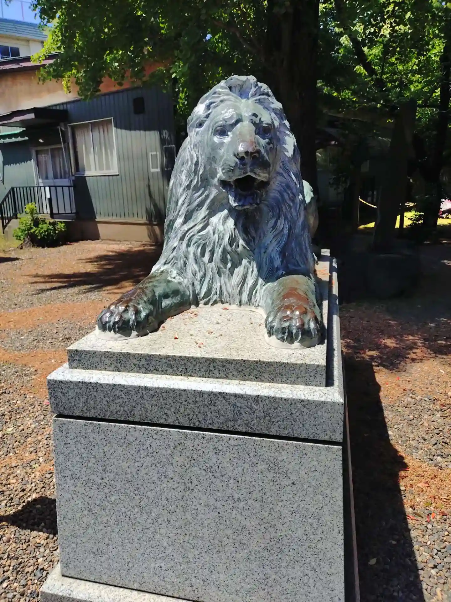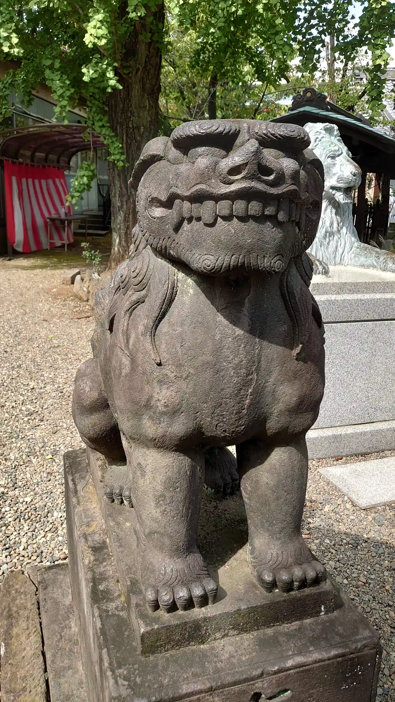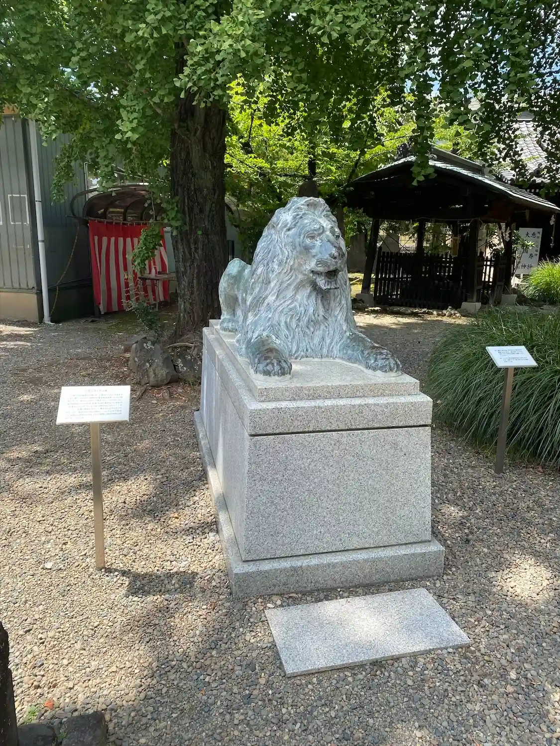 なぜか三越池袋店にあったライオン像が狛犬と一緒に鎮座しています