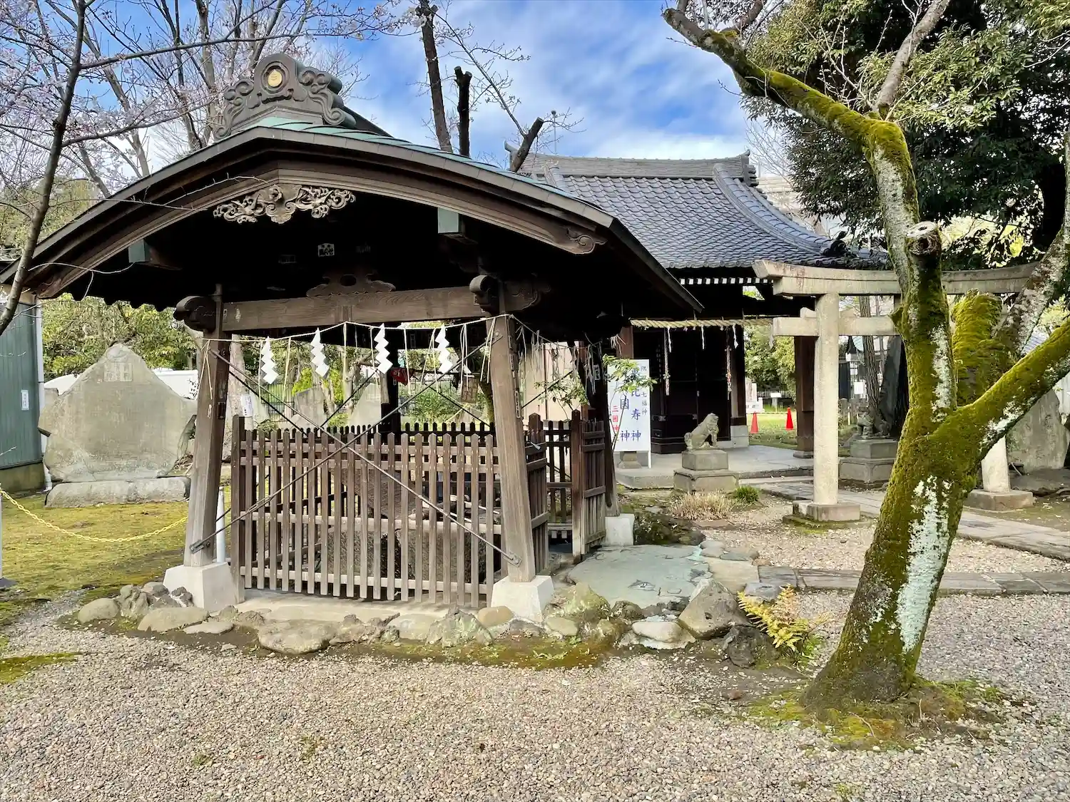 牛嶋神社から向島の三囲神社へ。百貨店の三越本店のサイトによると、「囲」が「(三)井」を囲んでいる…