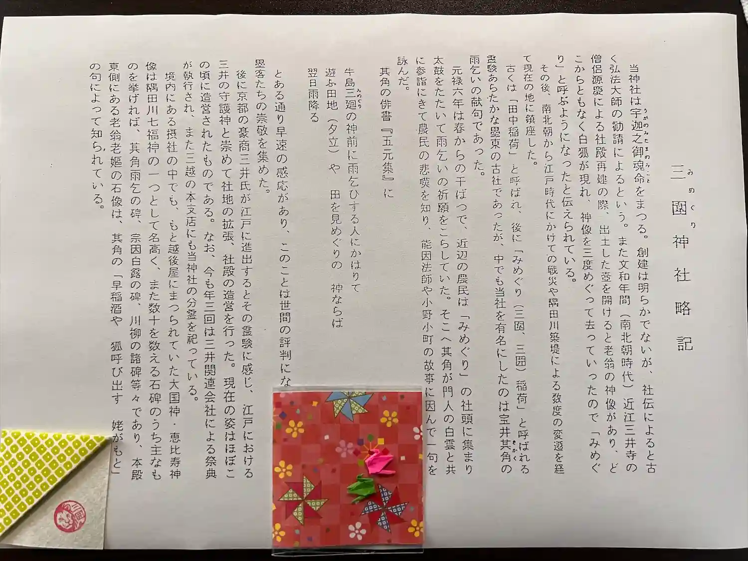 墨田区向島にある三囲神社を参拝。御朱印は以前頂いたものです。