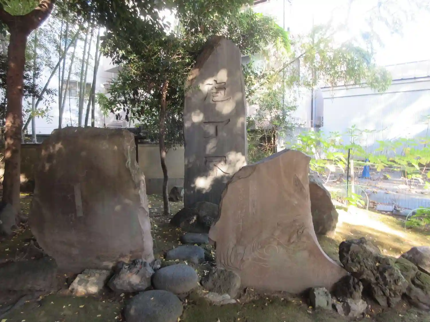 三囲稲荷大明神碑と力石