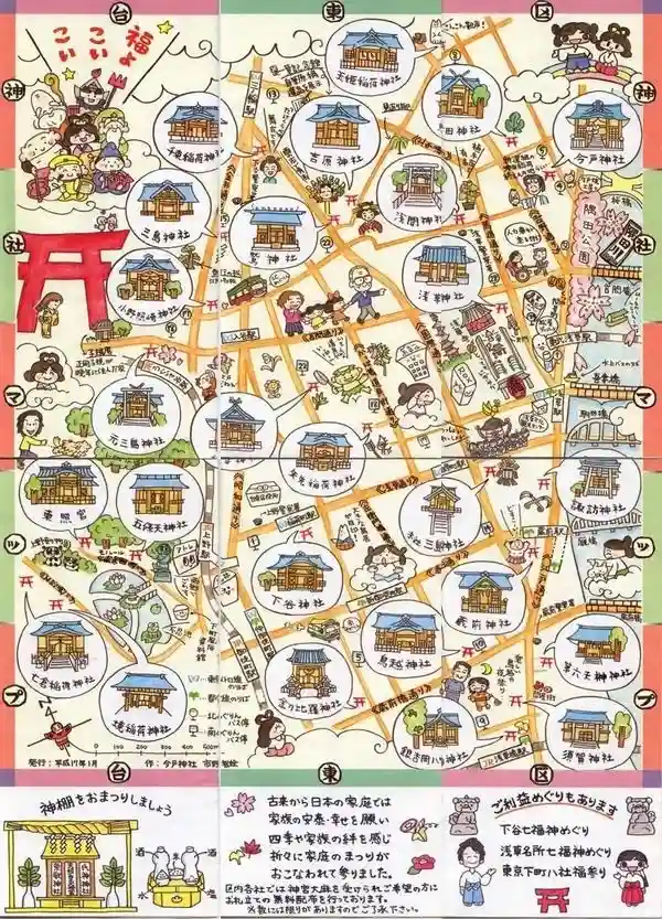 素敵な台東区神社マップ✨イラストも文字も可愛くて見やすくてお気に入りです🤗