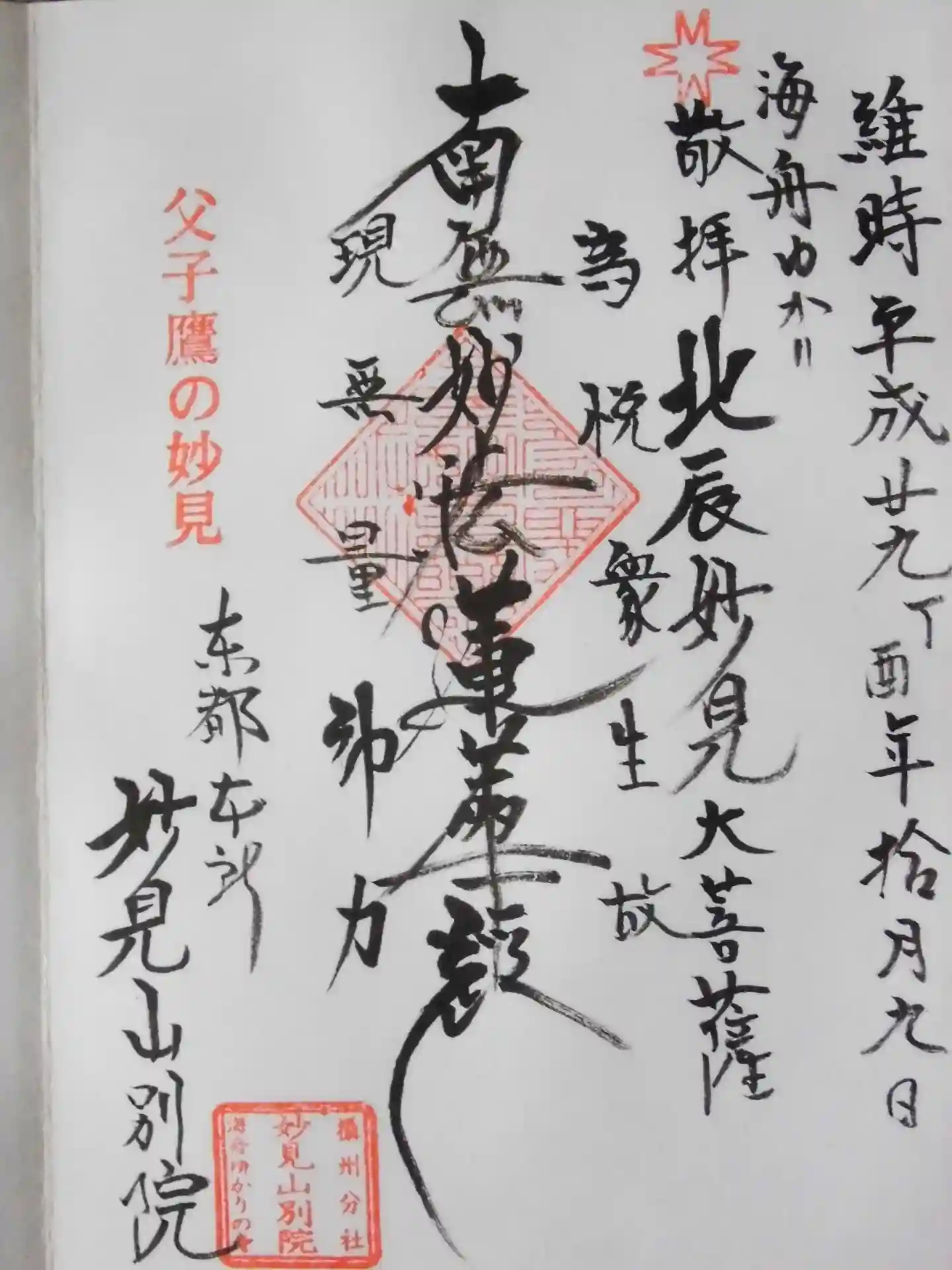 墨田区本所にある能勢妙見山別院を参拝。御首題は以前に頂いたものです。