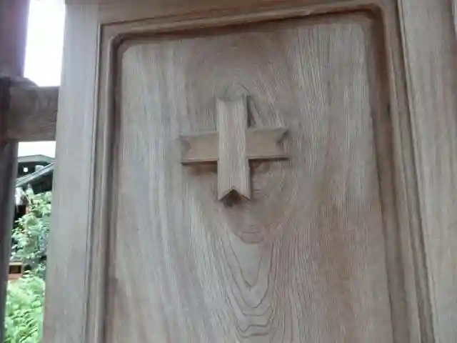 矢筈紋章。境内のあちこちで見られます。