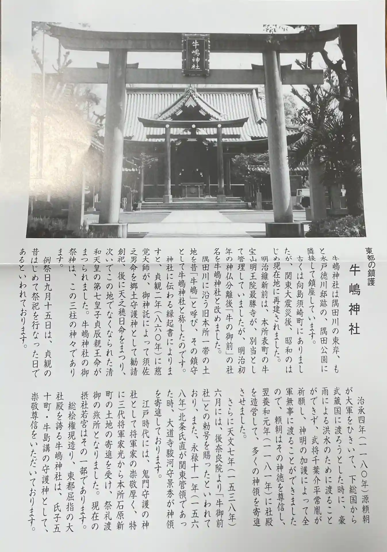 | ご由緒 | 牛嶋神社は隅田川の東岸、もと水戸徳川邸跡の、隅田公園に隣接して鎮座しています。