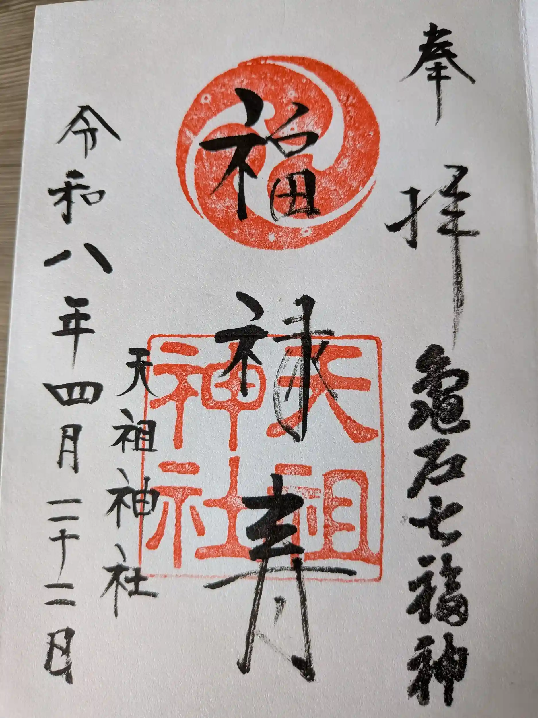亀戸七福神 福禄寿 天祖神社参拝し、直書き御朱印頂きました♪