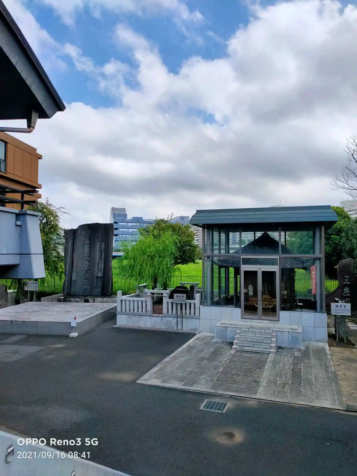 梅若塚はガラス張り。