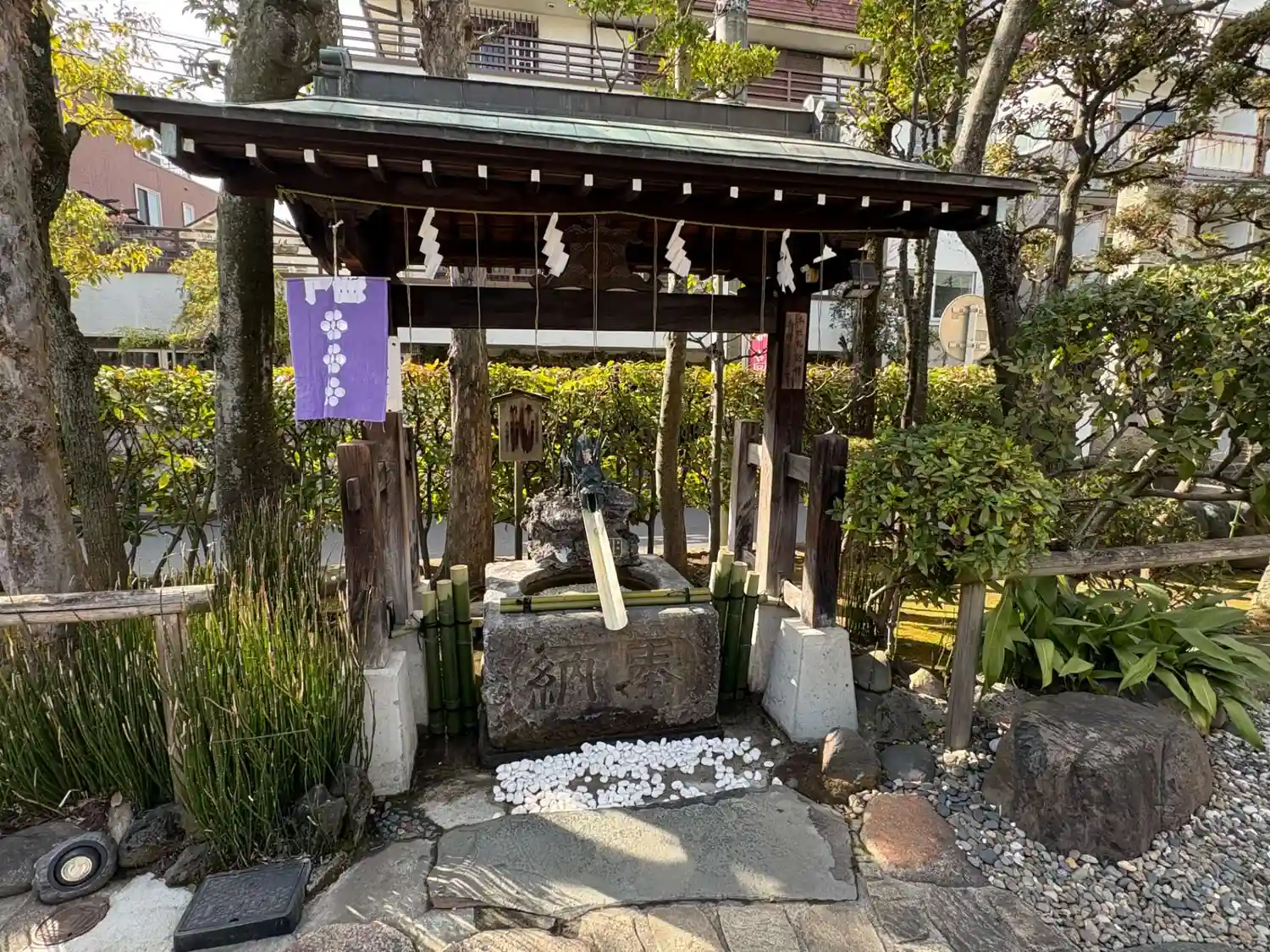 かつては、境内に大きな臥龍の松があり、曳舟川を上下する舟をはじめ、地域の人々の往来の目印となっていました。