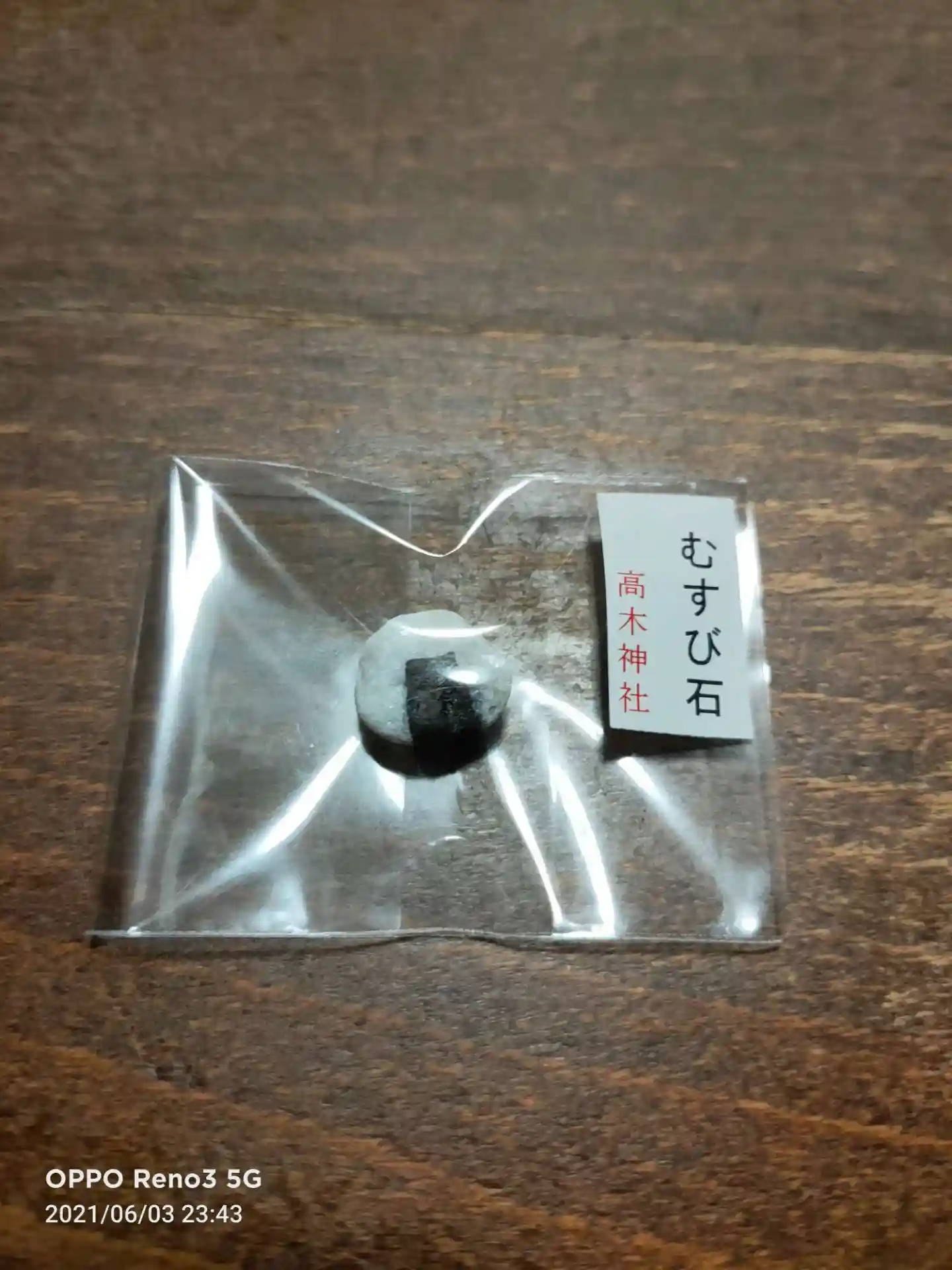 御朱印に「むすび石」という小石が付いてきました。素敵なご縁ごあるように御祈念されているそうです。