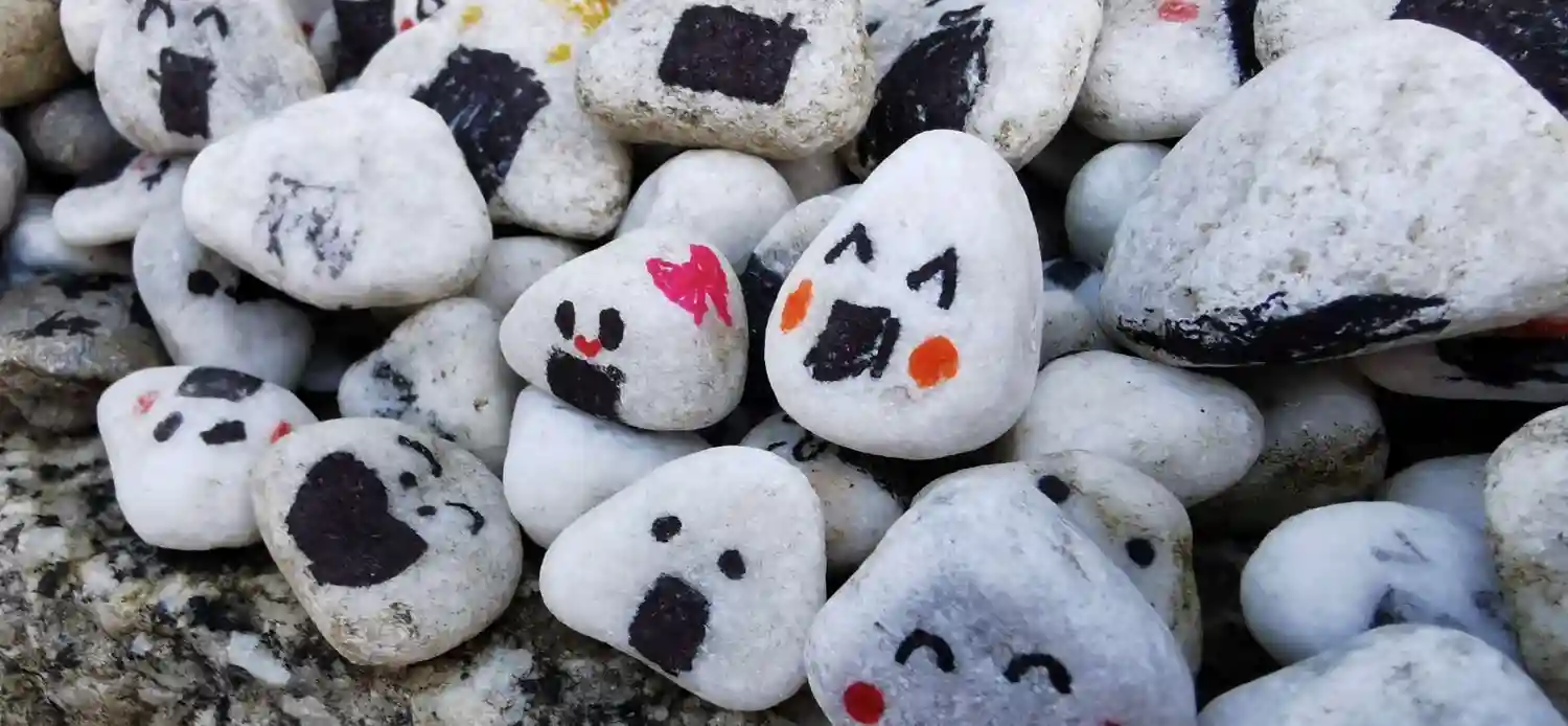 あちこちにおむすび、むすび石…