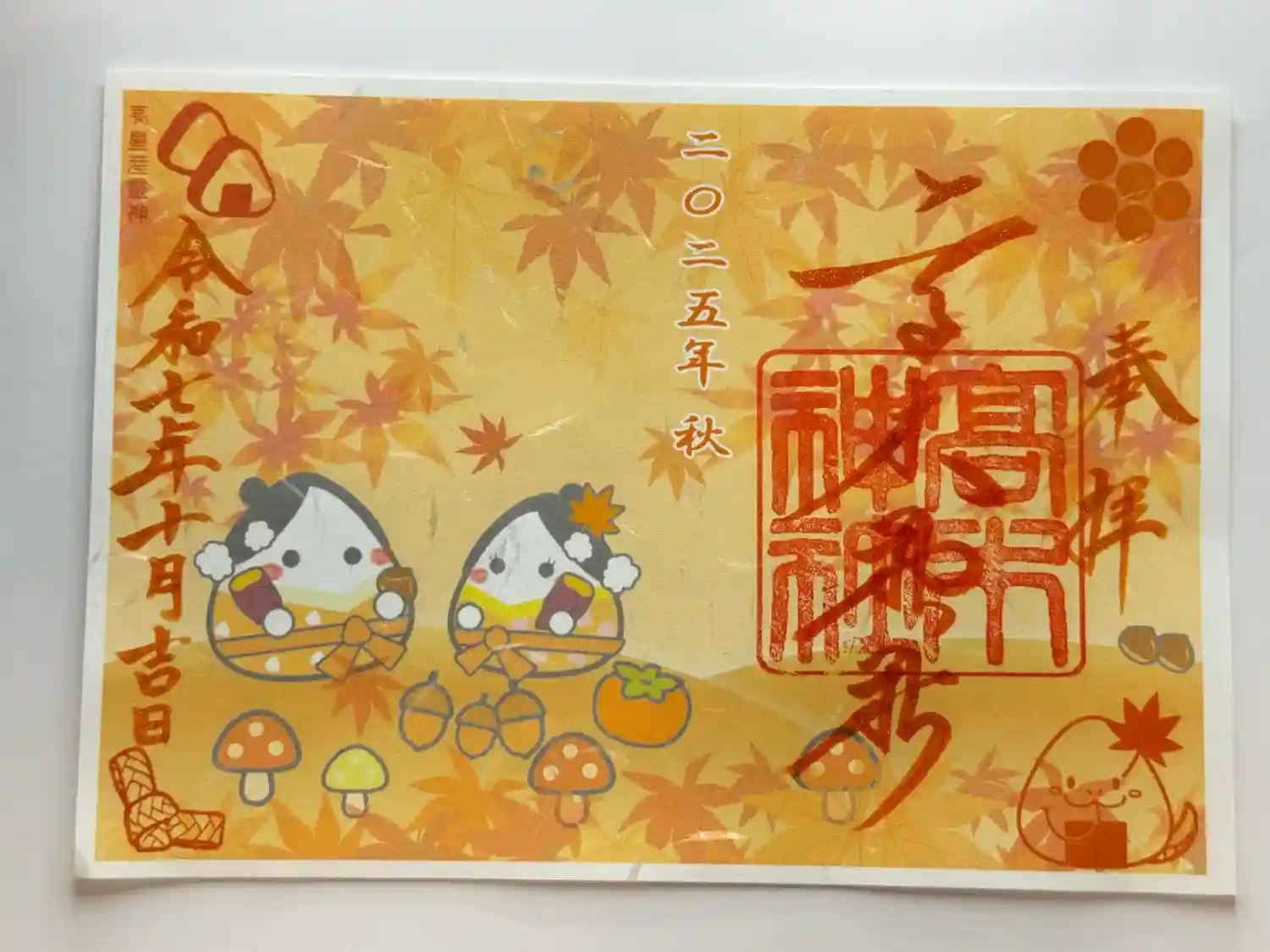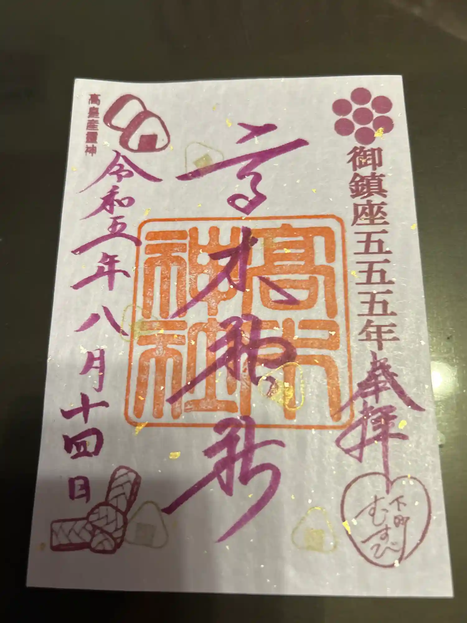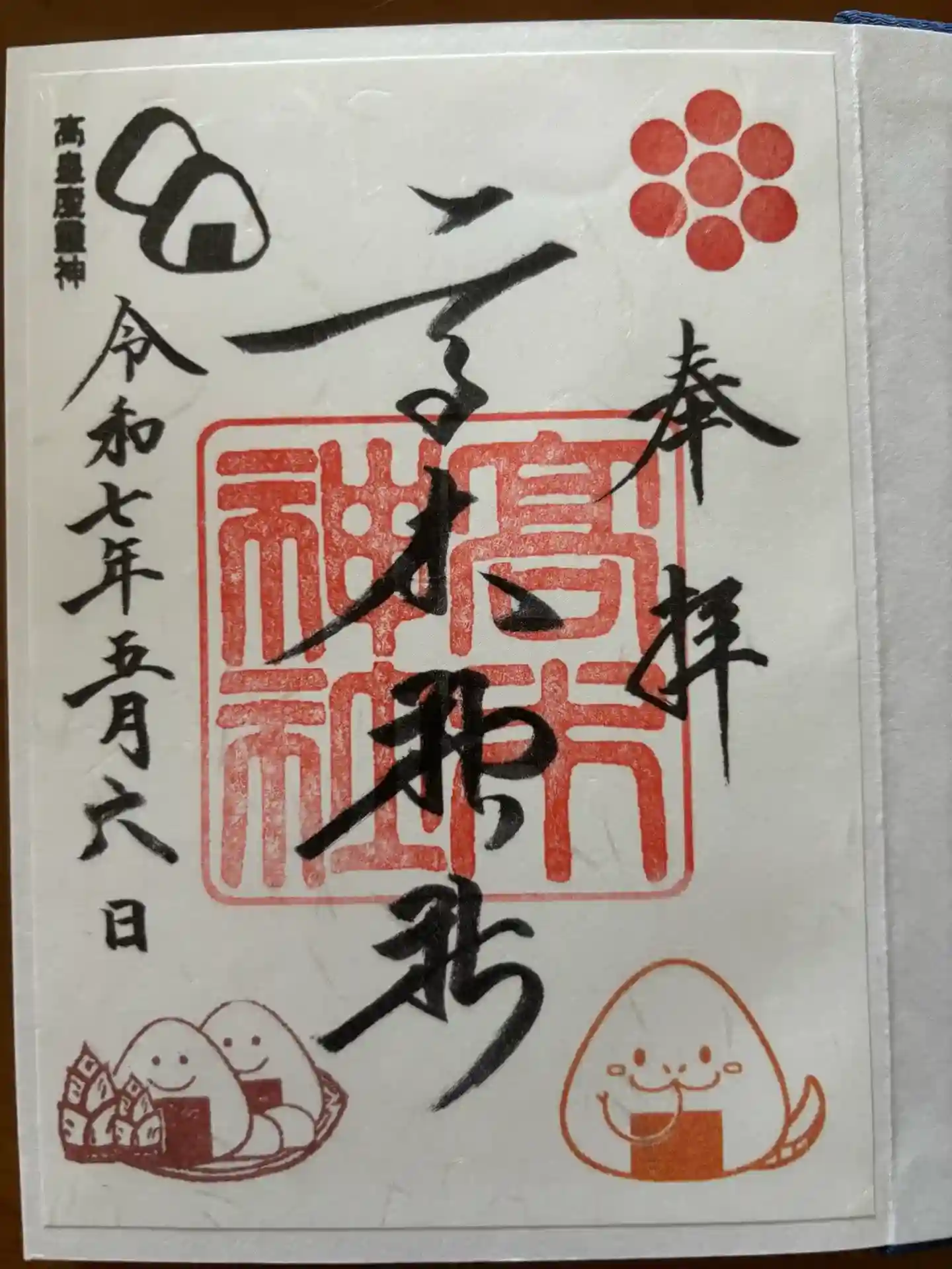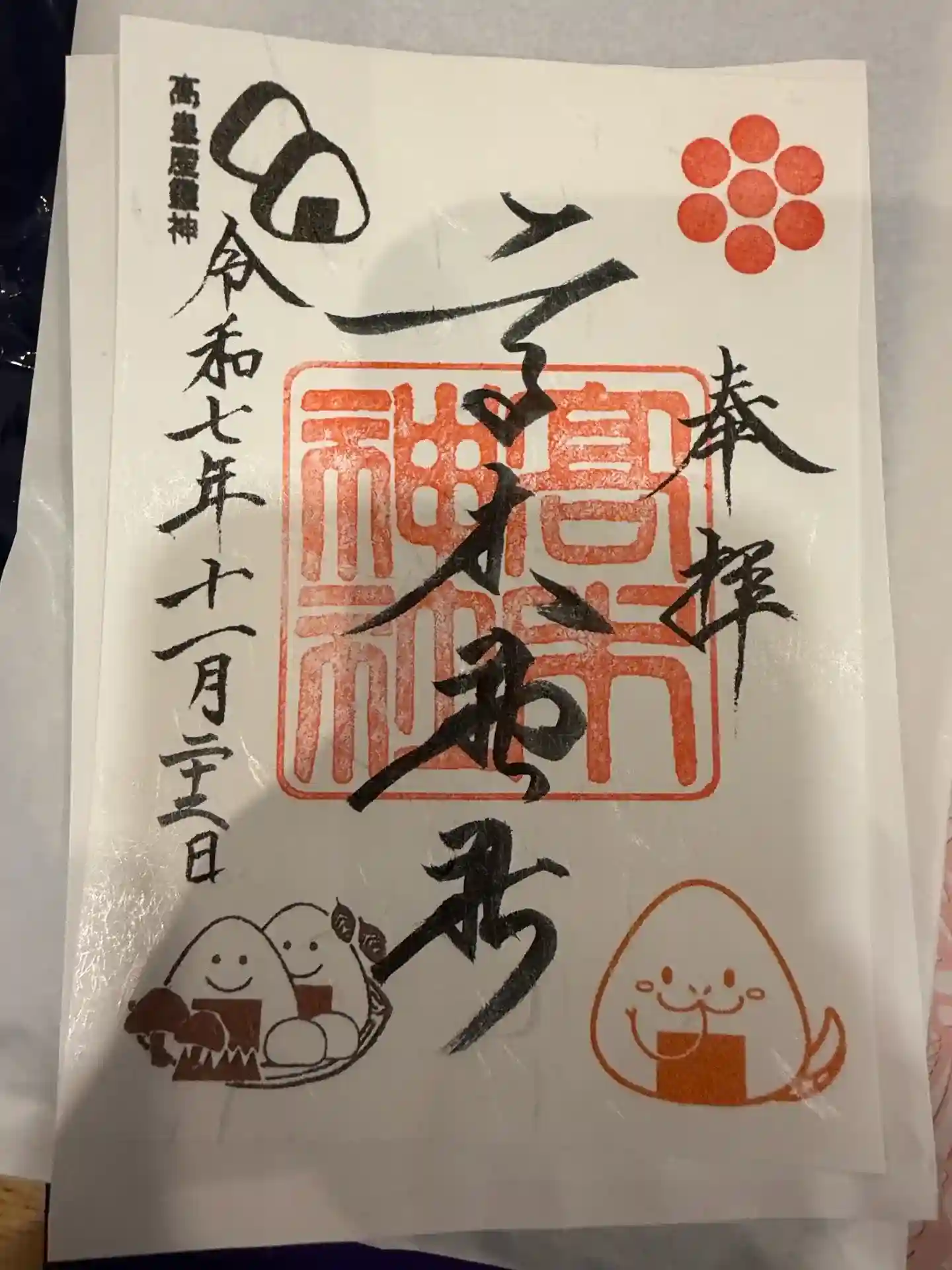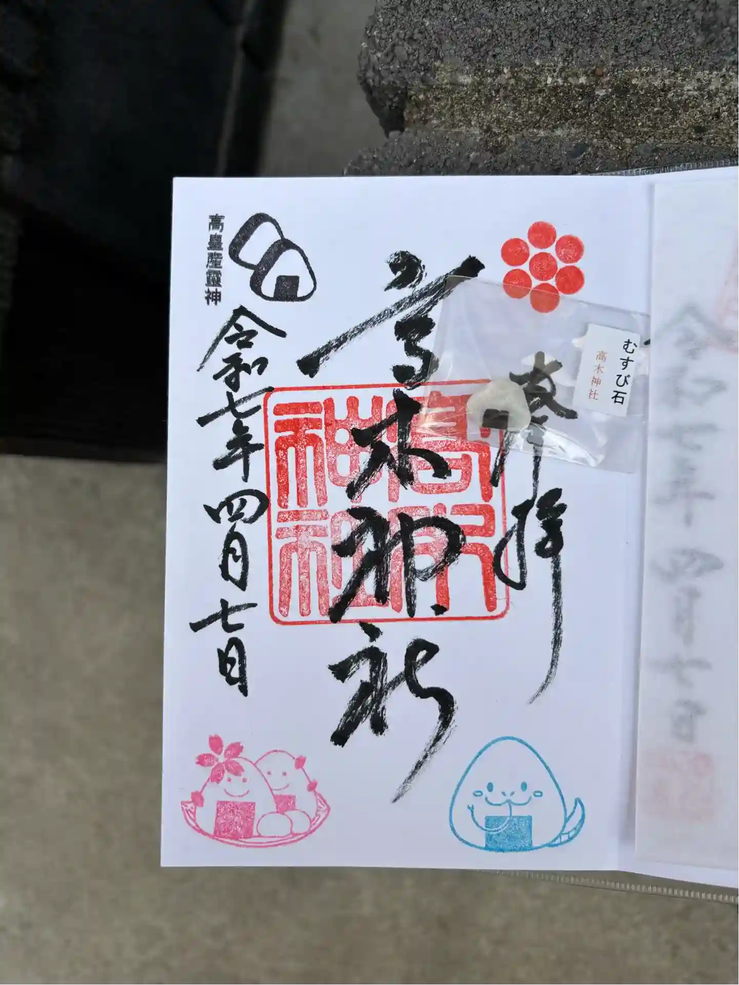 御朱印と一緒にリーフレットとオニギリの形をした「おむすび石」をいただけました😊