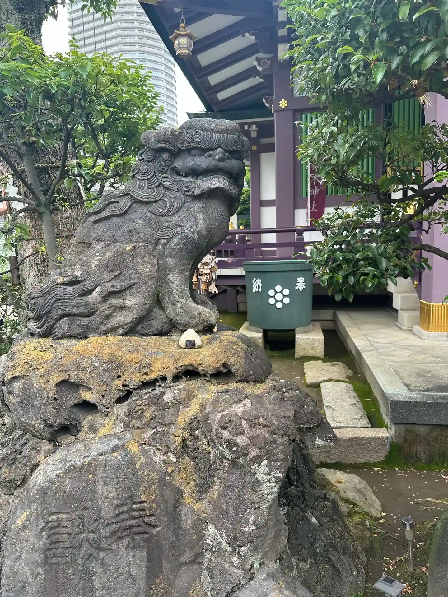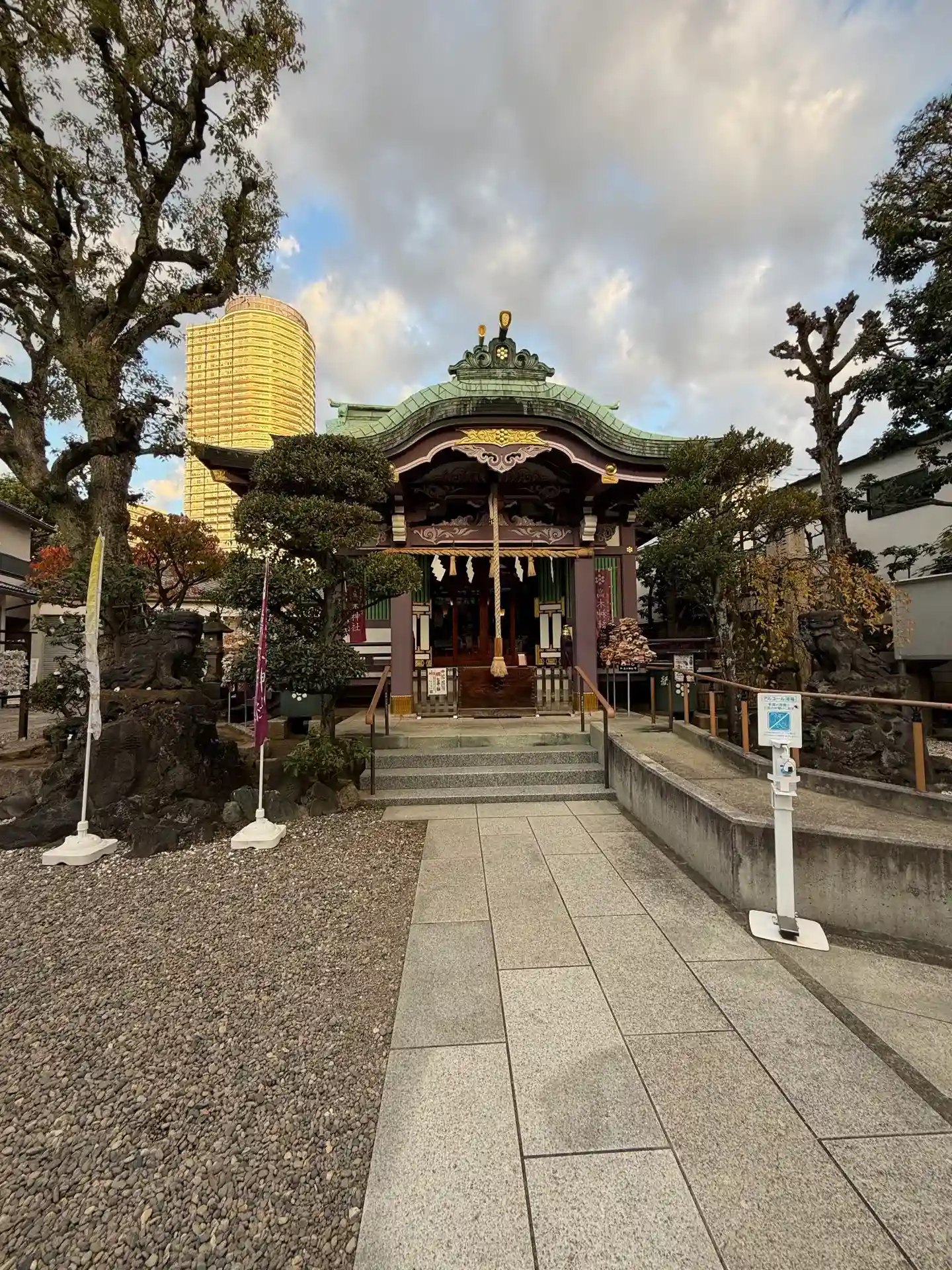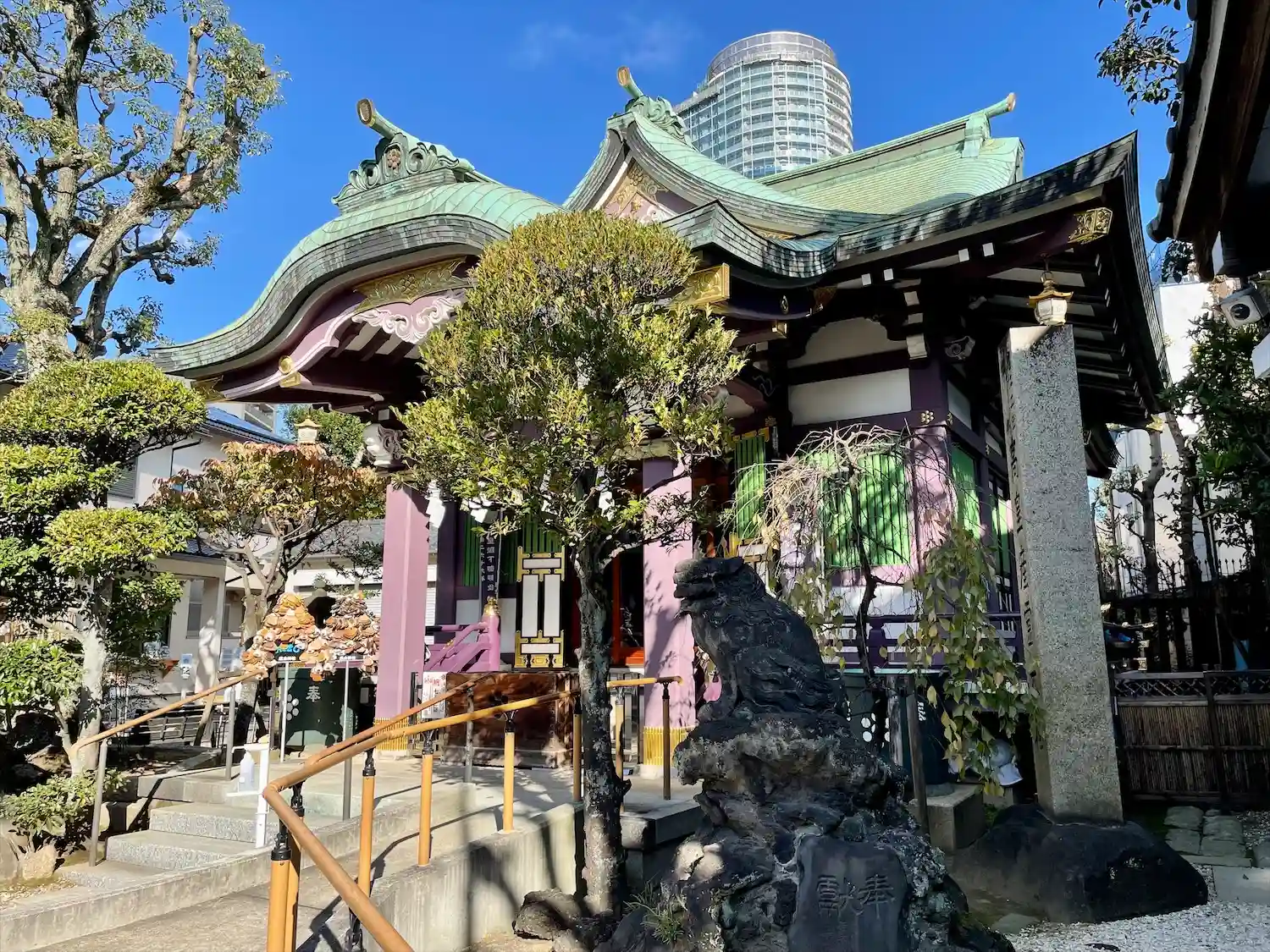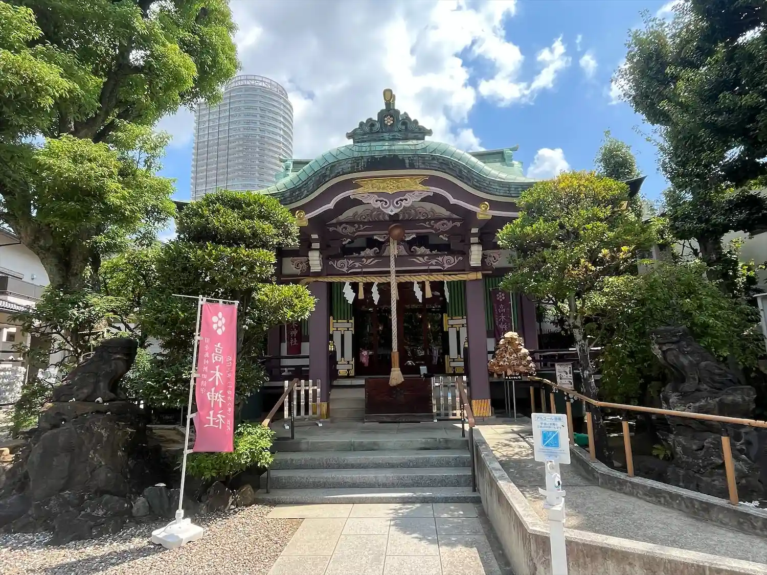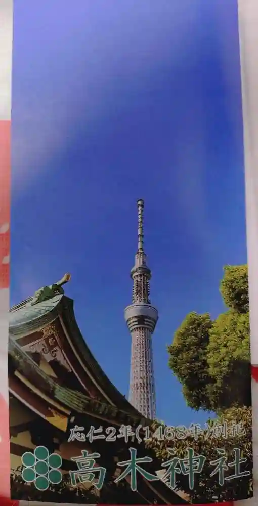 スカイツリーが背後にそびえる曳舟の高木神社。むすびの神にかけて「おむすび」神社と謳っていて、御朱印…