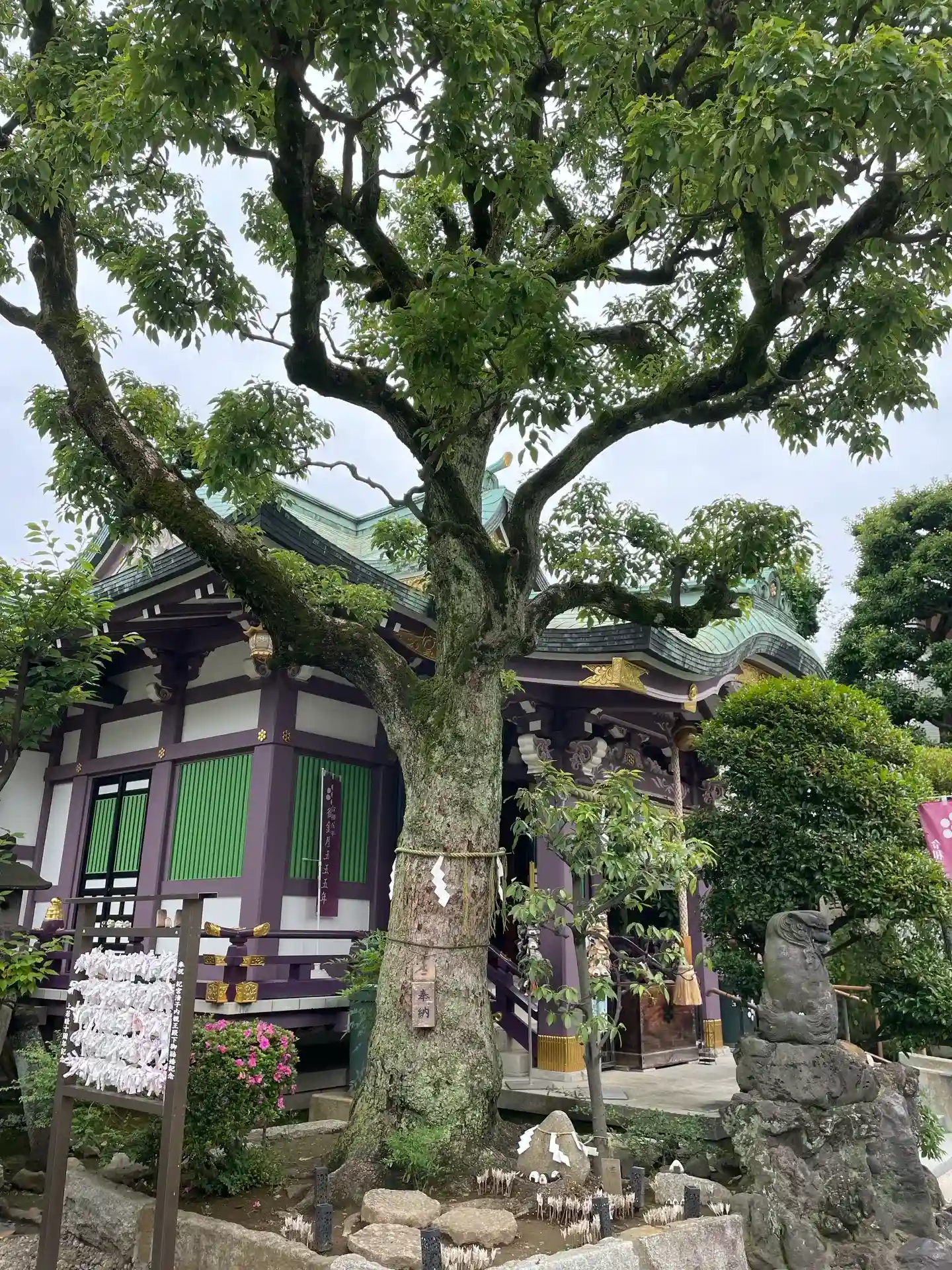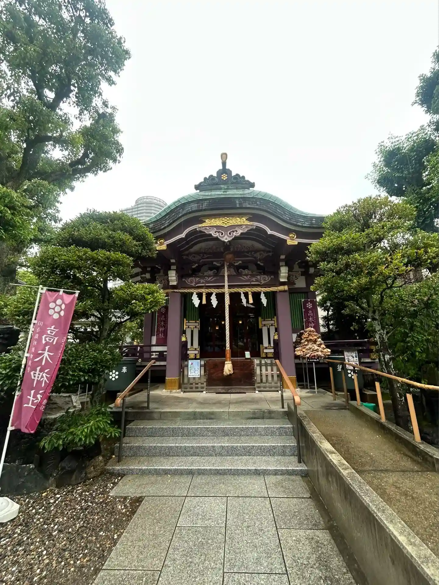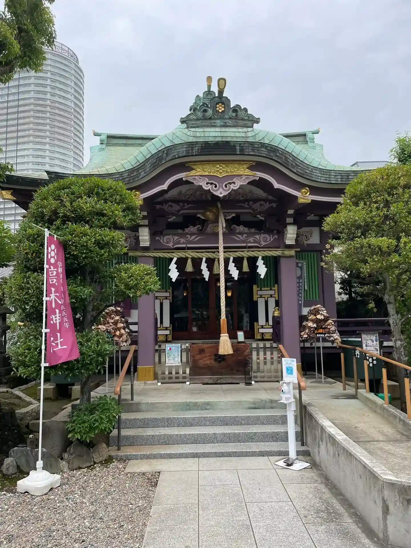 紫色の社殿。