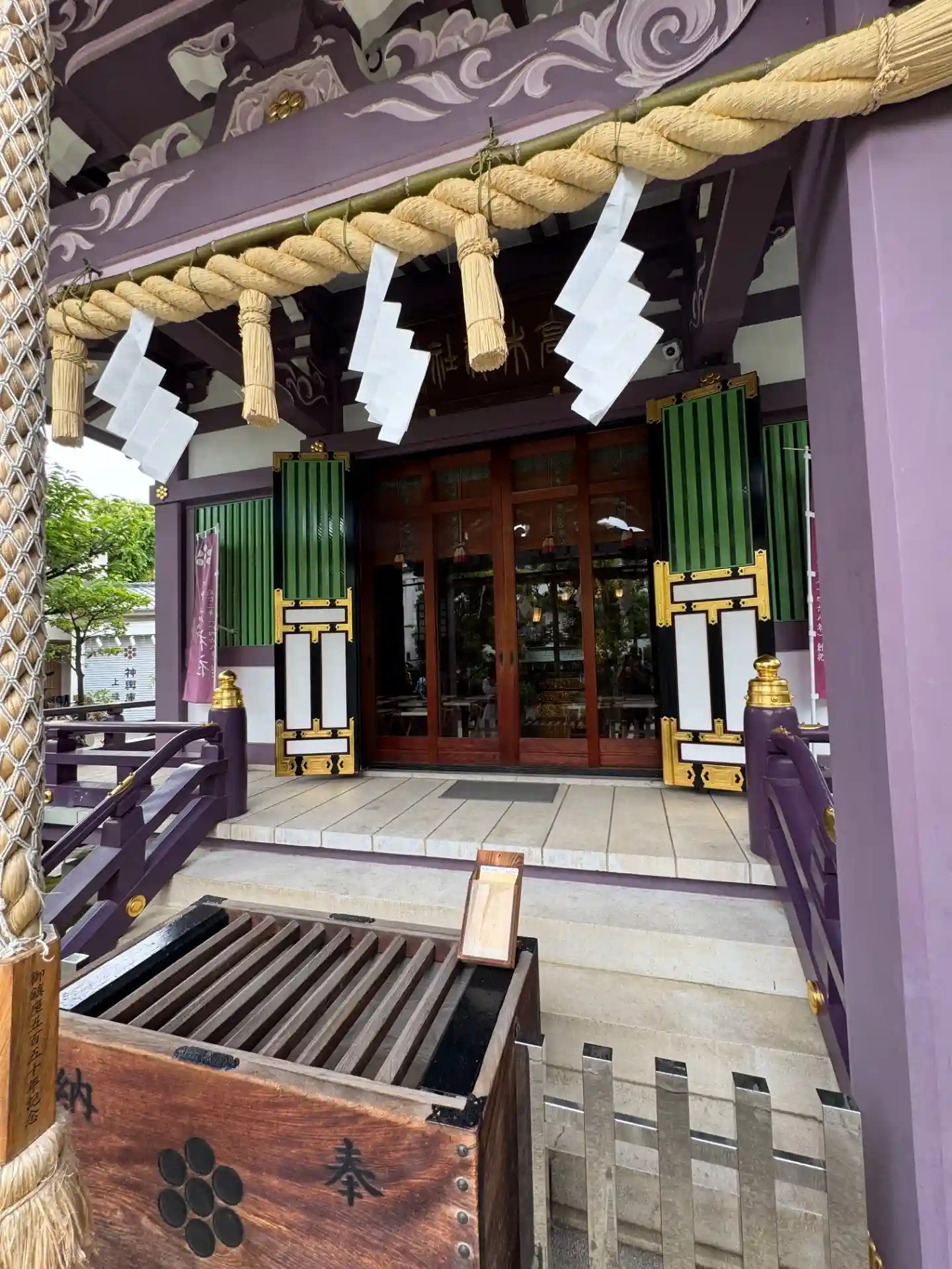 紫色の拝殿がすごく素敵!アニメコラボされているのでなかなかに人気な神社でした。いっぱいおむすび食べ…