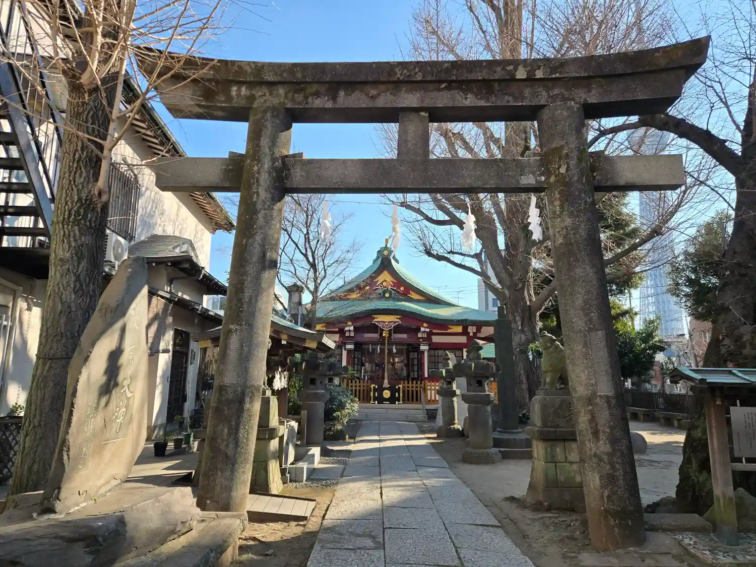 境内を出てすぐ、駅に向かう路地にスカイツリー🤗