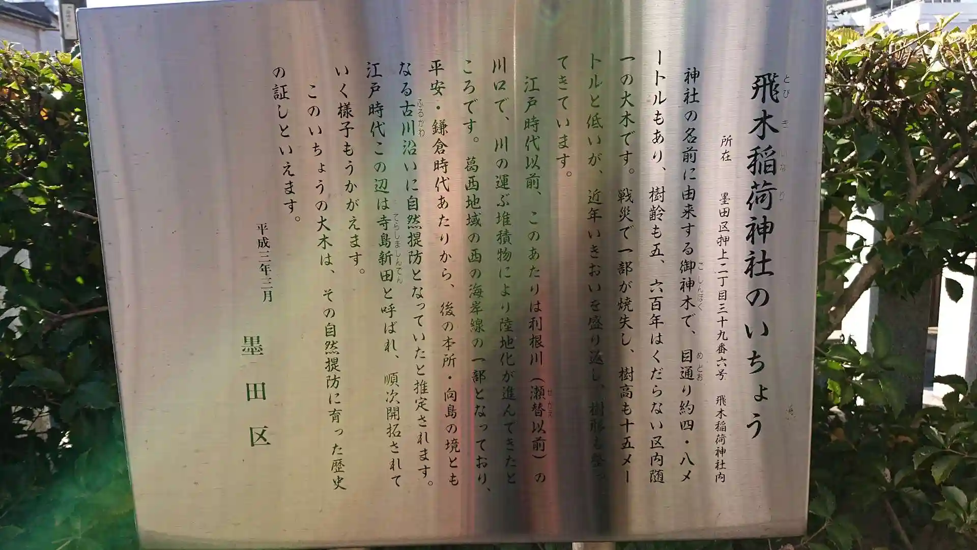 以前、この辺りに来た時は駐車場が見つからず、目の前まで来たのに参拝出来なかった神社です。御神木の大銀杏が有名で、季節には見事だろうと想像出来ます。社務所に写真が有ります。対応して頂いた巫女さんも詳しく説明していただきました。書き置きの御朱印を戴きました。