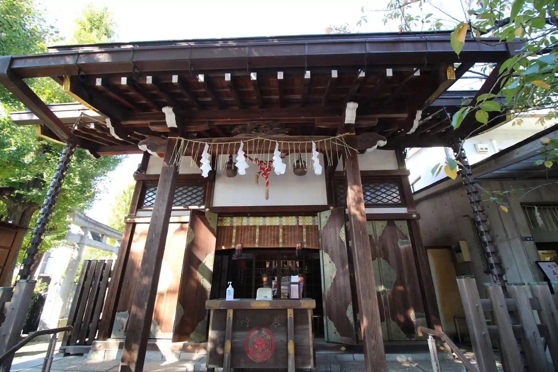 「とびきいなりじんじゃ」ご祭神は稲の神様であり、五百有余年を超える御神木の大銀杏とともに氏神様として地域の方々に尊崇されています。御神木の大銀杏の中に「お狐さま」が居られるとのことで、手水舎の前から御神木を見上げ探すと確かにいらっしゃいました😆