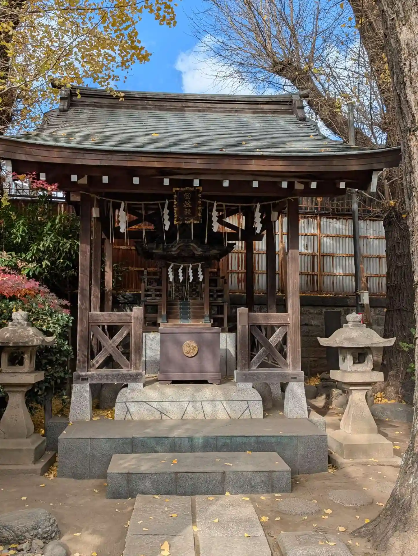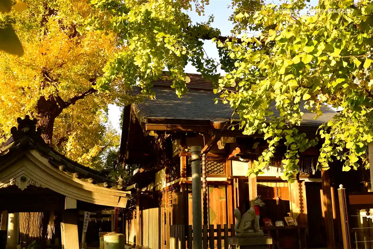 高木神社の直ぐ近くにありました。小さな狐様がいっぱい、いらっしゃって、大きなイチョウが黄色に色付い…