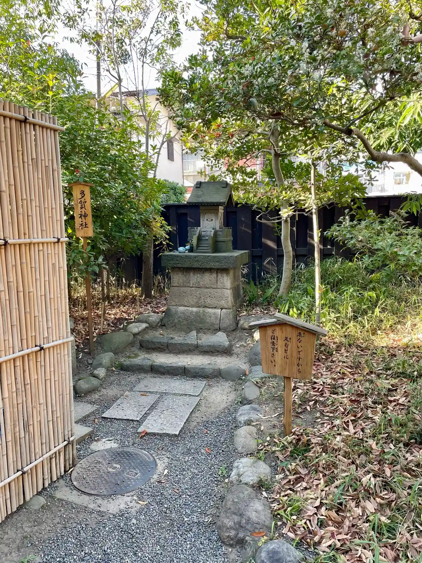 | ご由緒 | 入り口サービスセンターのすぐ裏に鎮座されてますが、園内マップにも「小祠」としか書いてなく詳細不明なお社です。