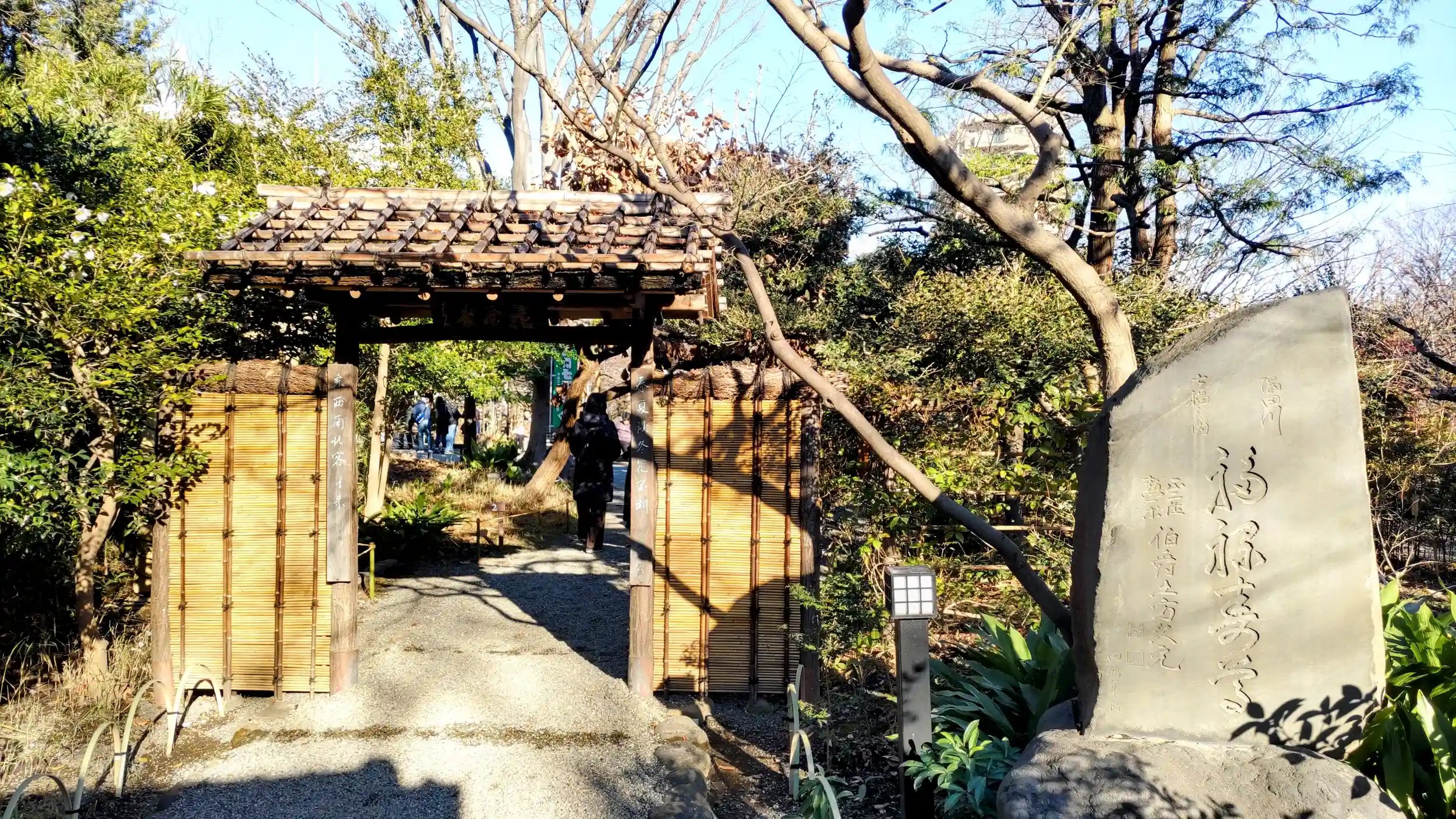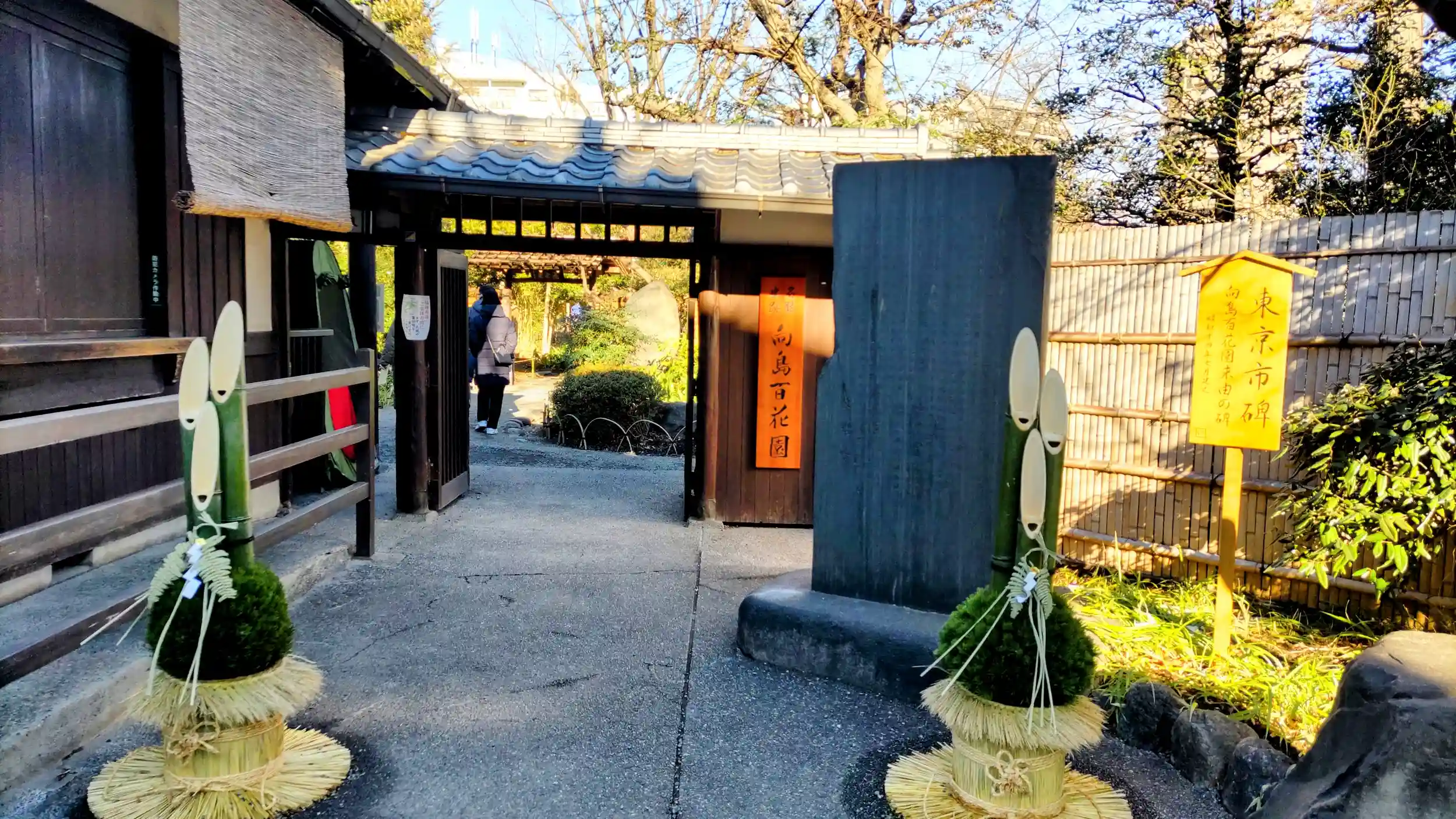 入園料が必要な向島百花園の中にありますが、ありがたいことに正月三が日の間は入園無料になっていました。ただし、大半の庭園部分は入れないようになっていました。
