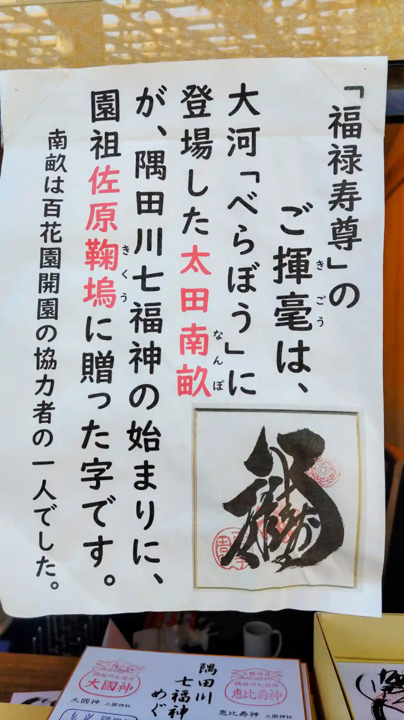 隅田川七福神の福禄寿さまの御朱印をいただきました。
