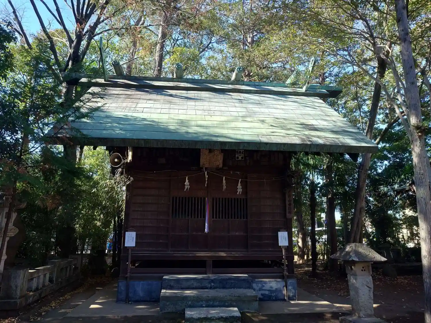 創建938年、江戸川区では最古の神社、周りは木々で囲まれて14もの神社祭神があります。