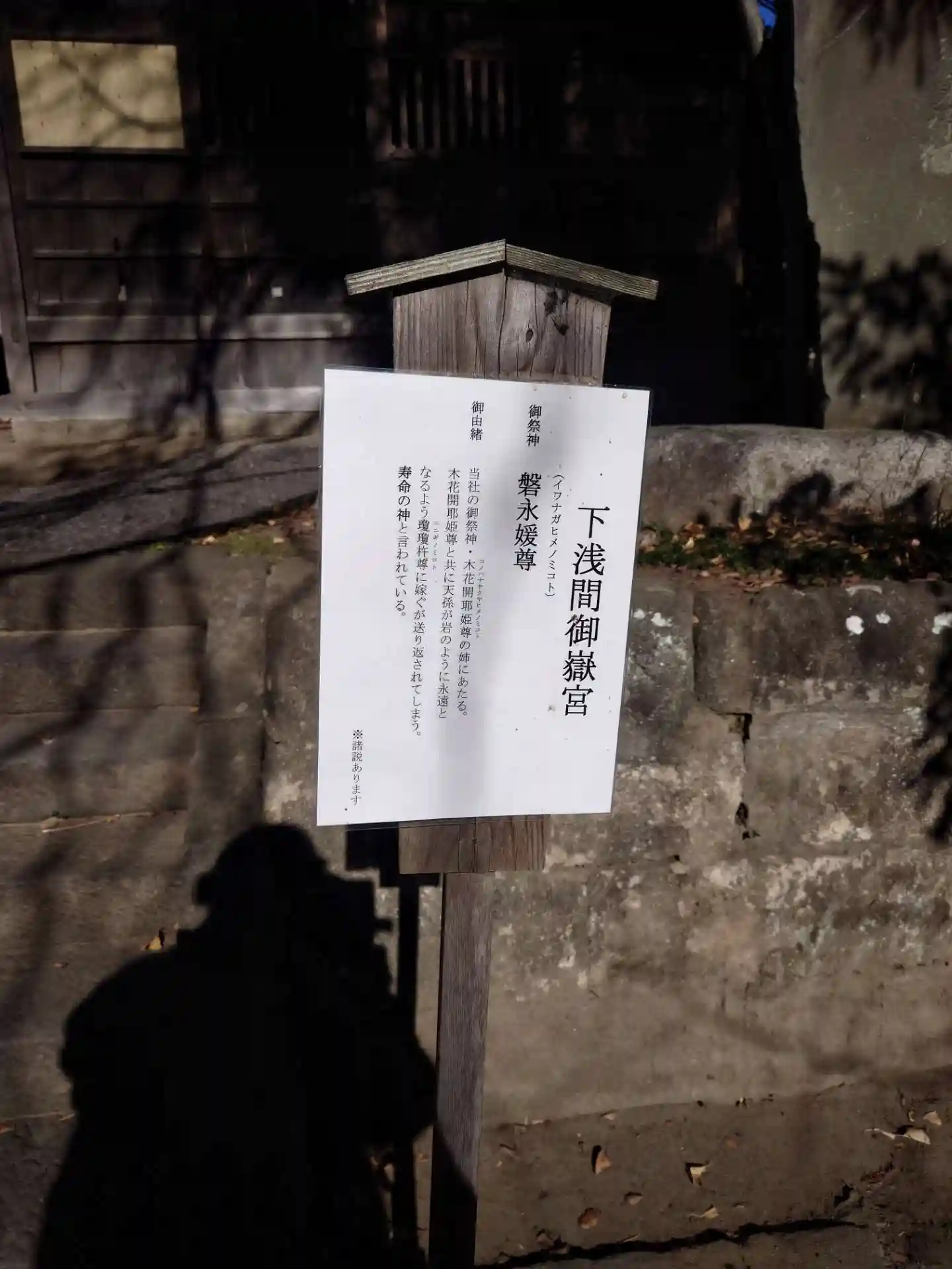 境内社 下浅間御嶽宮 御祭神:磐永媛命(絶世の美人として有名な木花開耶姫尊の姉神です)