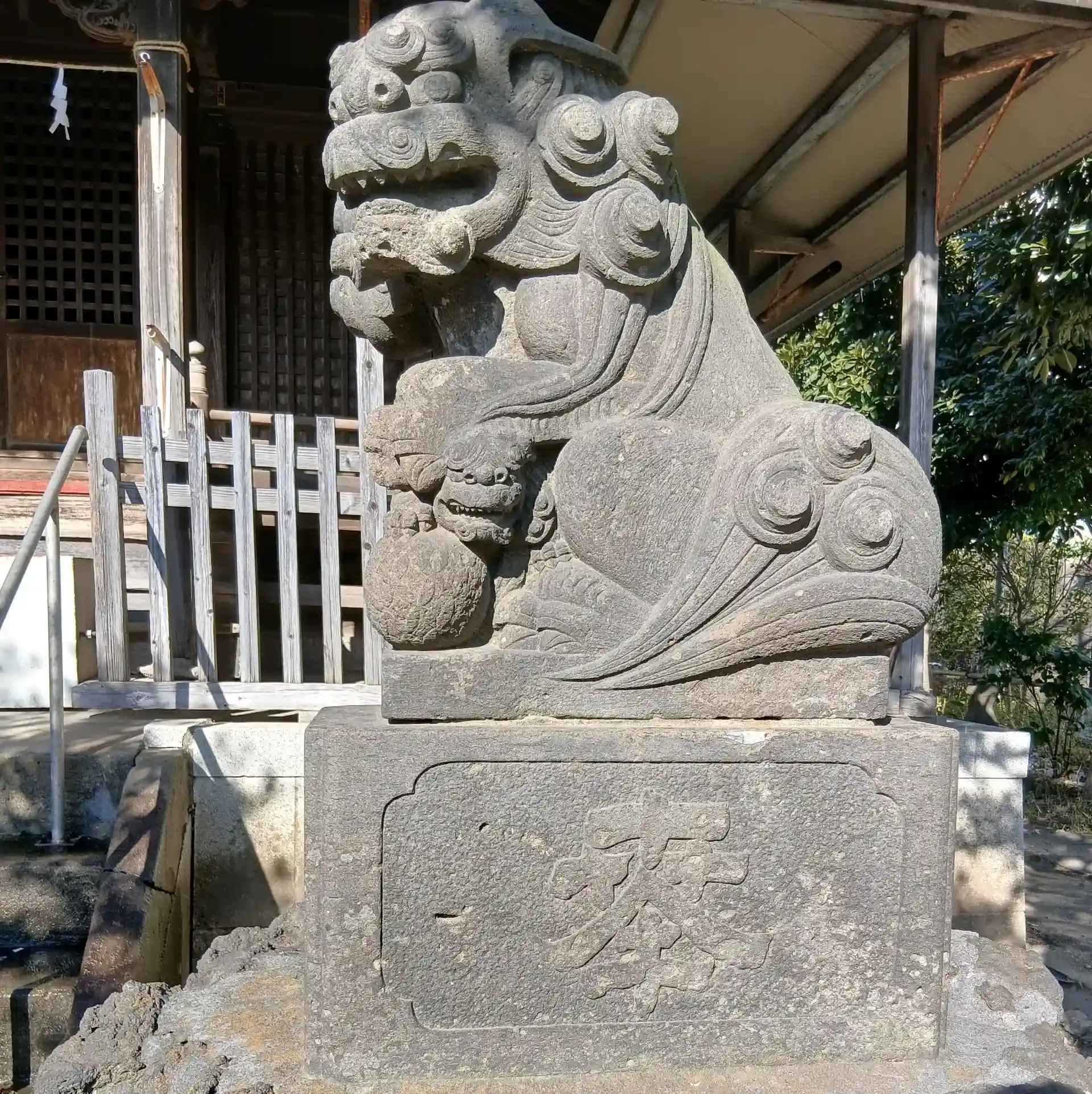 手水舎、狛犬一対、常夜灯一対