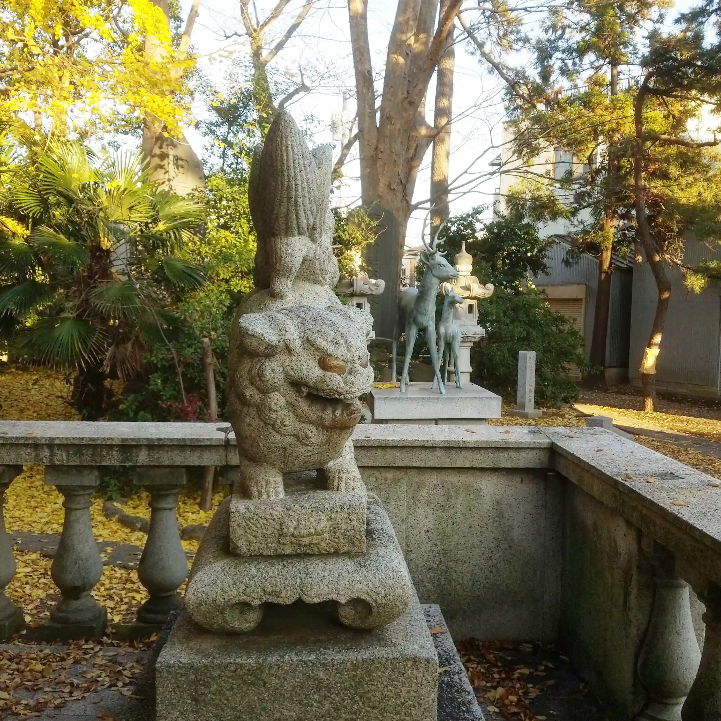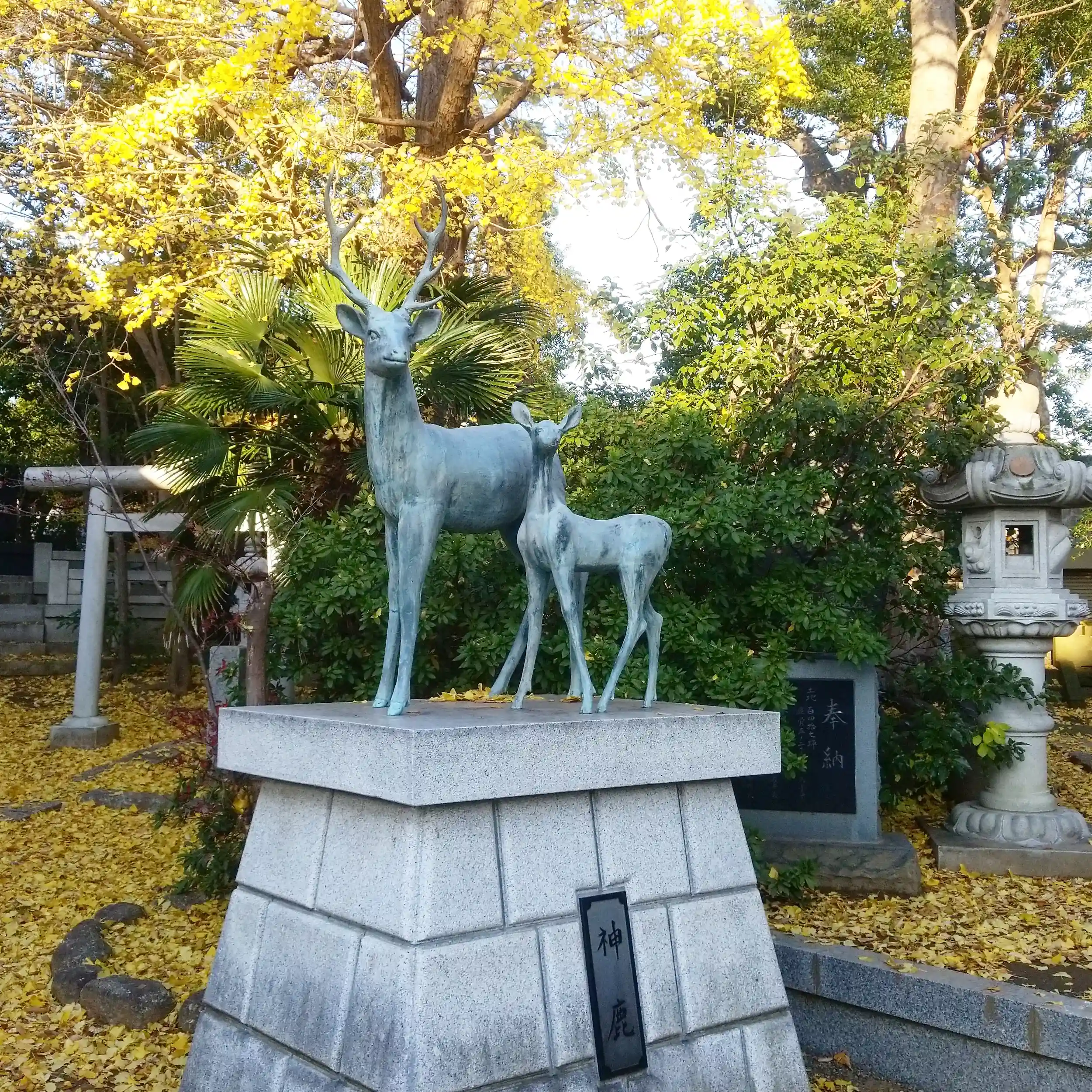 境内には鹿の親子の像がありますよ。